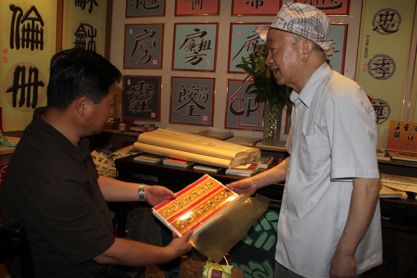 據(jù)悉,今年是黃老八十壽辰,鐘校長特地為黃老送來了文房四寶等賀壽禮品,并祝愿黃老健康長壽。