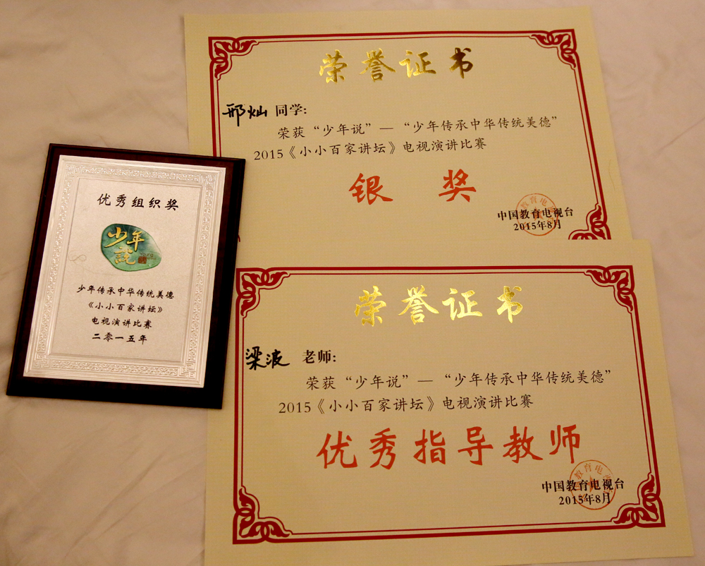 本校訊 8月22日—25日,中國(guó)教育電視臺(tái)800平米演播廳,由中華人民共和國(guó)教育部主辦,中央電視臺(tái)科教頻道、中國(guó)教育電視臺(tái)承辦的“少年說”——“少年傳承中華傳統(tǒng)美德”2015《小小百家講壇》電視演講比賽正緊張舉行。