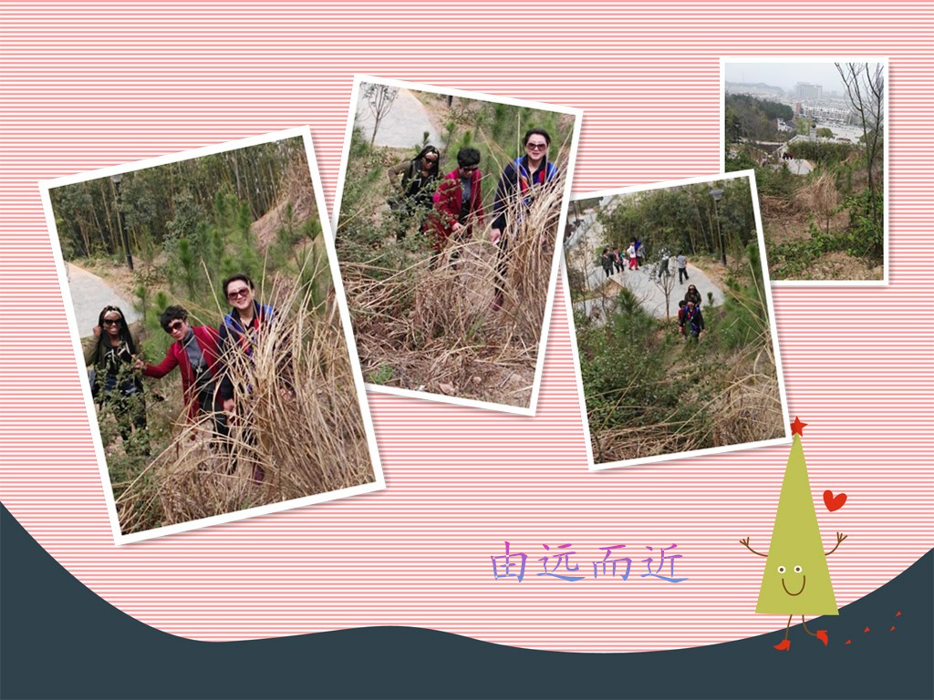 下午,我們來到位于樅陽縣城的幕旗山,在這里,大家興致勃勃,一路登頂,在山頂,眺望四周,可以俯瞰樅陽縣全城,也可眺望長江,江對面的池州也是依稀可見,吹著略帶寒意的春風(fēng),舒展心扉,感受登臨的妙處。山中野生植物眾多,三七草,野草莓樹,映山紅,還有初開漫山的桃花,大家一路賞景,拍照,上山時(shí)的勞累一掃而空。