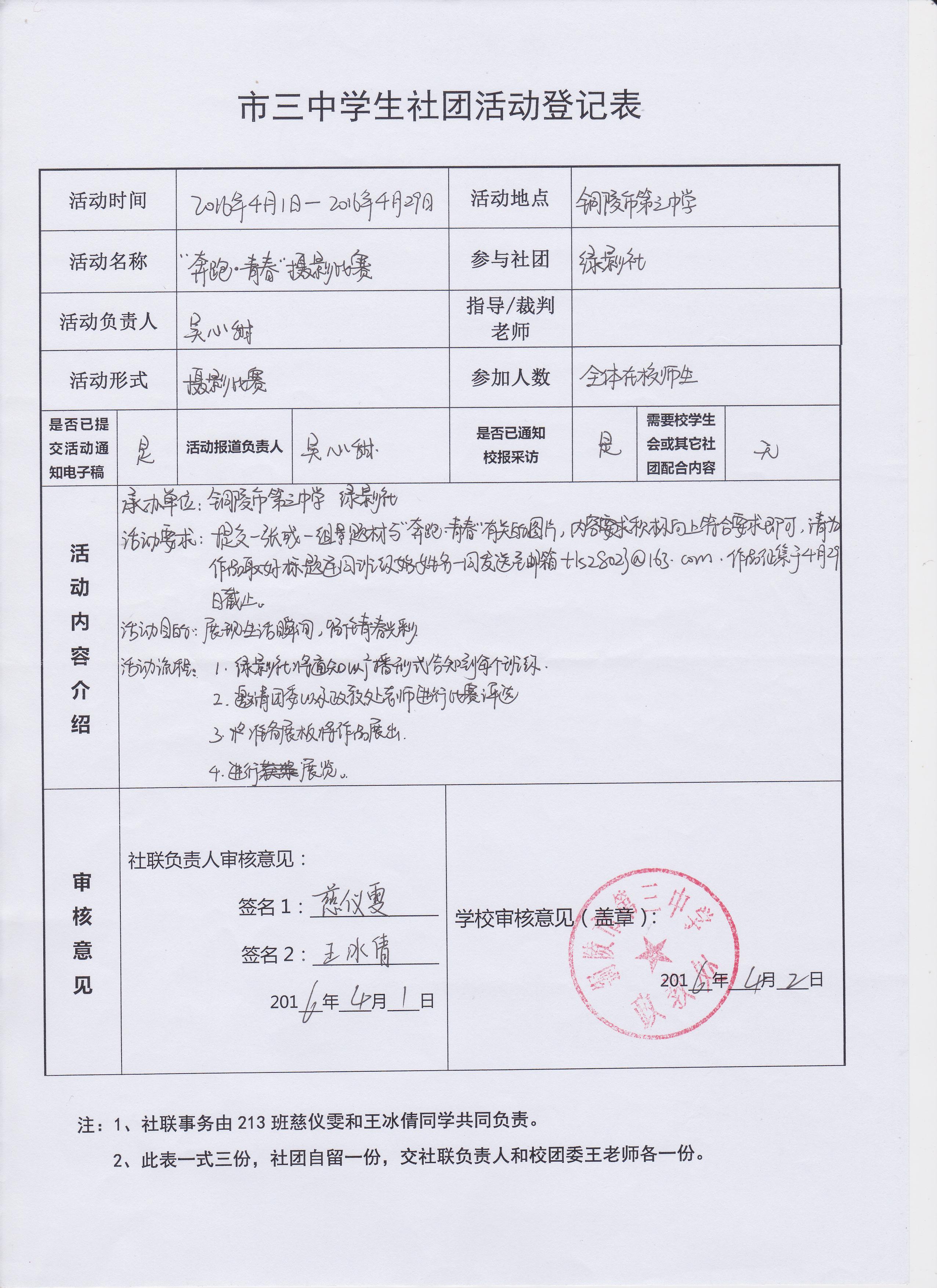 1、綠影社將通知以廣播形式告知到每個班級;