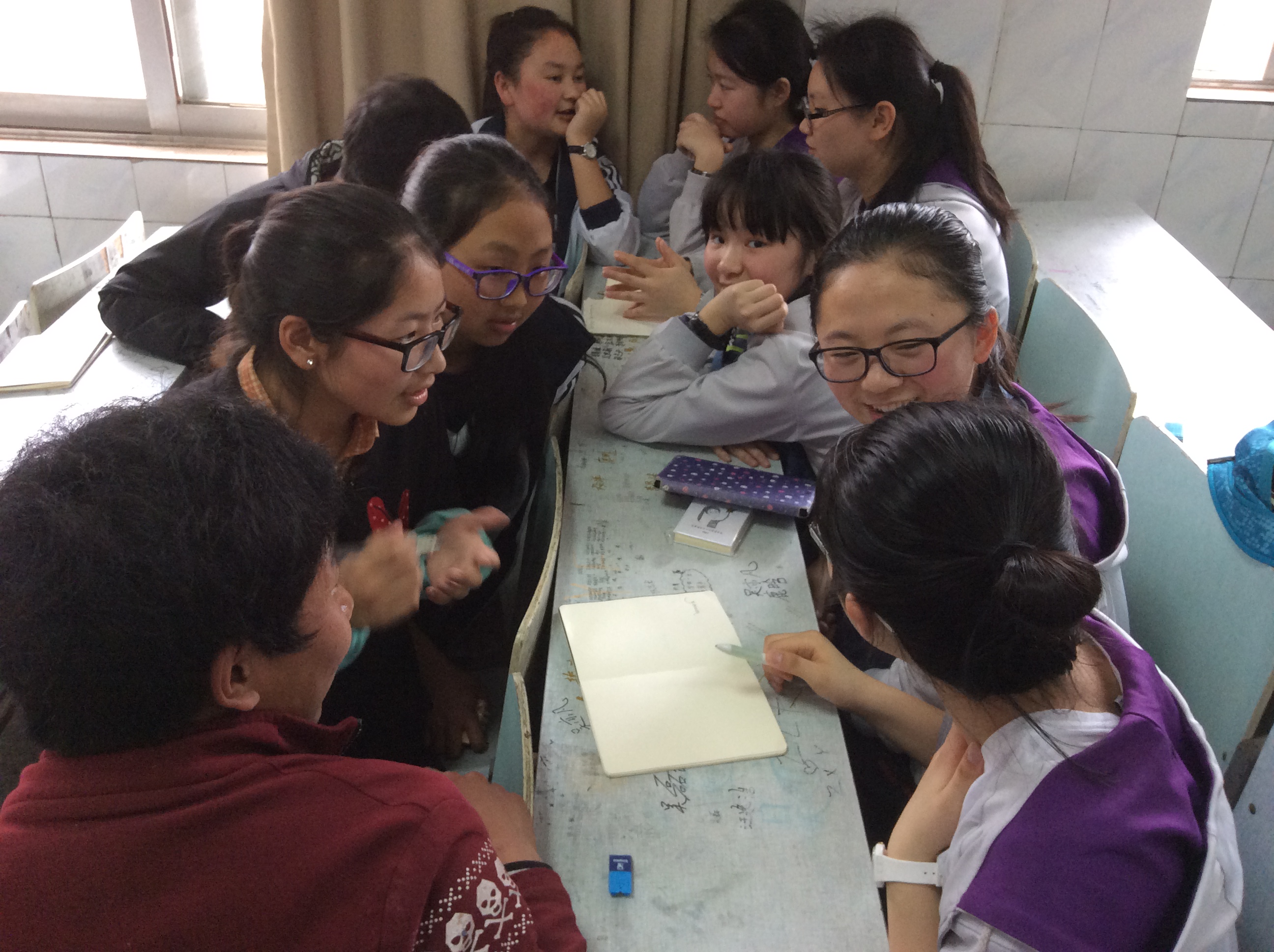 在市五中沐校長和孫校長的親切引導(dǎo)下,同學(xué)們在市五中多功能教室與該校四十多名藏族學(xué)生開展了內(nèi)容豐富的交流活動。藏族同學(xué)對118班同學(xué)的到來表示熱烈歡迎,并分成七個小組與漢族同學(xué)進(jìn)行自由討論。在討論過程中,藏漢同學(xué)敞開心扉,交流熱情,話題豐富,整個多功能教室里歡聲笑語,洋溢著民族大團結(jié)的溫馨氣氛。藏族同學(xué)興高采烈地介紹西藏地區(qū)的風(fēng)土人情,以及各自成長經(jīng)歷和目前的學(xué)習(xí)情況,并表達(dá)了對銅陵市的真誠喜愛。原來藏族同學(xué)們也是要通過中考統(tǒng)一選拔,才能有機會到這來學(xué)習(xí),他們學(xué)習(xí)是非常努力的。特別是他們遠(yuǎn)離家鄉(xiāng)和親人,只身遠(yuǎn)赴外地求學(xué),這種積極求進(jìn)的精神和自我管理的能力,深深感染和教育了118班同學(xué)們。在談到民族團結(jié)這一主題時,藏漢同學(xué)們都有說不完的話,紛紛表示當(dāng)前我國民族團結(jié)政策意義重大、內(nèi)容豐富;特別是在談到分裂分子破壞民族團結(jié)的行徑時,藏族同學(xué)們個個義憤填膺,一位藏生用洪亮的嗓音宣誓,他將來要成為一名駐藏戰(zhàn)士,維護中華民族統(tǒng)一!多功能室里響起經(jīng)久不息的掌聲;在活動的小結(jié)環(huán)節(jié),118班七位組代表和大家分享了各小組的交流成果,當(dāng)一位組代表在分享結(jié)束后舉起格桑曲培同學(xué)用藏漢兩族文字書寫的“民族團結(jié)”字條時,激動之情蕩漾在每個人的心中。