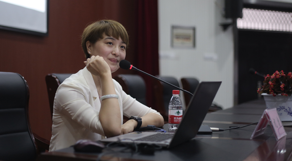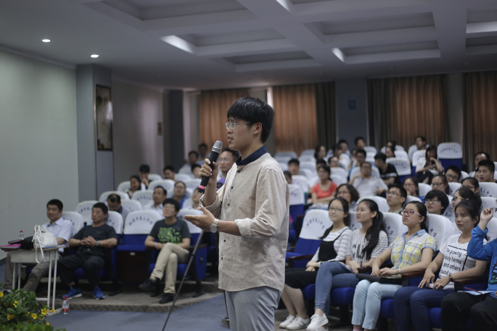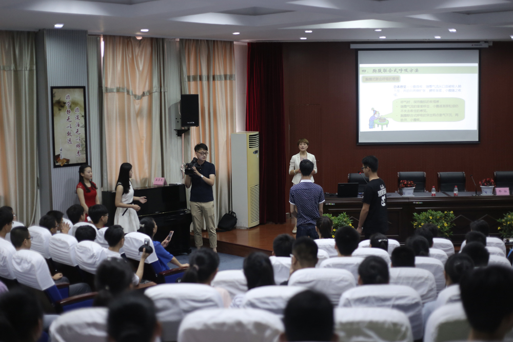 整場(chǎng)講座將學(xué)生的興趣點(diǎn)、興奮點(diǎn)、癥結(jié)點(diǎn)與所要傳授的信息點(diǎn)、知識(shí)點(diǎn)有機(jī)融合,理論與實(shí)踐相聯(lián)系、宏觀與微觀相呼應(yīng),既有對(duì)胸腹聯(lián)合呼吸法的深入講解和示范,又有對(duì)學(xué)生有聲語言表達(dá)進(jìn)行的具體指導(dǎo)。而正是祝捷博士超強(qiáng)的信息處理能力、深厚的語言表達(dá)功力、強(qiáng)烈的文化自覺意識(shí),使她散發(fā)出獨(dú)特的人格魅力,吸引、感染了全場(chǎng)2百多名師生。