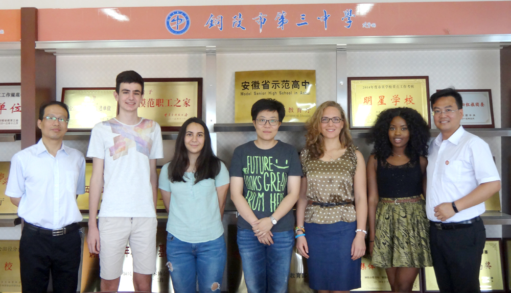 時(shí)光飛逝,學(xué)期即將結(jié)束,轉(zhuǎn)眼就到了英籍教師Nicolle和俄羅斯籍的Anfisa離開三中的時(shí)候了,一學(xué)年很短暫,但是留給她們的記憶卻很美好,去年懷著對(duì)中國文化和秀美風(fēng)光的向往,她們來到中國古銅都銅陵,在銅陵第三中學(xué)任英語口語教師,她們以課堂教學(xué)為平臺(tái),與廣大學(xué)生交流語言學(xué)習(xí),文化差異,學(xué)生們學(xué)到了英語口語表達(dá)技巧,她們也獲得了很多對(duì)中國的切實(shí)感受,特別是她們對(duì)中國傳統(tǒng)的文化更是好奇,比如漢字的歷史,傳統(tǒng)的節(jié)日,各地的風(fēng)俗習(xí)慣等都深深地吸引了她們,學(xué)生也對(duì)兩位外教認(rèn)真敬業(yè)的工作態(tài)度印象深刻相信她們回國以后一定是很棒的中國通。近日,學(xué)校葉校長代表學(xué)校為兩位外教和兩名AFS留學(xué)生巴拉圭籍學(xué)生Mary和意大利籍學(xué)生Meineri,舉行了簡短的歡送儀式,葉校長對(duì)她們的工作表達(dá)了謝意,頒發(fā)了證書,并表示歡迎她們?cè)俅位氐街袊,銅陵。