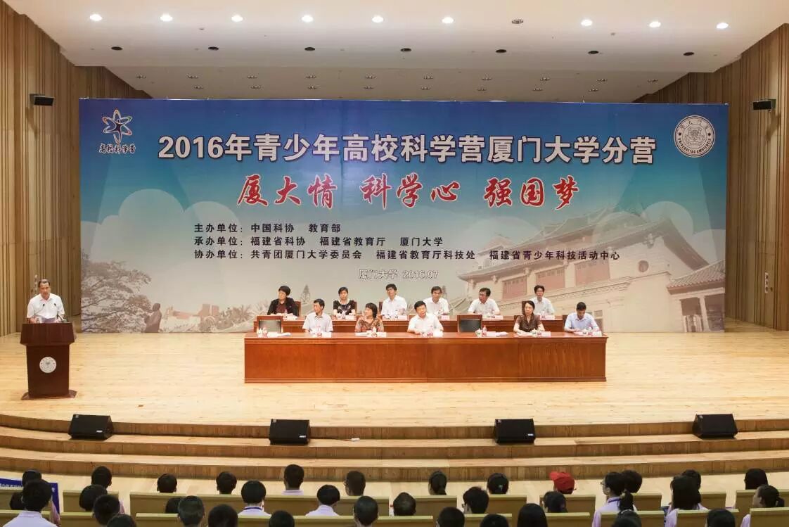 7月15日,由中國科協(xié)、教育部主辦,中國科學院支持,福建省科協(xié)、福建省教育廳和廈門大學承辦的2016年青少年高校科學營廈門大學分營開營。福建省科學技術(shù)協(xié)會黨組成員、副主席林學理,廈門大學黨委副書記林東偉等領(lǐng)導和嘉賓出席了開營儀式。來自福建、河南、浙江、湖南、江蘇、云南、安徽以及山東的近200名優(yōu)秀在校高中生和帶隊教師參加了開營儀式。儀式由廈門大學團委書記陳懷鋒主持。