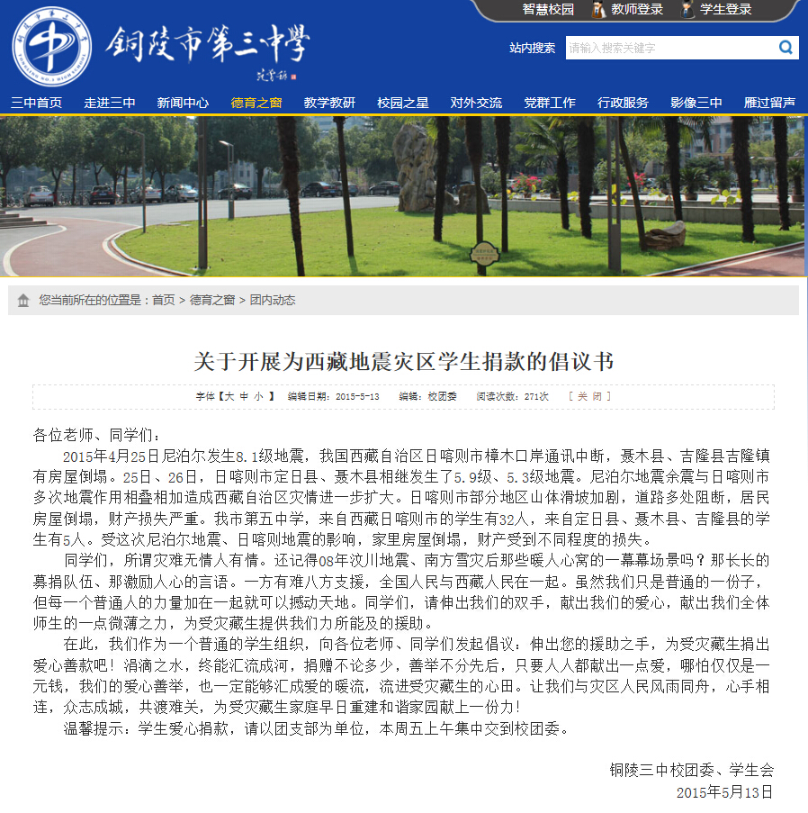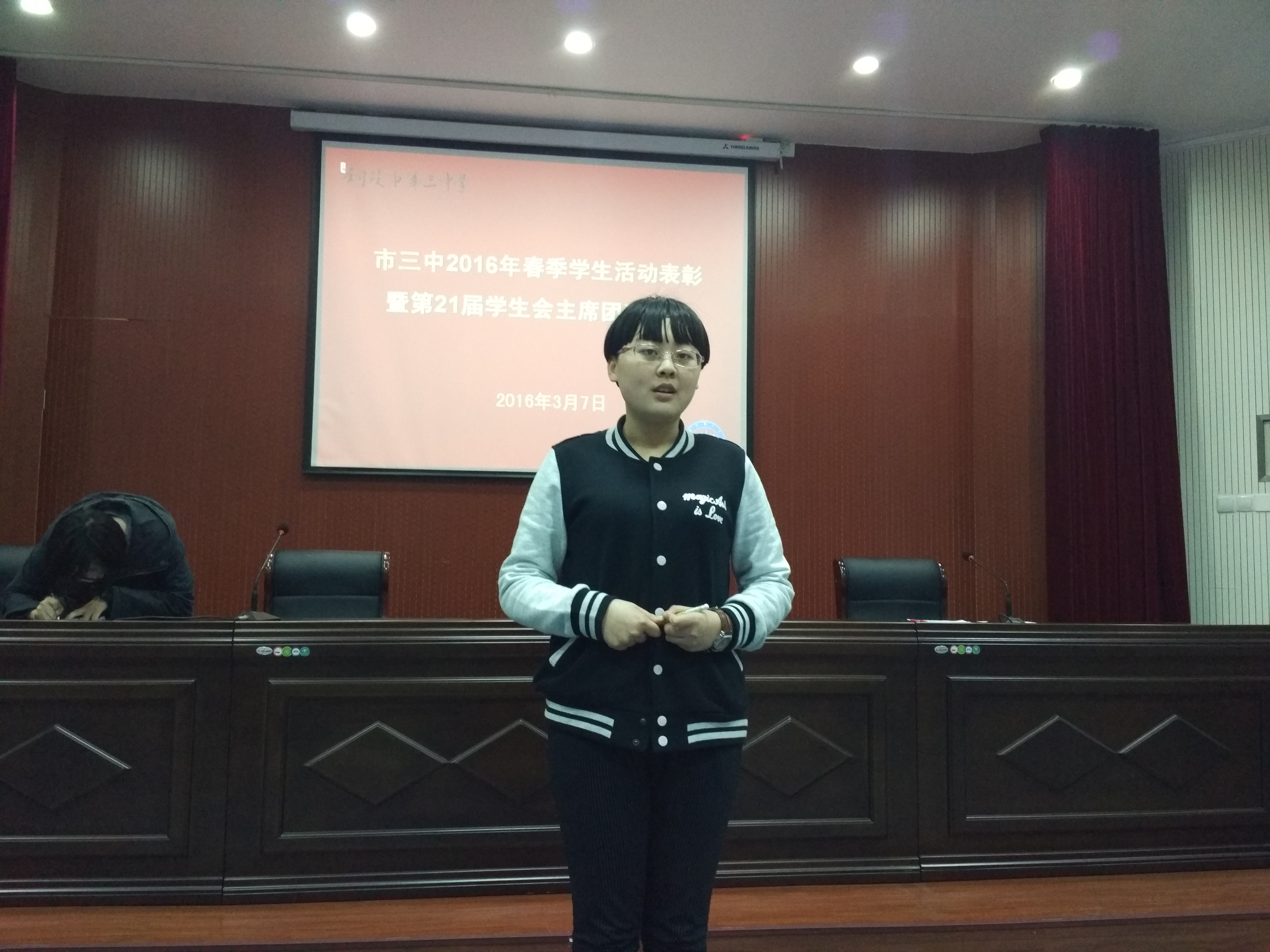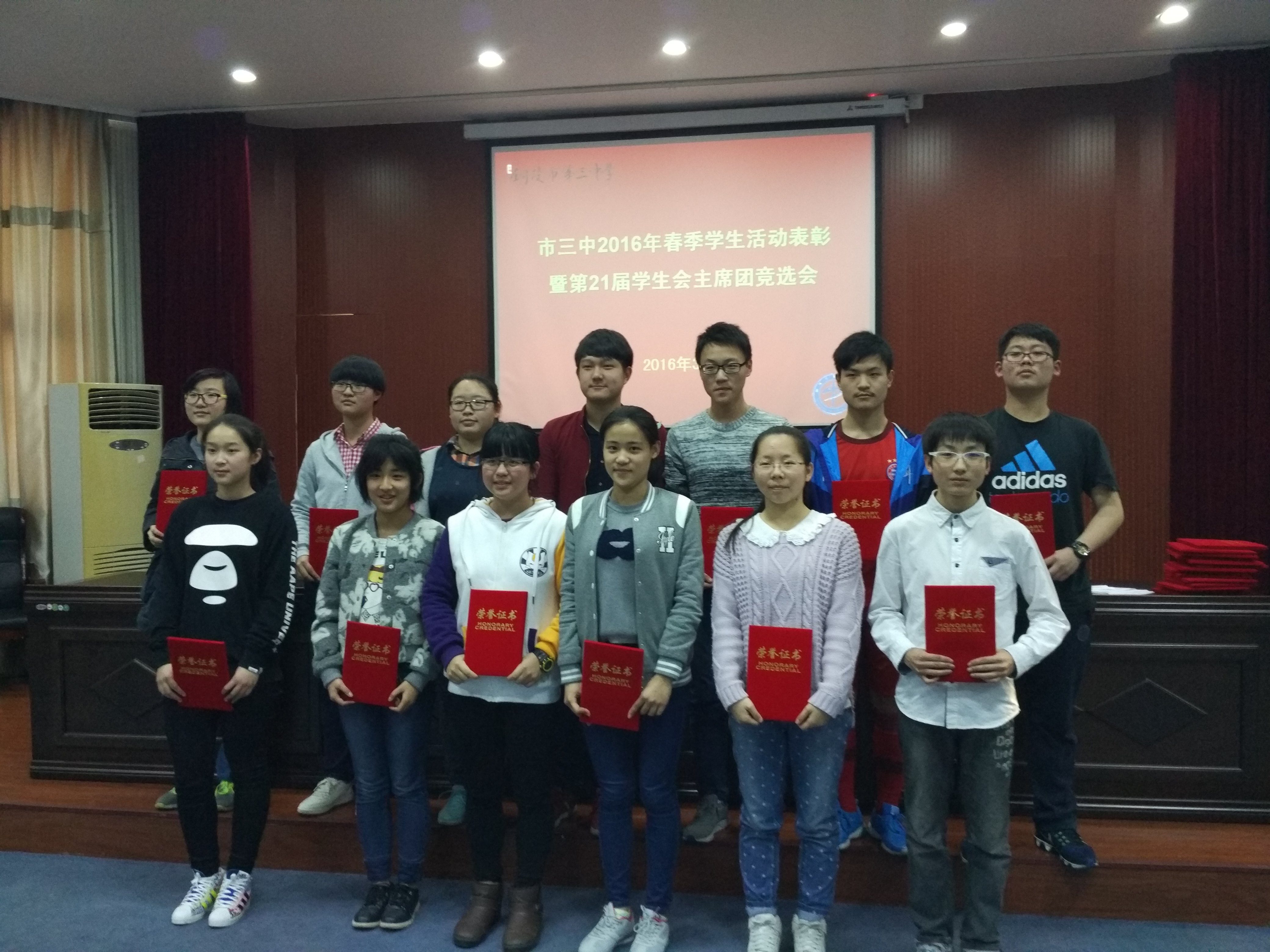 銅陵市第三中學(xué)學(xué)生會是在校團(tuán)委和政教處的指導(dǎo)下,秉承“身體健康,心理陽光,學(xué)業(yè)進(jìn)步”的12字辦學(xué)目標(biāo),緊緊團(tuán)結(jié)全校學(xué)生,獨(dú)立開展工作的先進(jìn)學(xué)生組織,是實(shí)現(xiàn)學(xué)生“自我服務(wù)、自我管理、自我教育和自我成長”的溫馨之家。