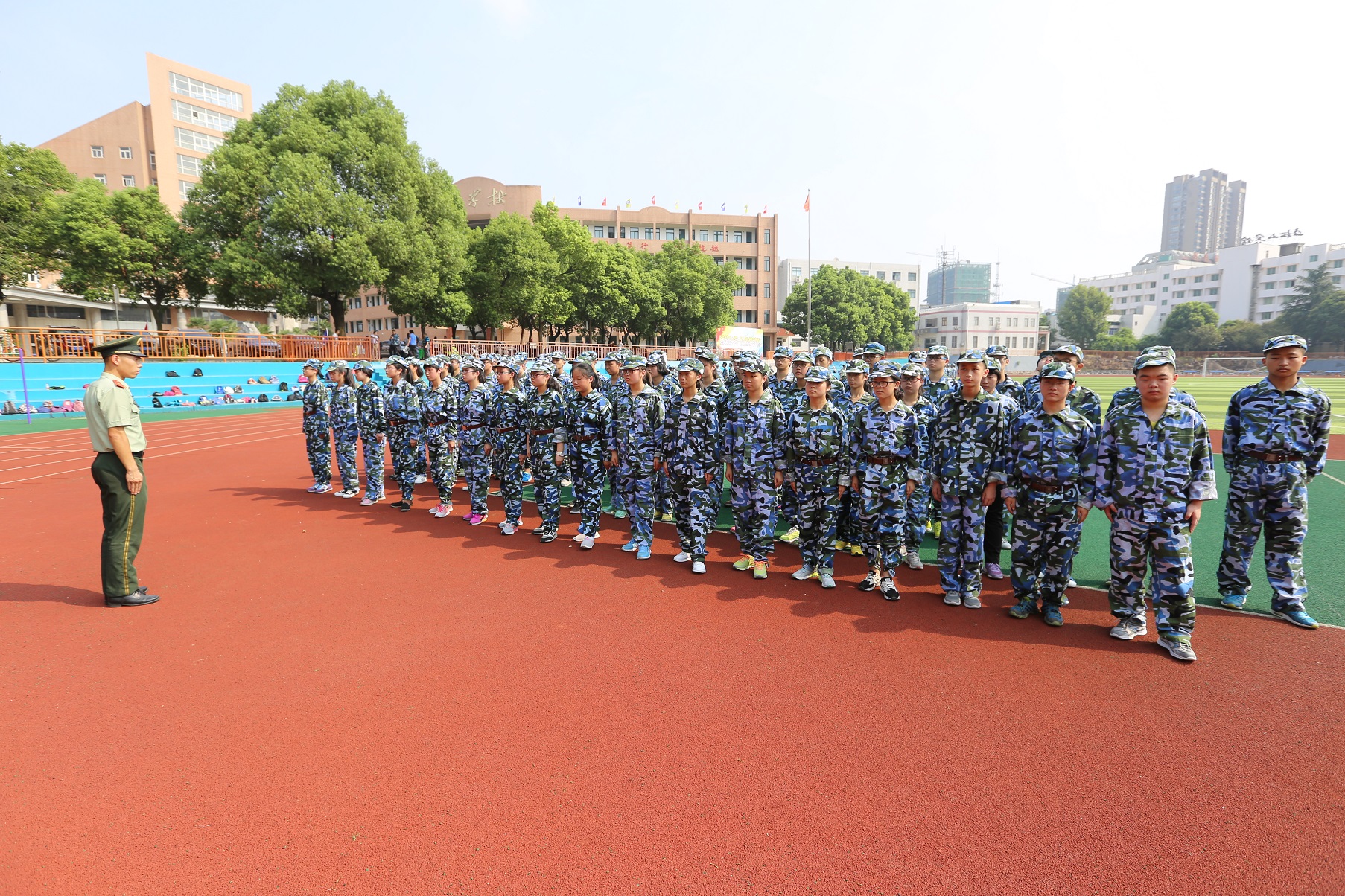 編按:度過(guò)了輕松愉悅的暑假,2016級(jí)高一新生迎來(lái)了軍訓(xùn)季。在銅陵三中操場(chǎng)上,站軍姿、喊口號(hào),齊步、正步走,對(duì)這些剛剛步入高中的“00后”來(lái)說(shuō),這是他們?nèi)松惺状蚊鎸?duì)軍訓(xùn),盡管天氣有點(diǎn)熱、盡管訓(xùn)練有點(diǎn)苦,但對(duì)于這些新生們來(lái)說(shuō),磨練的機(jī)會(huì)到了……