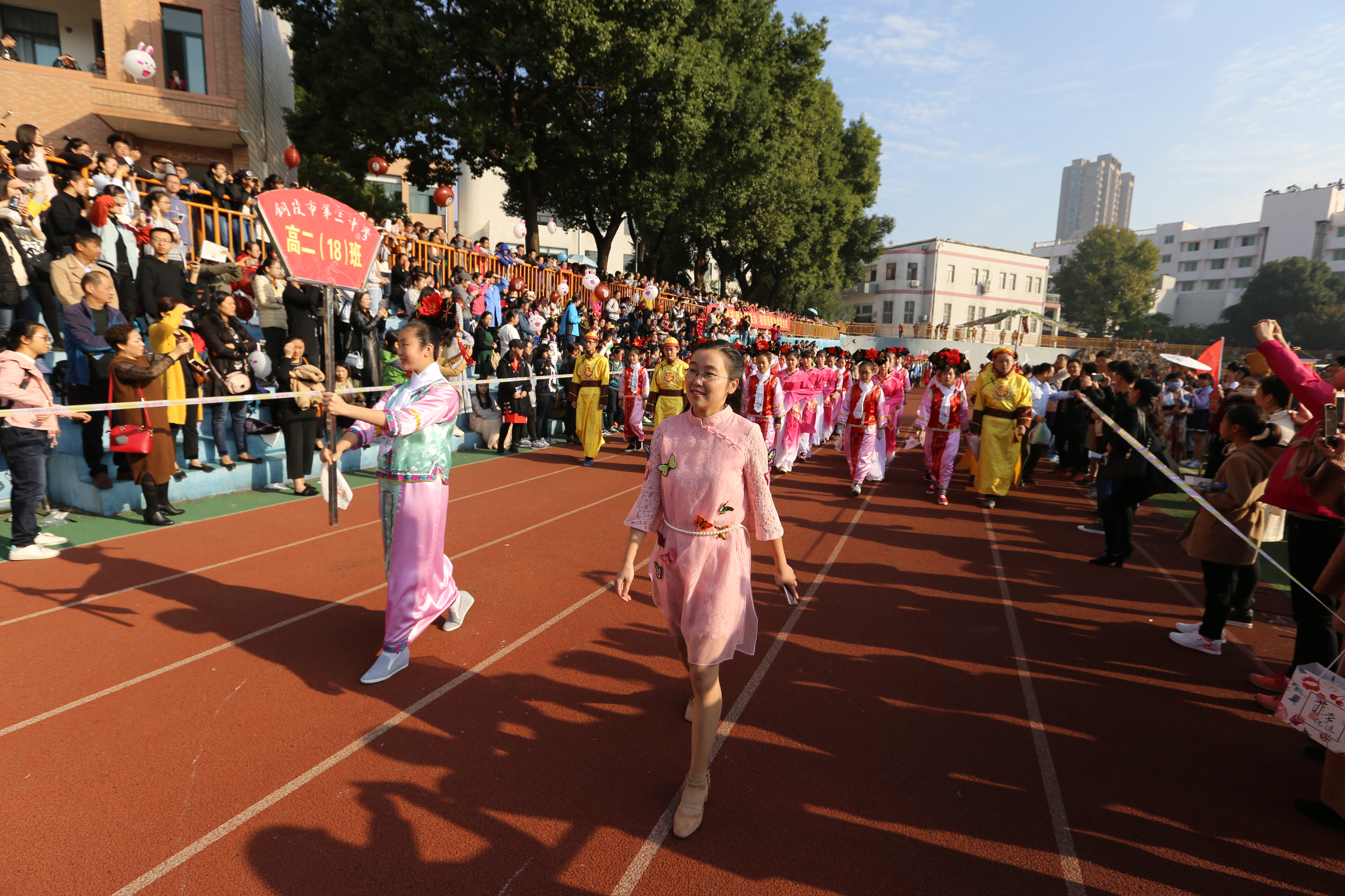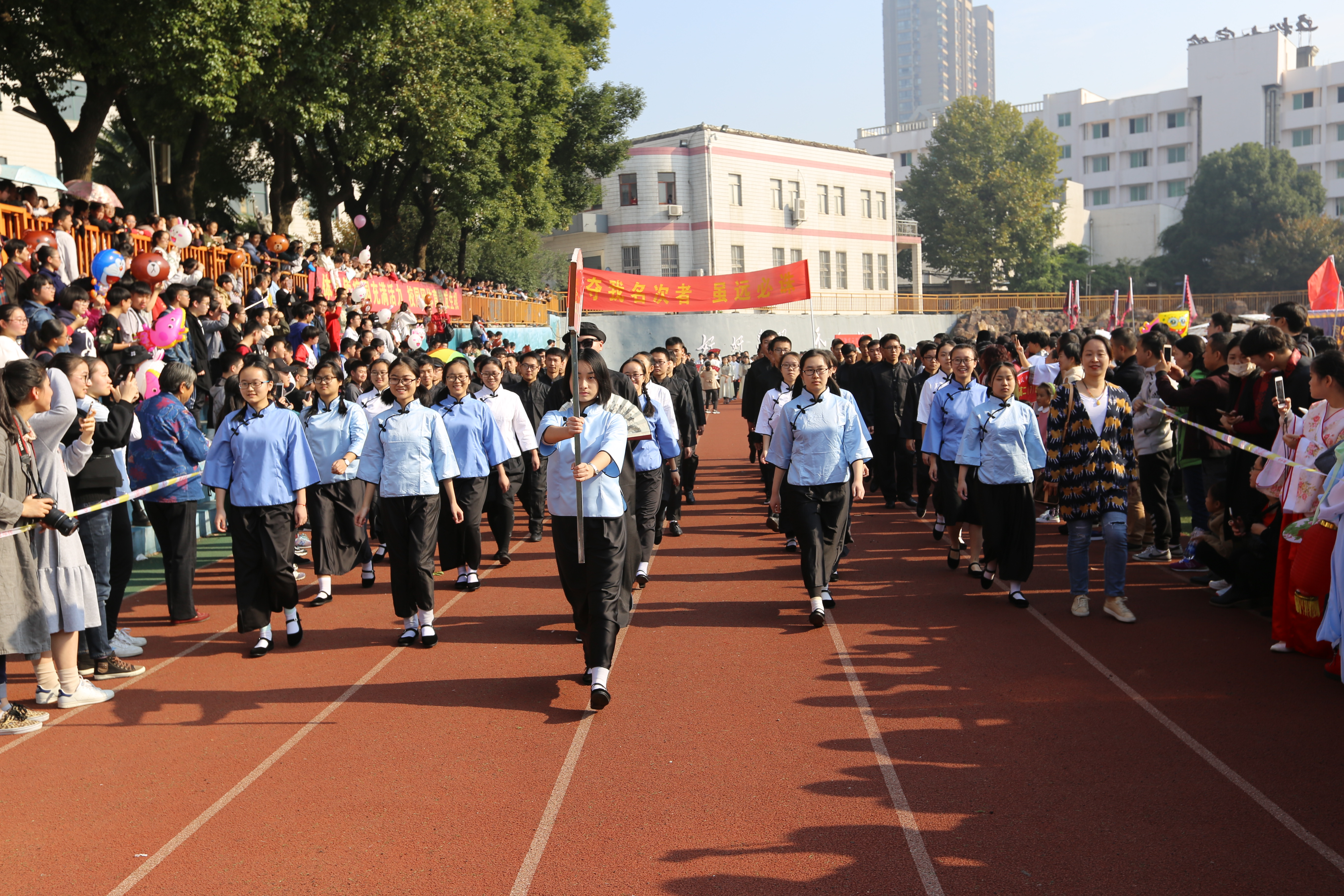 開幕式結(jié)束,各項(xiàng)目的比賽正式開始。據(jù)了解,學(xué)校本屆運(yùn)動(dòng)會賽程兩天半,分設(shè)學(xué)生男子組、女子組和趣味組,師生們分別在短跑、中長跑、鉛球、跳高、跳遠(yuǎn)、接力賽、手榴彈投準(zhǔn)等項(xiàng)目上展開角逐。共有60多個(gè)代表隊(duì)、1000余名師生運(yùn)動(dòng)員參賽,全部項(xiàng)目的教師裁判員和后勤服務(wù)保障工作人員100多名。