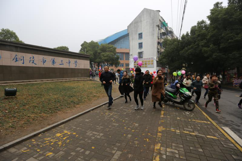 今年健身活動共有長跑、拔河、趣味項目三個部分。首先進(jìn)行的是長跑。由全體教職工及家屬、共建單位的同志們組成的壯大隊伍在校旗手劉犇老師的帶領(lǐng)下,意氣風(fēng)發(fā)、精神抖擻,向終點進(jìn)發(fā)。老師們矯健的身影,昂揚的姿態(tài),成為街路上最耀眼的風(fēng)景線。前進(jìn)的步伐從不停止,三中的奮進(jìn)永不停歇!
