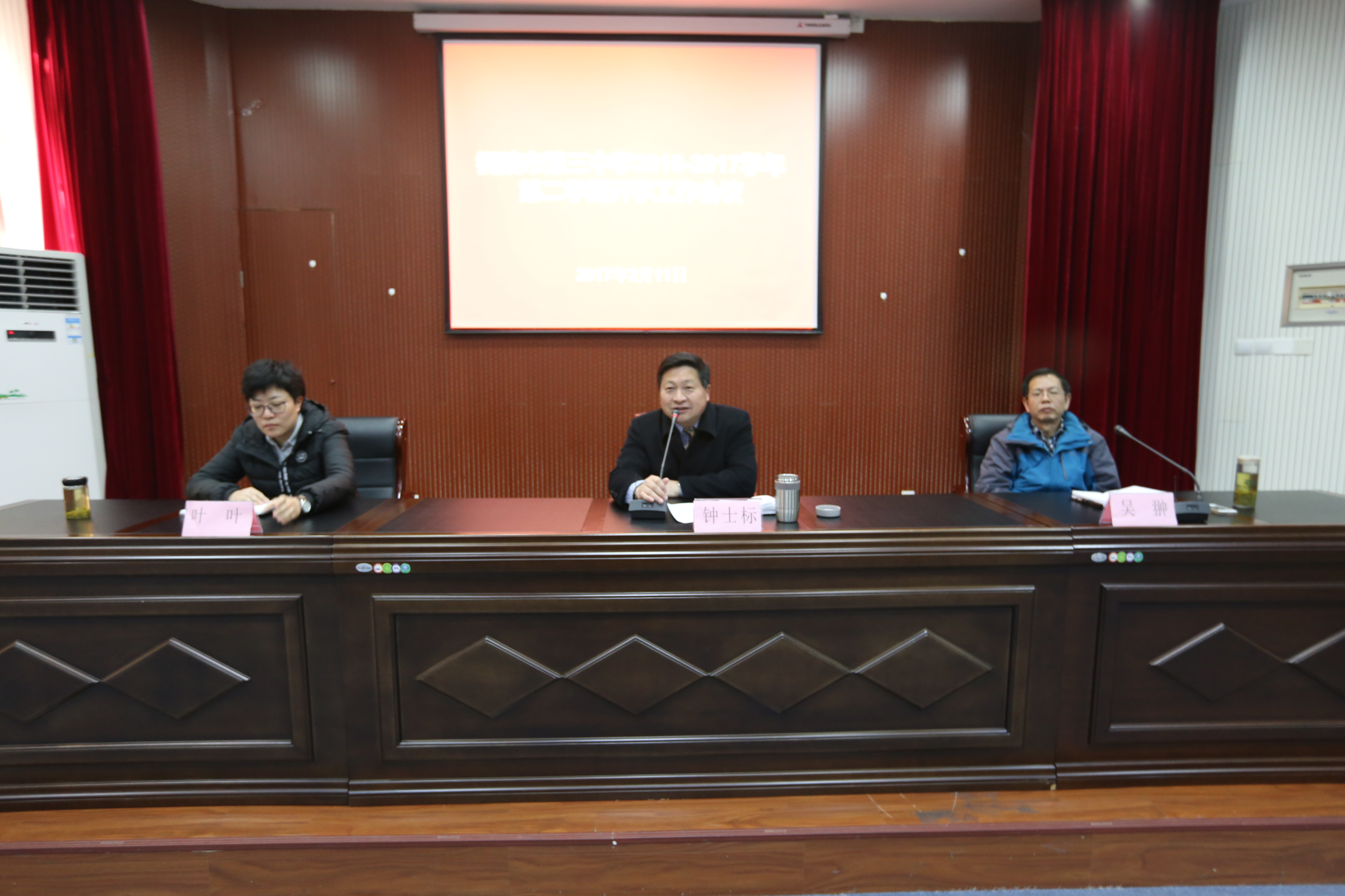 2月11日上午9:00,我校在多功能廳召開2016-2017學(xué)年度第二學(xué)期開學(xué)工作會議,校領(lǐng)導(dǎo)班子和全體教職工參加會議。