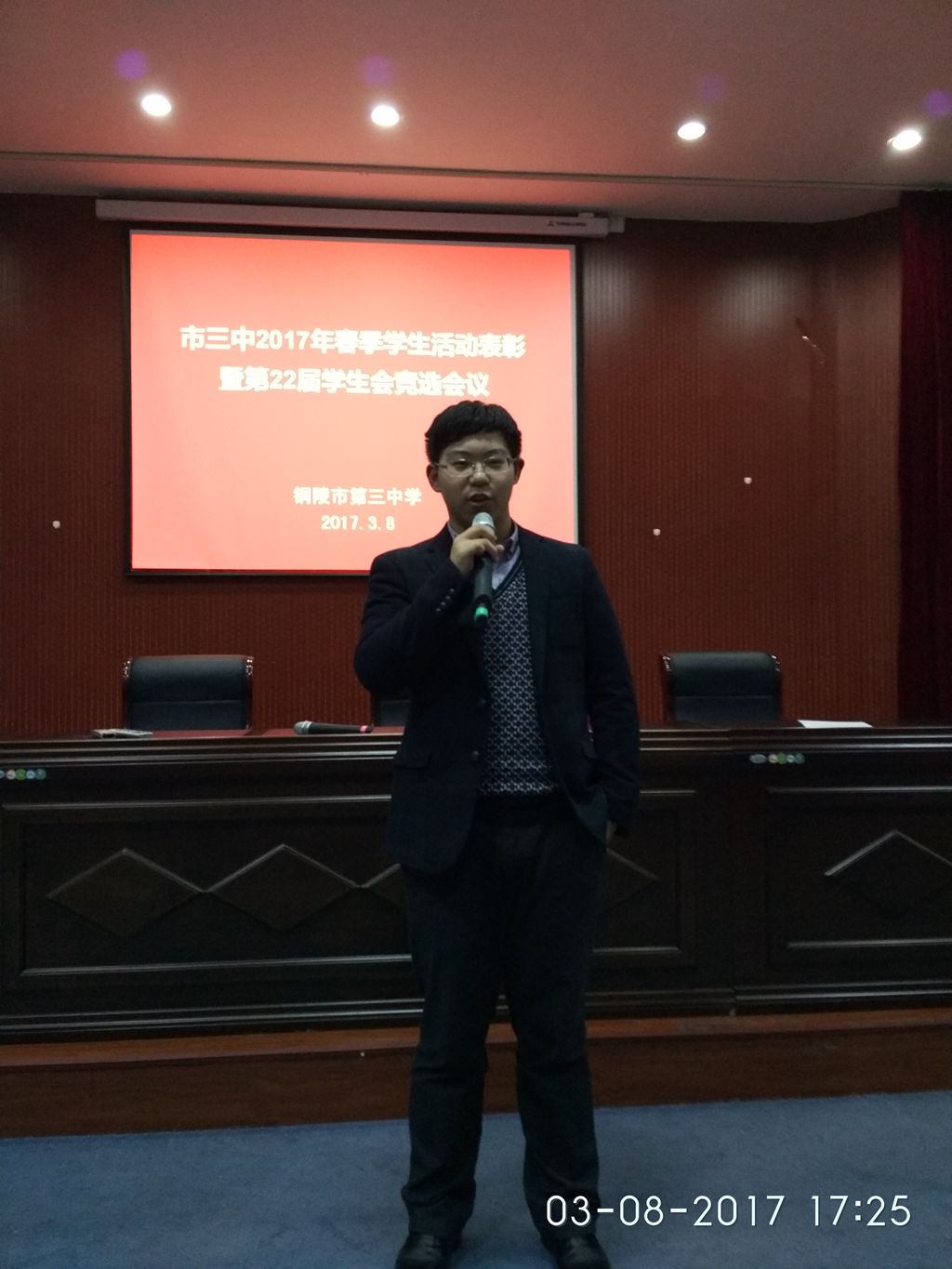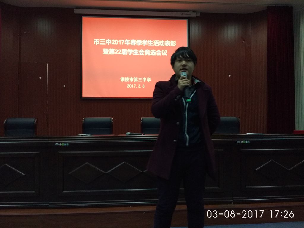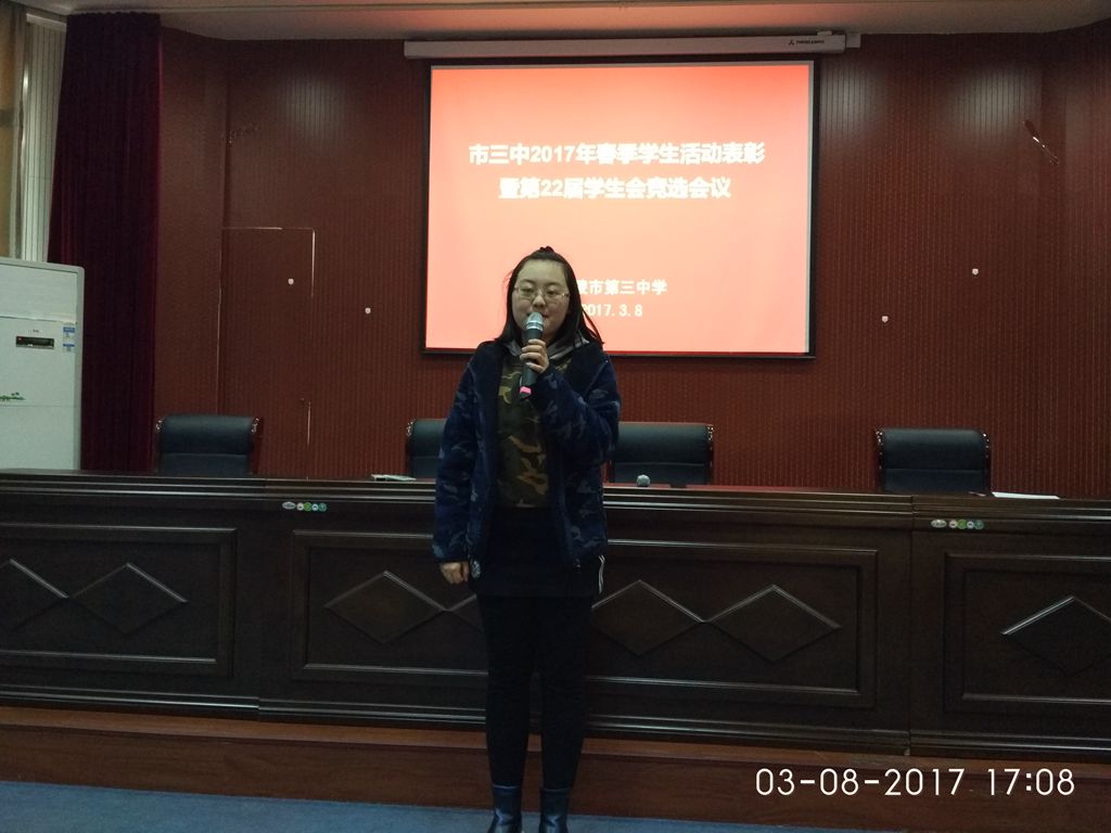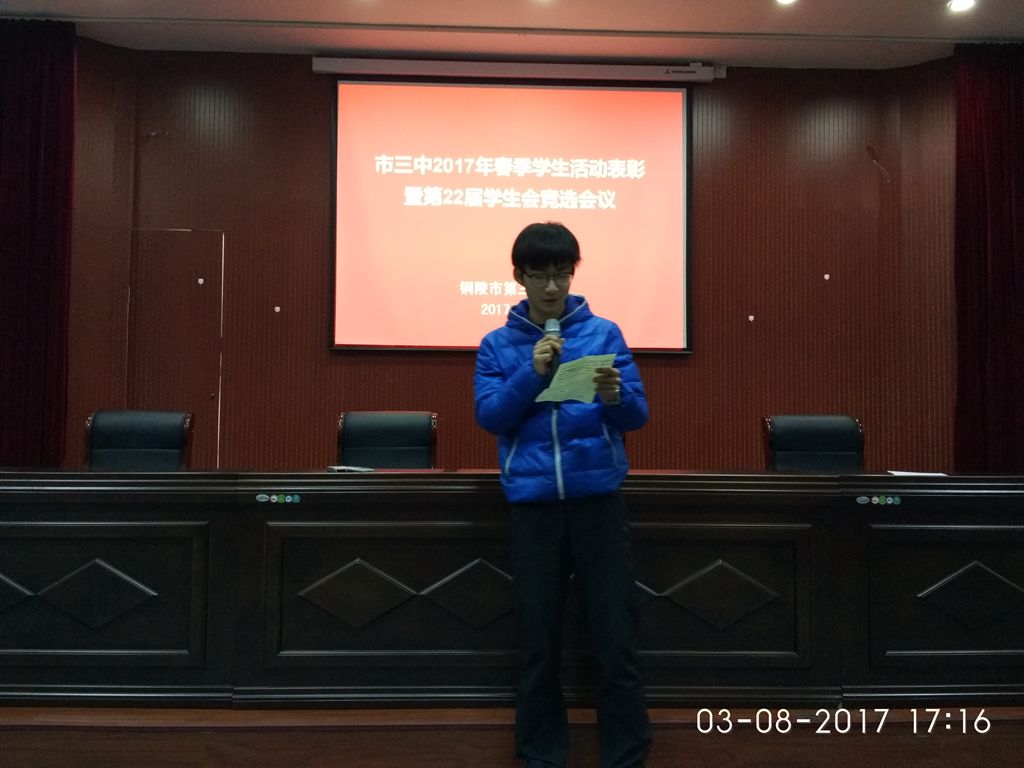 2017年3月8日下午16點(diǎn)40分,在校政教處和校團(tuán)委的精心組織下,我校2017年春季學(xué)生活動(dòng)表彰暨第22屆學(xué)生會(huì)主席團(tuán)競(jìng)選會(huì)在校多功能廳如期召開(kāi),全體學(xué)生會(huì)成員、全體校報(bào)成員和各社團(tuán)骨干成員參會(huì)。會(huì)議由校團(tuán)委王俊朝老師主持。