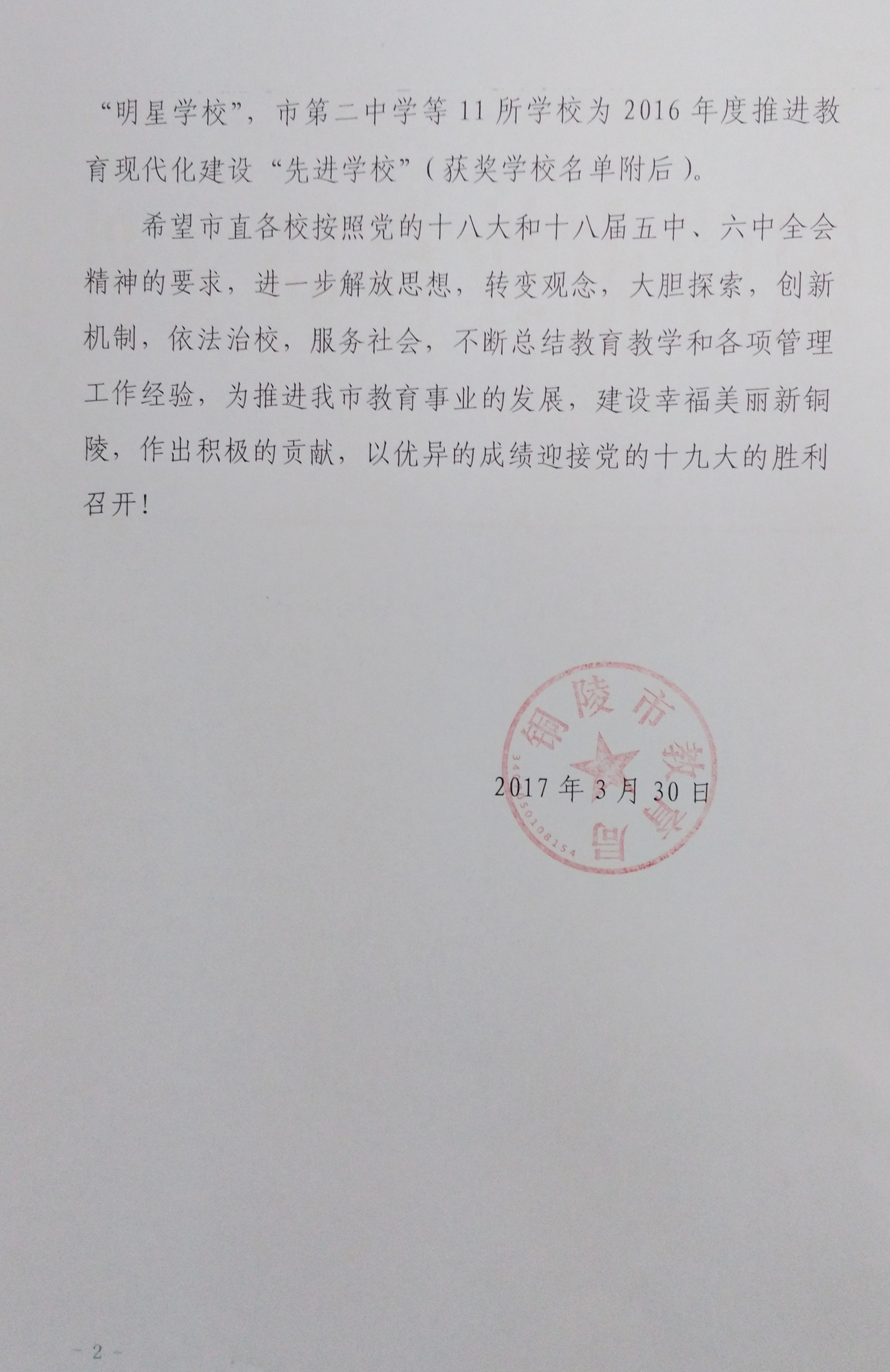 近年來,我校堅持以“身體健康,心理陽光,學(xué)業(yè)進步”為辦學(xué)目標(biāo),真抓實干,砥礪前行,積極推進教育教學(xué)改革,認(rèn)真扎實開展各項工作,在全體師生的共同努力下,辦學(xué)水平大幅度提升,教育教學(xué)成績得到社會各界的廣泛贊譽,在2016年度市直學(xué)?己酥校倚T俅潍@“明星學(xué)!睒s譽稱號,這是繼2015年度市直學(xué)?己艘匀械谝幻某煽儽辉u為2015年度“明星學(xué)!焙笤佾@此殊榮。據(jù)悉,我校也是在2016年度市直學(xué)校考核中唯一一所獲此稱號的省級示范高中。