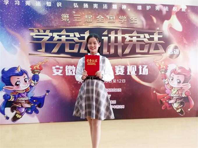 10月10日—10月12日,由安徽省教育廳舉辦的中學生“學憲法講憲法”省級演講比賽在合肥舉行,全省高中組共有16名學生選手參加比賽。此次比賽獎項設置為:一等獎3名,二等獎3名,三等獎10名。在市教育局開展的中學生“學憲法講憲法”演講比賽的基礎上,我校高三(18)班田小凡同學拔得頭籌,代表銅陵的萬千高中學子參加中學生“學憲法講憲法”省級演講比賽,宣揚《憲法》之義。經過兩天激烈的比拼,田小凡同學不畏強手,勇摘學生“學憲法講憲法”省級演講比賽一等獎第二名。