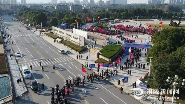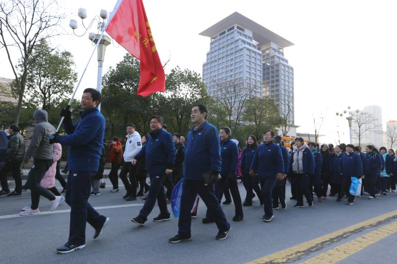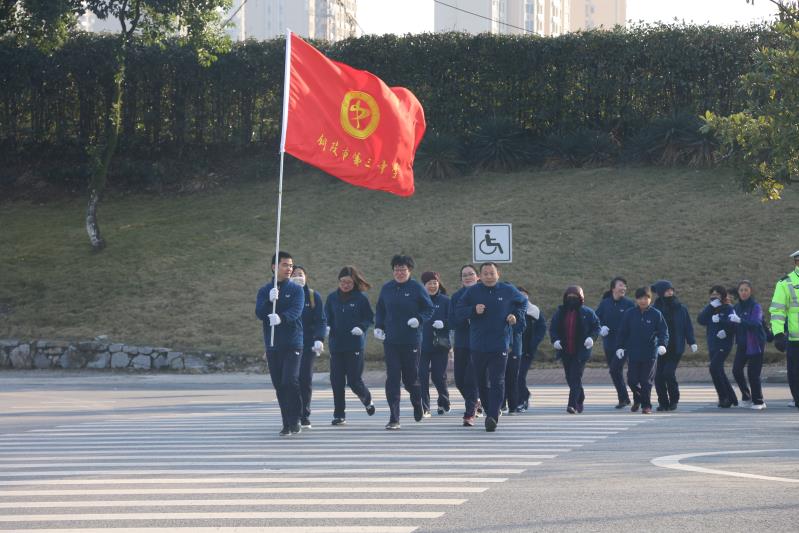 另一組由副校長葉葉帶領其余教職員工參加我校元旦健步走活動。健步走路線為三中——育才路——湖東路——市政府廣場——天井湖公園——市政府廣場——湖東路——育才路——三中,全程4公里。