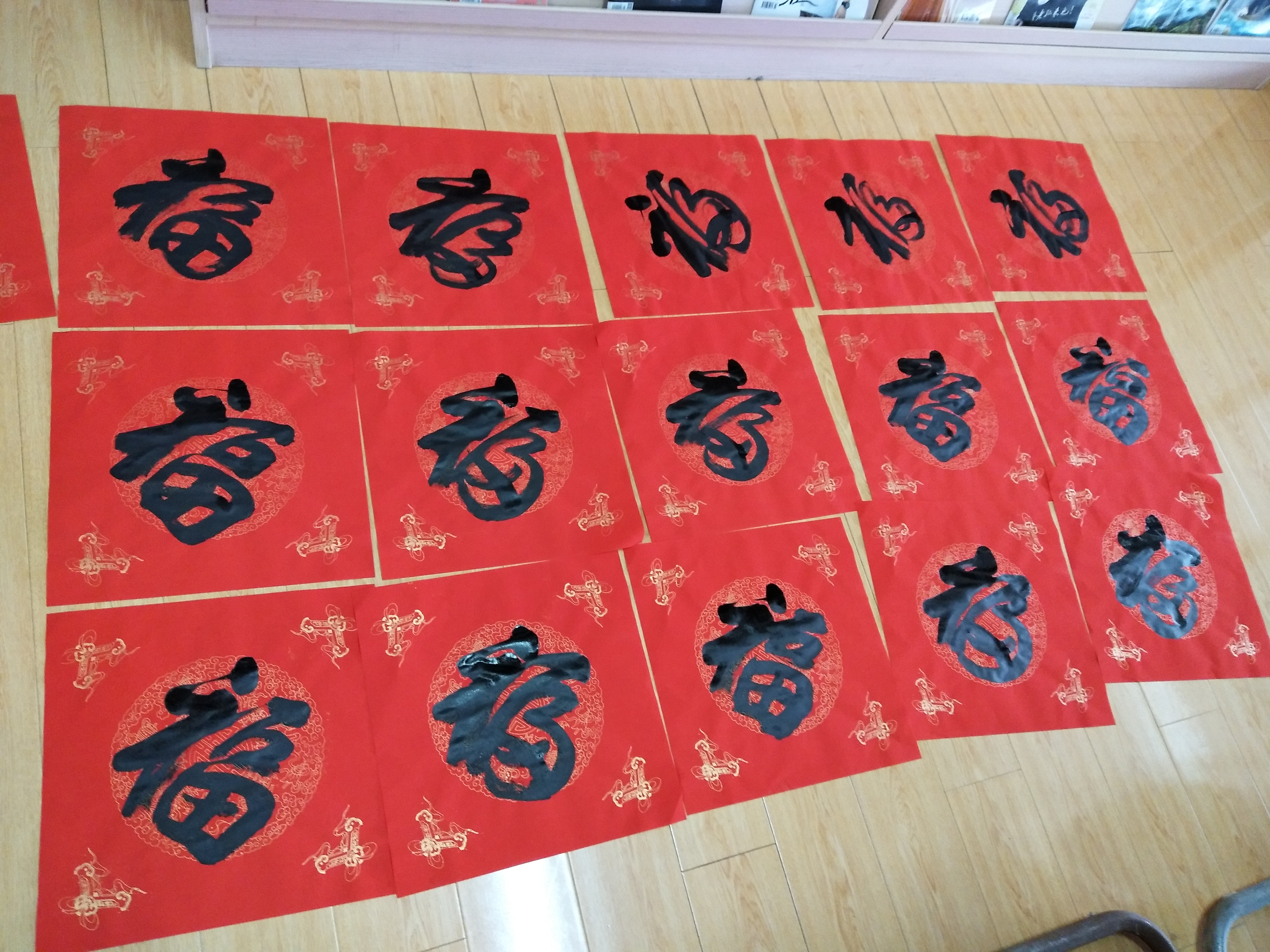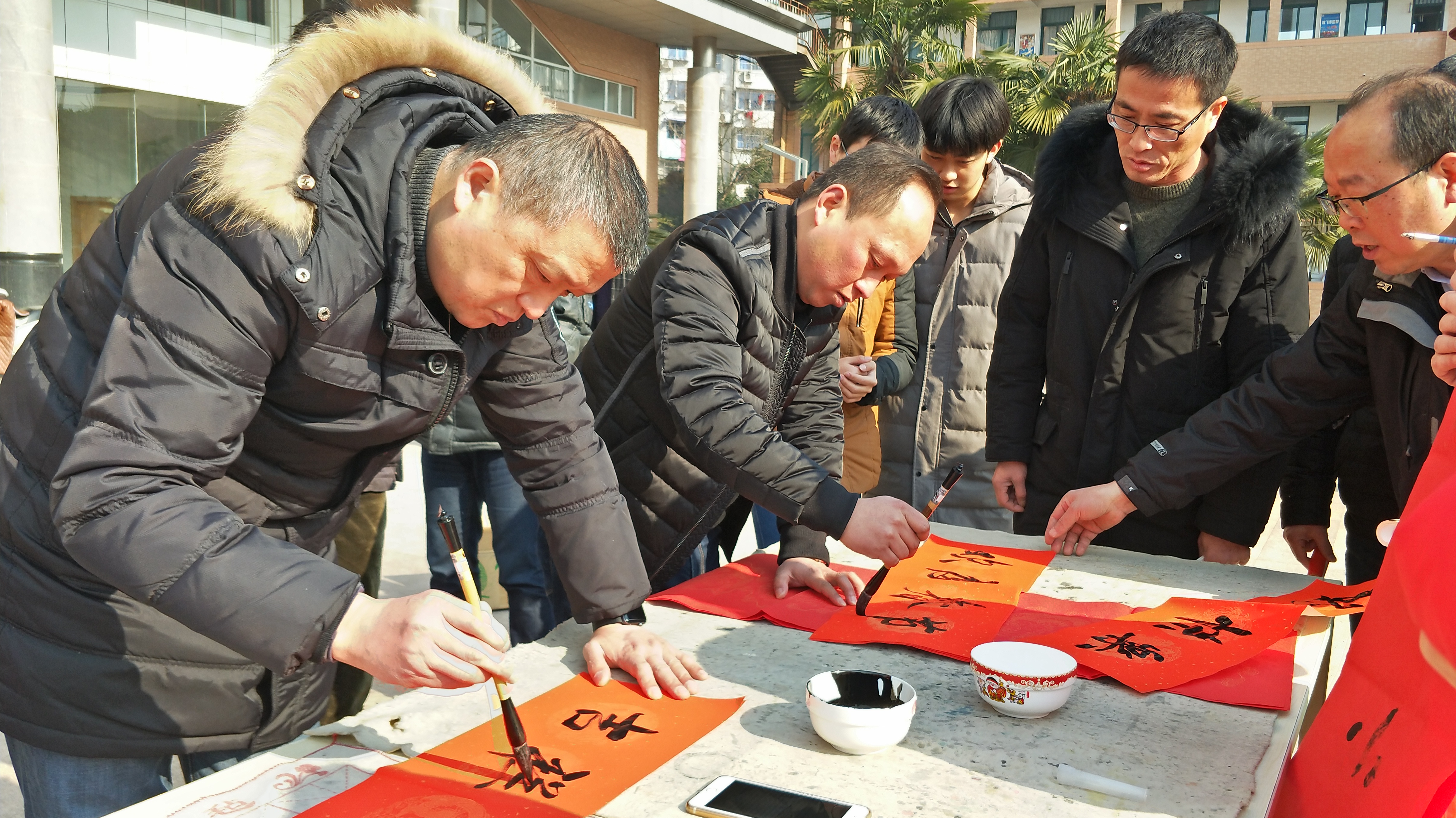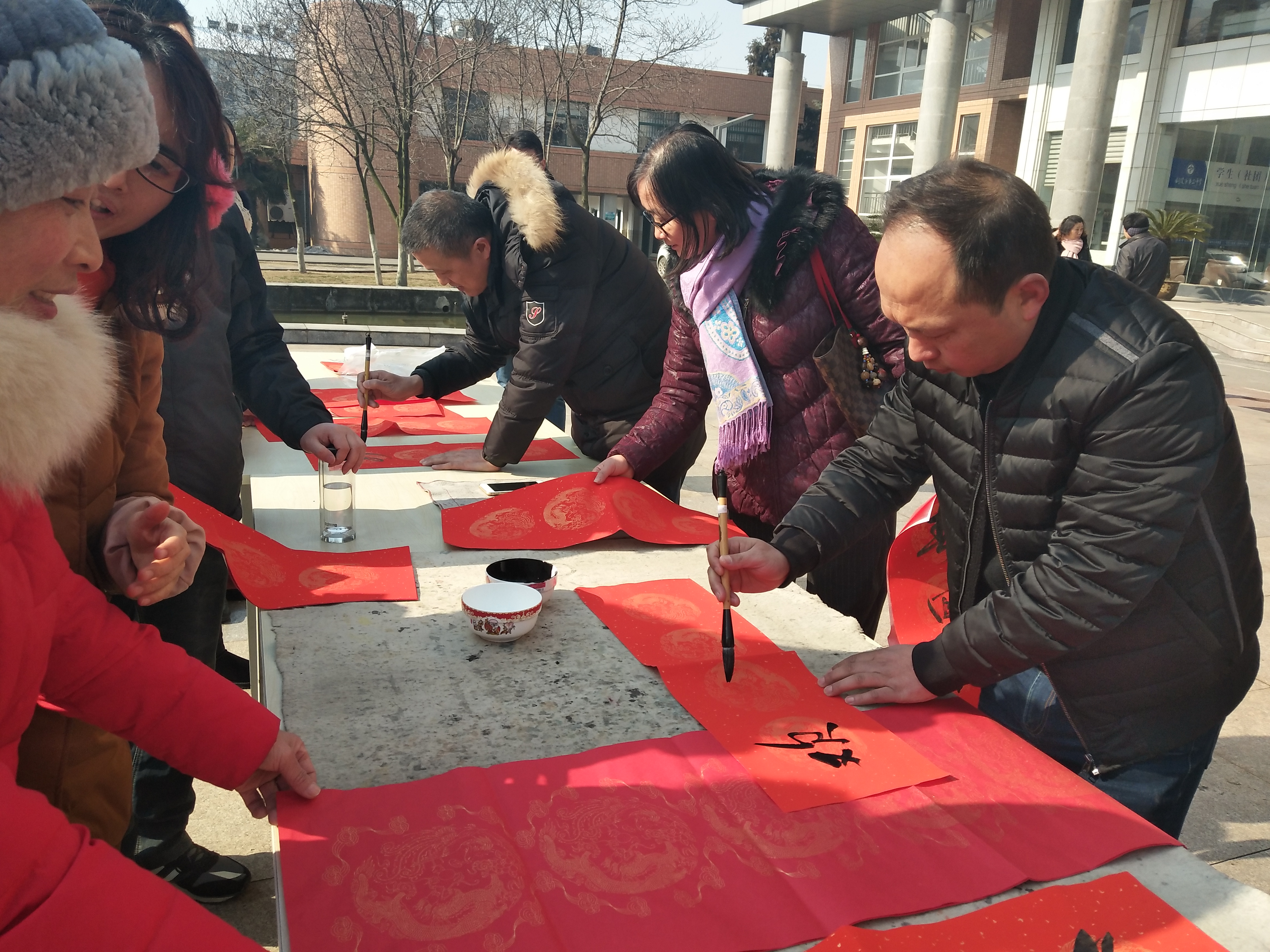 學(xué)校兩位書法家王勇和任仕民在現(xiàn)場(chǎng)書寫飽含祝福祥和內(nèi)容的楹聯(lián)和“福”字送給所有教職員工,受到大家的熱烈歡迎!