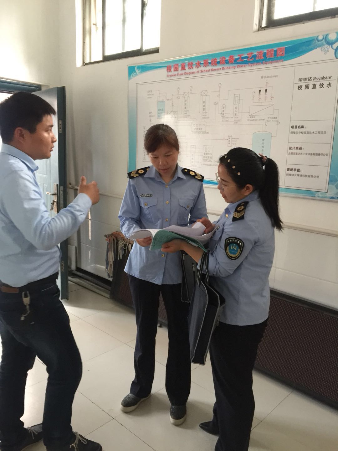 為保障廣大師生的飲用水安全,防止介水傳染病在校園內(nèi)發(fā)生和流行,市衛(wèi)生監(jiān)督局4月3日來我校進行直飲水衛(wèi)生安全專項監(jiān)督檢查。此次專項檢查項目主要為:學校飲用水衛(wèi)生管理檔案、管理制度的建立情況,飲用水污染應(yīng)急處置預(yù)案是否有操作性,管水人員的健康證持證情況,定期清洗、消毒及相關(guān)管件更換記錄,以及是否定期對直飲水進行送檢、檢測結(jié)果是否合格等。檢查中,市衛(wèi)生監(jiān)督局領(lǐng)導對我校直飲水衛(wèi)生安全提出了一些建議和要求。