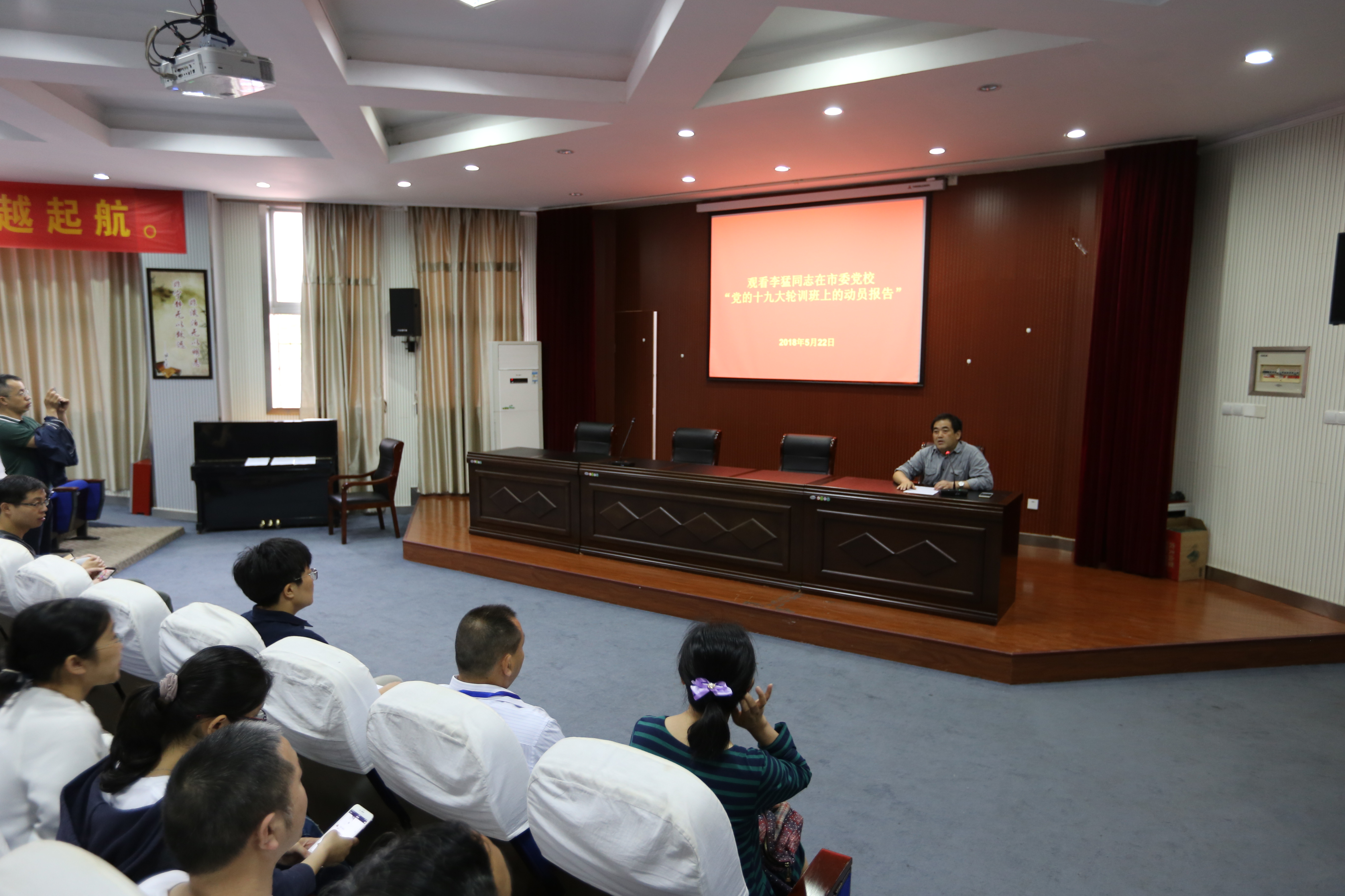 本次集中輪訓(xùn)共計(jì)6天,5月16日下午,校黨委書記、校長(zhǎng)鐘士標(biāo)主持召開學(xué)習(xí)黨的十九大精神輪訓(xùn)班開班儀式并作動(dòng)員報(bào)告。動(dòng)員報(bào)告中,鐘校長(zhǎng)強(qiáng)調(diào),全體教職工要深刻理解黨的十九大重要意義,切實(shí)把思想和行動(dòng)統(tǒng)一到黨的十九大精神上來,學(xué)習(xí)黨的十九大精神是當(dāng)前和今后一個(gè)時(shí)期的重要工作。要注重學(xué)深悟透,切實(shí)把握黨的十九大精神實(shí)質(zhì),自覺用習(xí)近平新時(shí)代中國(guó)特色社會(huì)主義思想武裝頭腦,指導(dǎo)實(shí)踐,推動(dòng)工作。要強(qiáng)化對(duì)標(biāo)落實(shí),凝聚推動(dòng)學(xué)校發(fā)展的強(qiáng)大動(dòng)力。在學(xué)校領(lǐng)導(dǎo)干部大會(huì)上,鐘校長(zhǎng)還就進(jìn)一步深入學(xué)習(xí)黨的十九大精神提出具體要求。在集中培訓(xùn)班上,我校行政支部書記章學(xué)標(biāo)、理科支部書記周翔、文科支部書記孫先進(jìn)、教科室錢軍主任分別就學(xué)習(xí)十九大精神作專題輔導(dǎo)報(bào)告,更有市教育局宣講團(tuán)來我校作巡回宣講,報(bào)告深入闡述了黨的十九大偉大的現(xiàn)實(shí)意義和深遠(yuǎn)的歷史意義,并就如何將黨的十九大精神落實(shí)到實(shí)際教學(xué)工作中提出了意見和建議。