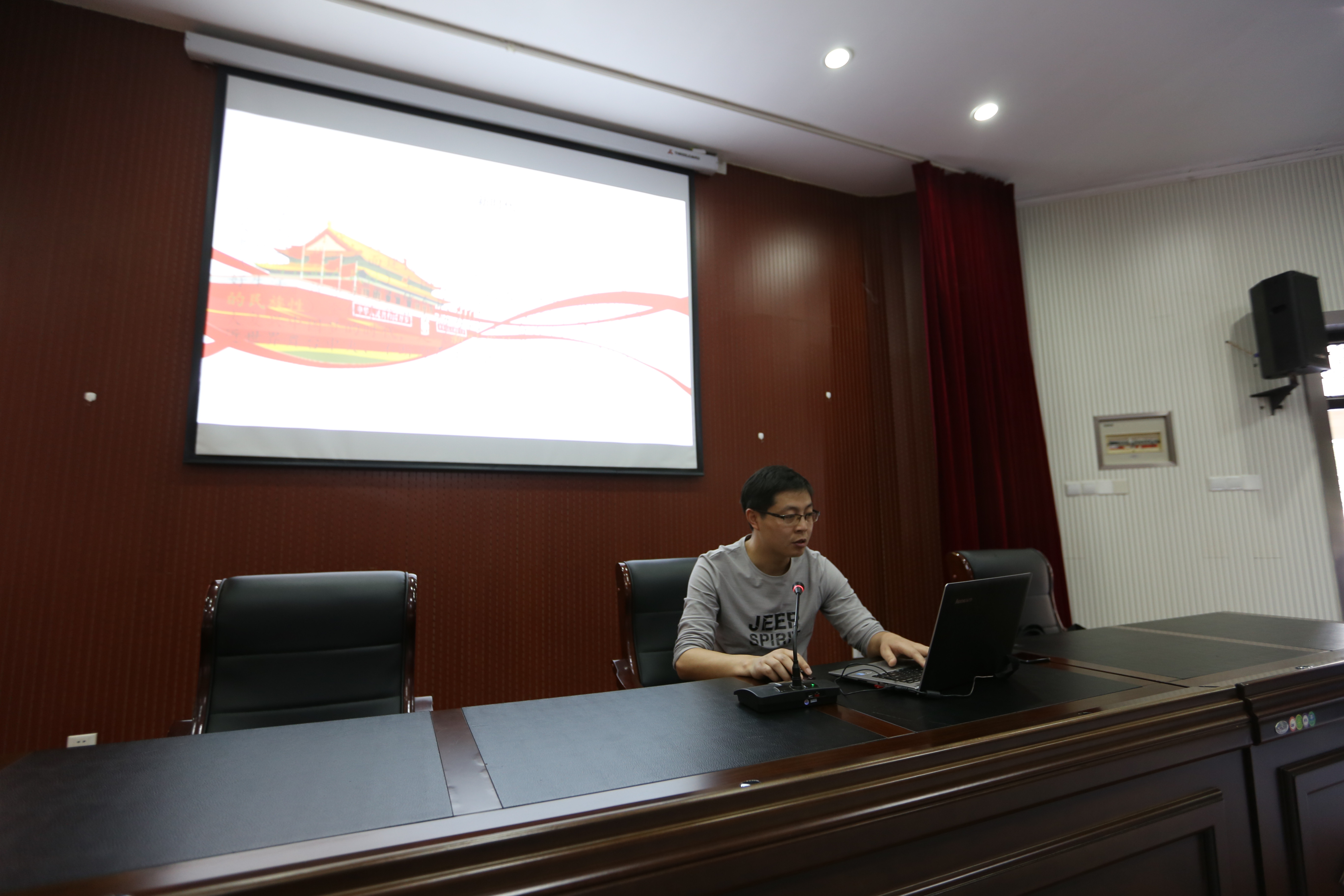 圖為全體教職工觀看李猛書記在市委黨校的講話