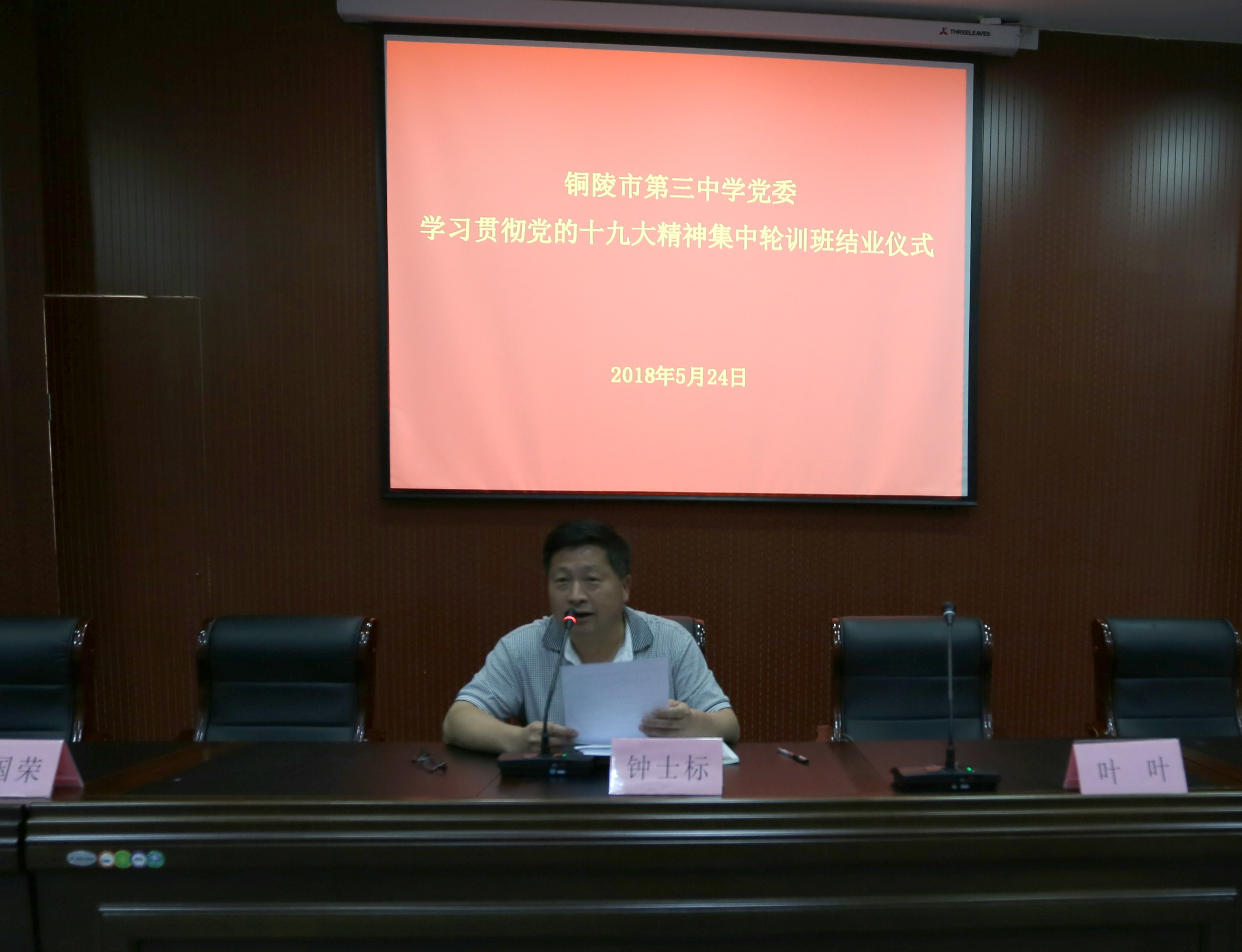 5月24日,為期6天的銅陵市第三中學(xué)全體教職工學(xué)習(xí)貫徹黨的十九大精神集中輪訓(xùn)班圓滿結(jié)業(yè)。