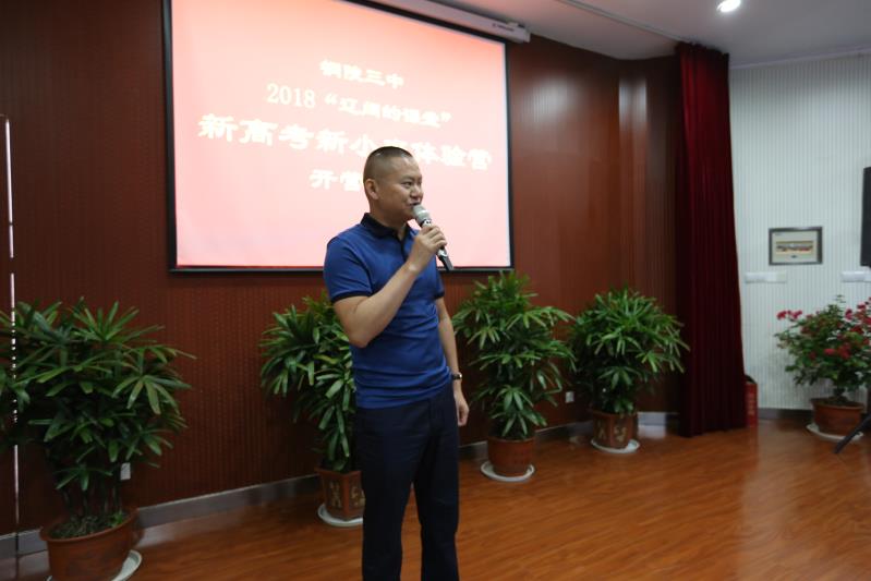 6月24日下午三點(diǎn),在這驕陽(yáng)似火、熱浪翻滾的夏日里,經(jīng)過前期充足的準(zhǔn)備,銅陵三中新一度的“遼闊的課堂”新高考新小班體驗(yàn)營(yíng)開營(yíng)儀式隆重舉行。出席開營(yíng)儀式的領(lǐng)導(dǎo)有校黨委書記、校長(zhǎng)鐘士標(biāo),副校長(zhǎng)葉葉,教務(wù)處主任張尤俊。
