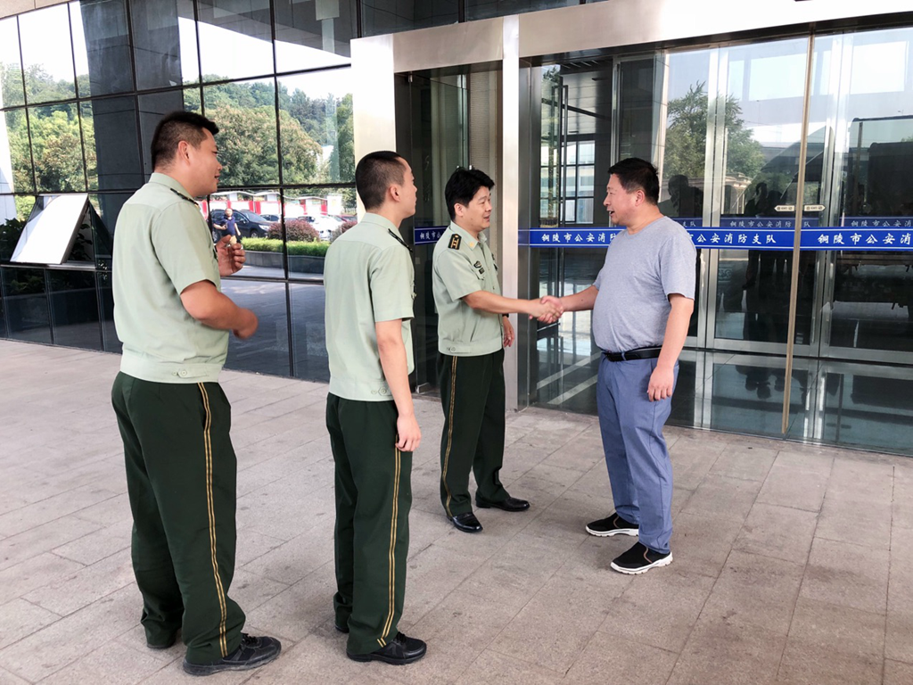 在武警銅陵消防支隊,鐘校長簡要介紹了銅陵三中的辦學特色和驕人的高考成績,對部隊多年來為學生軍訓等工作所作的貢獻和支持表示衷心感謝,學校將繼續(xù)發(fā)揮教育資源優(yōu)勢,全力支持部隊的建設和發(fā)展,將部隊和學校的情誼進一步延續(xù)和深化。