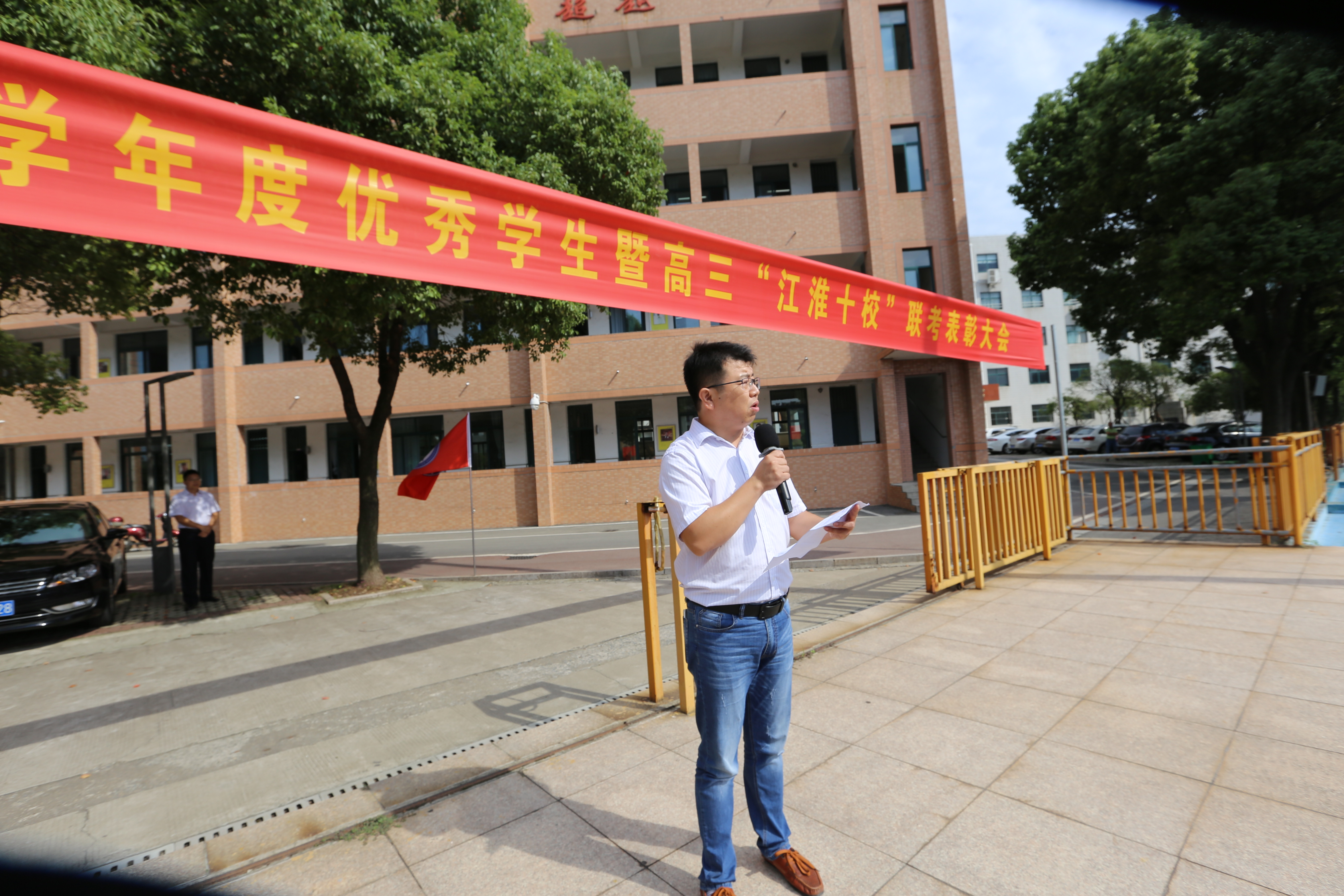 會議第二批表彰10人,分別是高三“江淮十!钡谝淮温(lián)考班級前五名學生代表——301班趙悅、302班樊想、303班朱天翔、304班劉成康、305班唐正威、306班阮業(yè)成、307班朱暉、308班汪雨男、309班阮文領(lǐng)、310班周凌、311班葉彬、312班吳旭、316班梅姝、317班王子路、318班陳諾、319(1)班楊振宇、319(2)班潘妍、319(3)班黃欣。高三“江淮十!钡谝淮温(lián)考班級進步獎學生代表:308班徐紀晨、309班施慧。