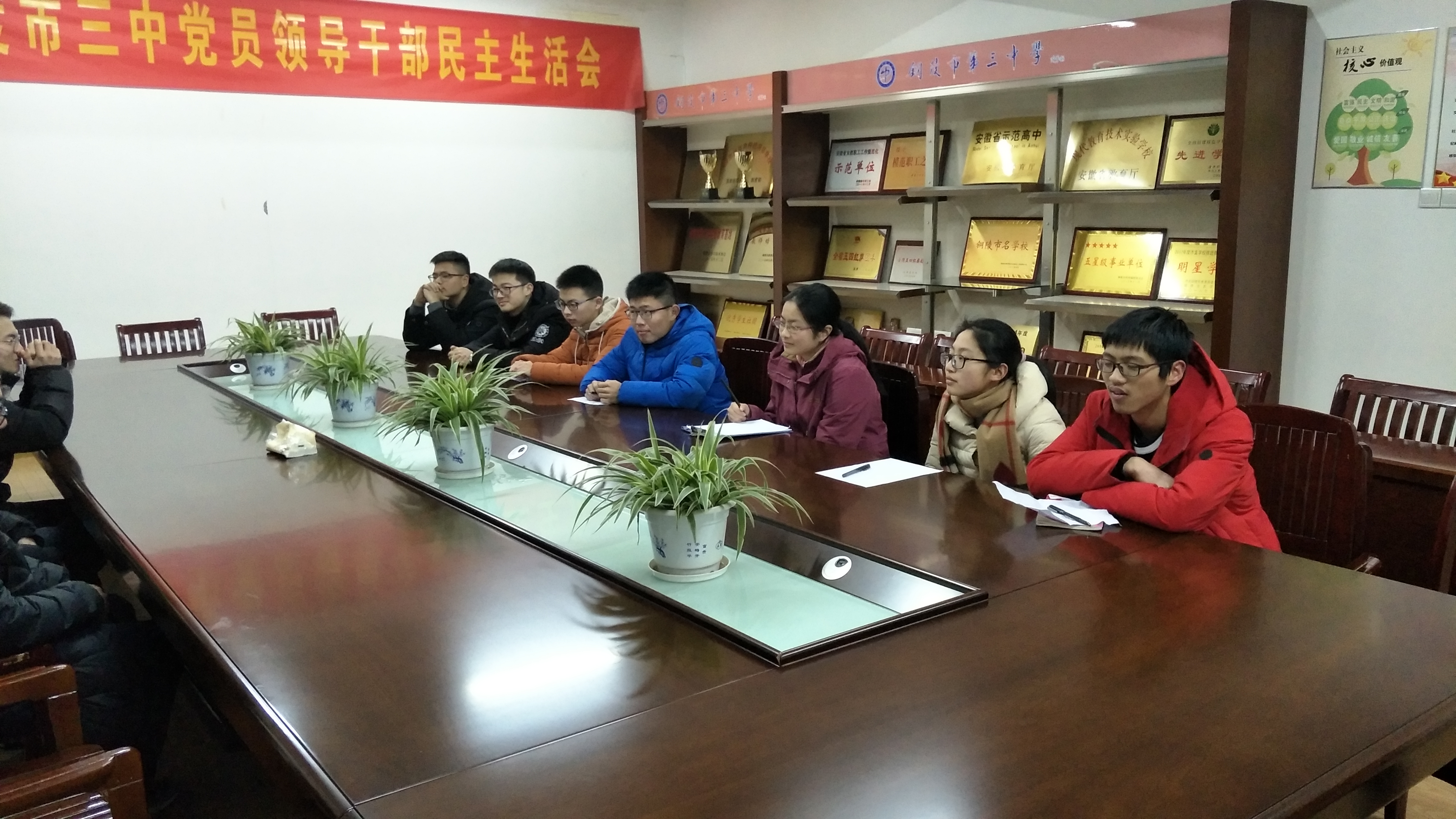 2019年2月1日晚,校綜合樓五樓會議室燈火通明,我校2017屆、2018屆優(yōu)秀畢業(yè)生何染塵(北京大學(xué))、產(chǎn)江濤(清華大學(xué))、夏羿(清華大學(xué))、李旻(復(fù)旦大學(xué))、黃博文(復(fù)旦大學(xué))回到母校,和2019屆高三優(yōu)秀學(xué)生代表交流座談,校教務(wù)處主任張尤俊主持座談會,高三年級部部長查旸參加座談會。