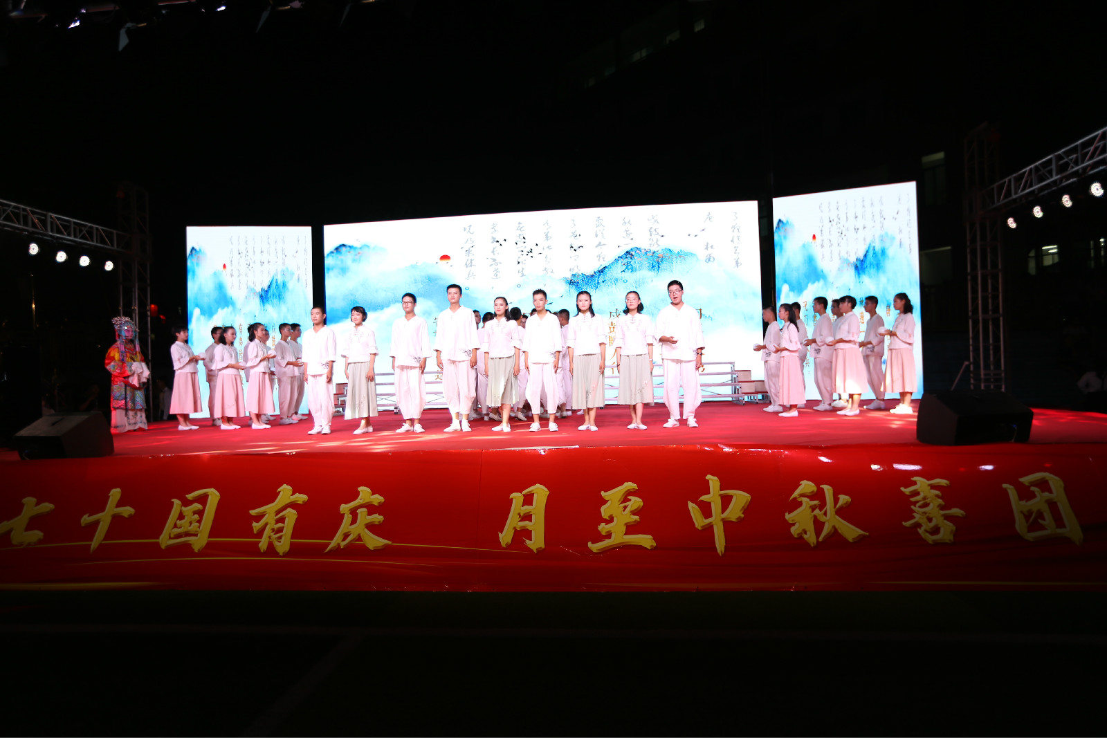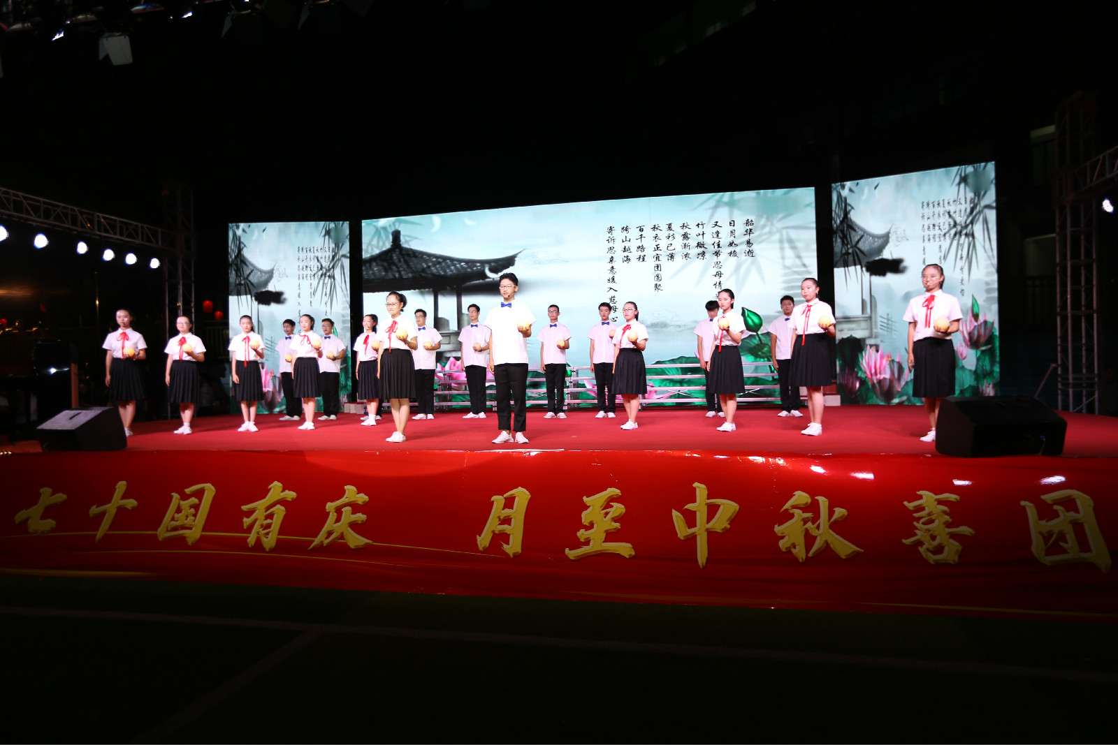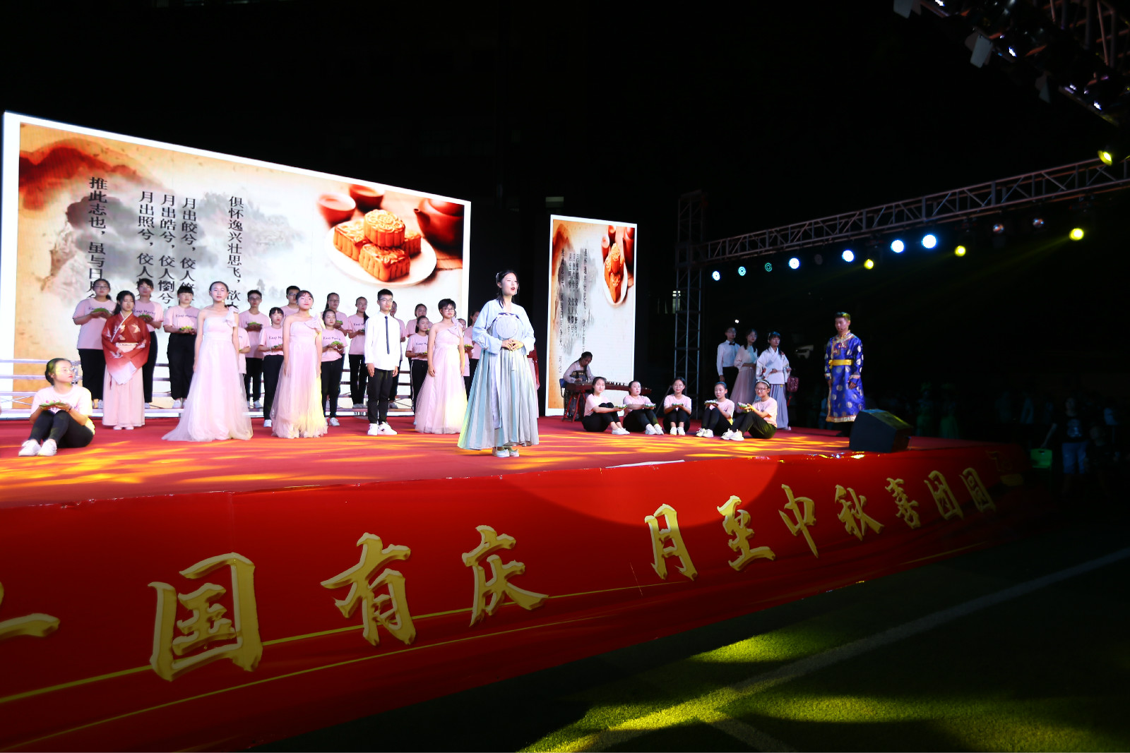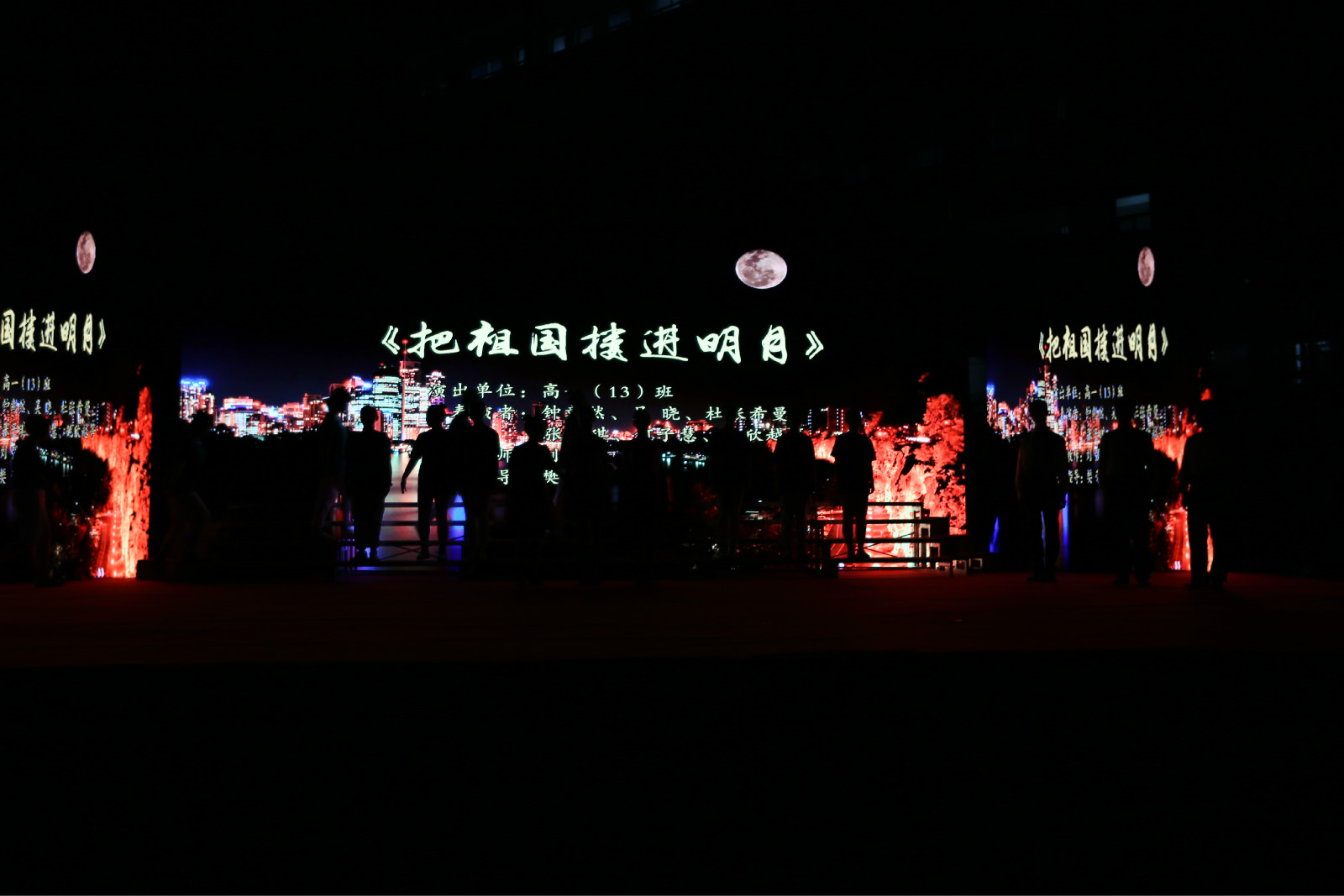 穿越百年,身著漢服溫婉如水的女子,一曲一調恰到好處,共同為大家呈現(xiàn)了一個個花好月圓、詩情畫意的美景中秋,詩會共分寄情明月、追月少年、祝福祖國三個篇章,本次詩會既傳統(tǒng)古典又結合不少現(xiàn)代元素,以“中秋”“詠月”“家國”為主要素材,以團圓、親情、溫暖為感情基調,每一個節(jié)目,都融入人們對團圓的渴望、對家的熱愛,讓節(jié)日的詩意與家的溫馨同啟,讓所有的美好在婉轉吟詠中紛至沓來,《金秋皓月》、《飛揚青春圓夢中國》、《月夜思故卿》等節(jié)目精彩紛呈,令人目不暇接,更讓現(xiàn)場同學感受到了濃濃的中秋氛圍。三個篇章既相互連貫,又相對獨立成篇,節(jié)目的最后,藝術組和語文組演繹的《我和我的祖國》,不僅讓在場觀眾感受到藝術之美,更體會到中國偉大時代的強音!
