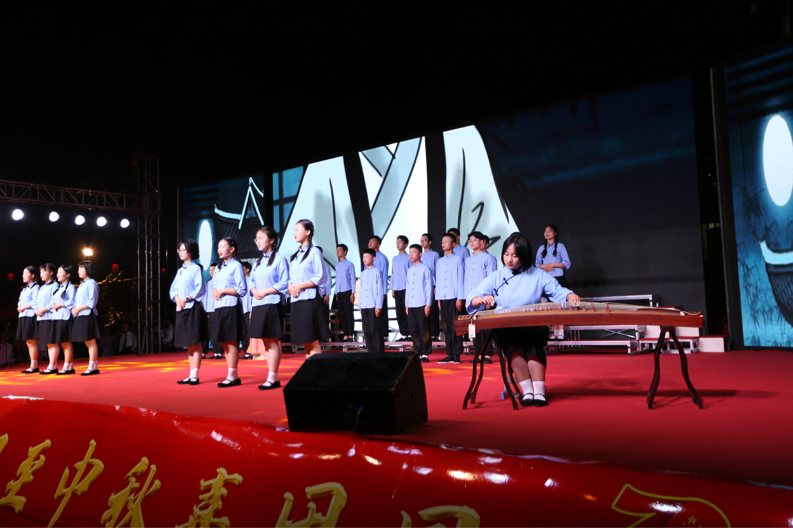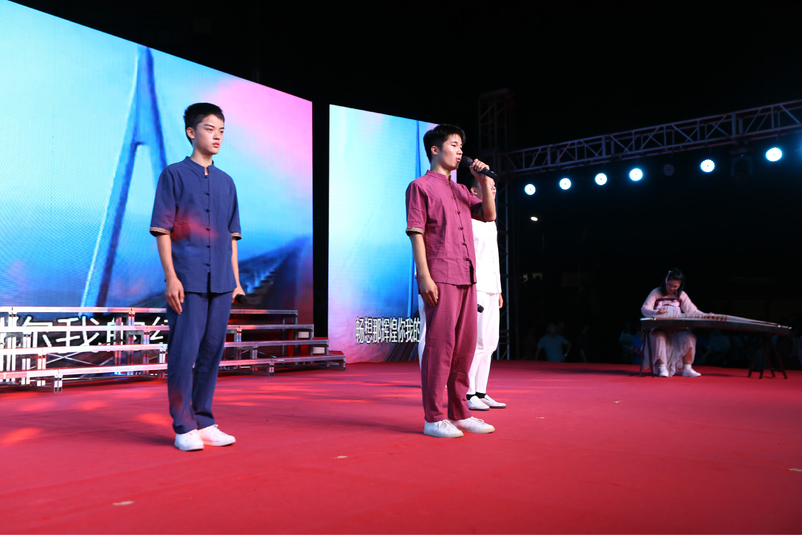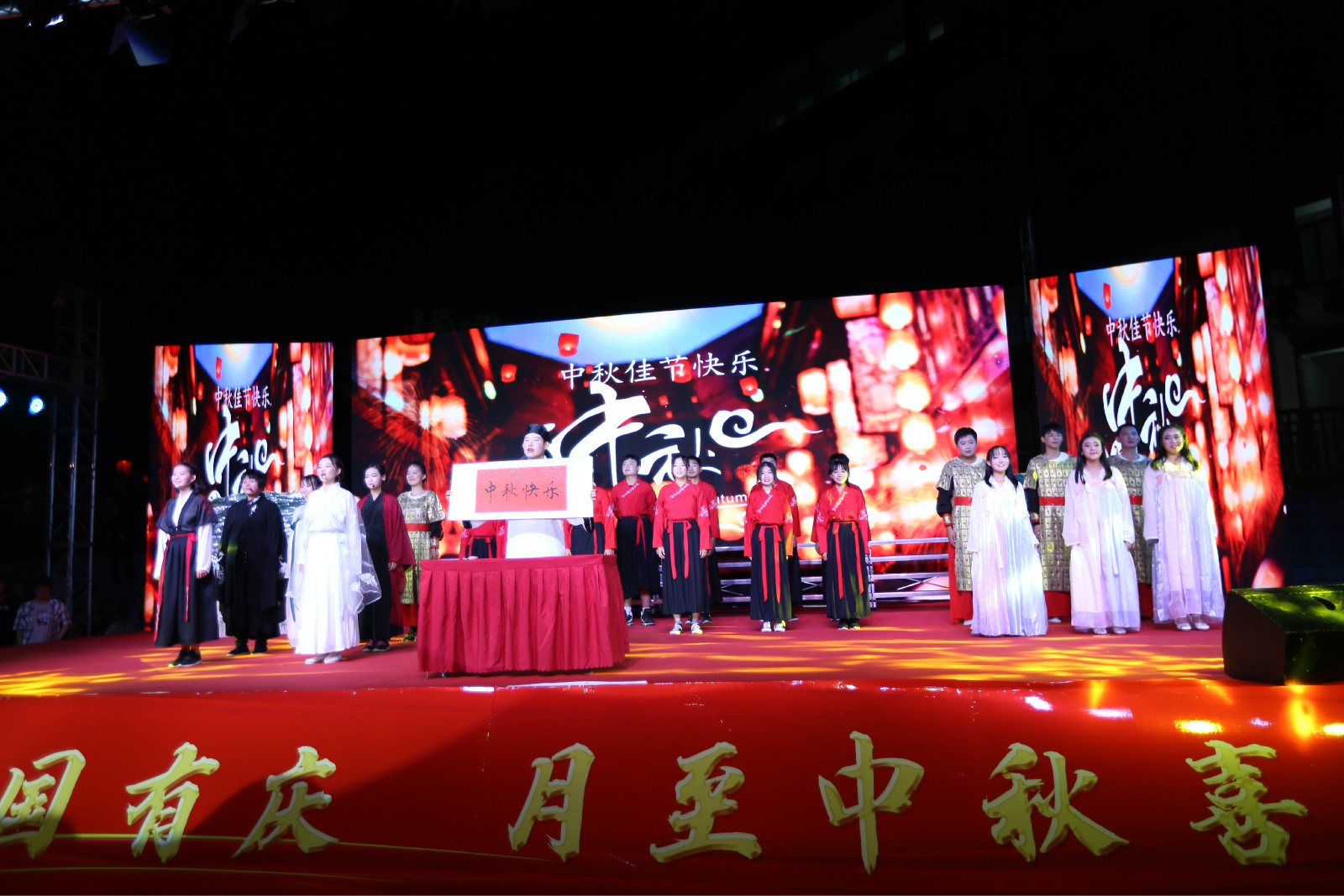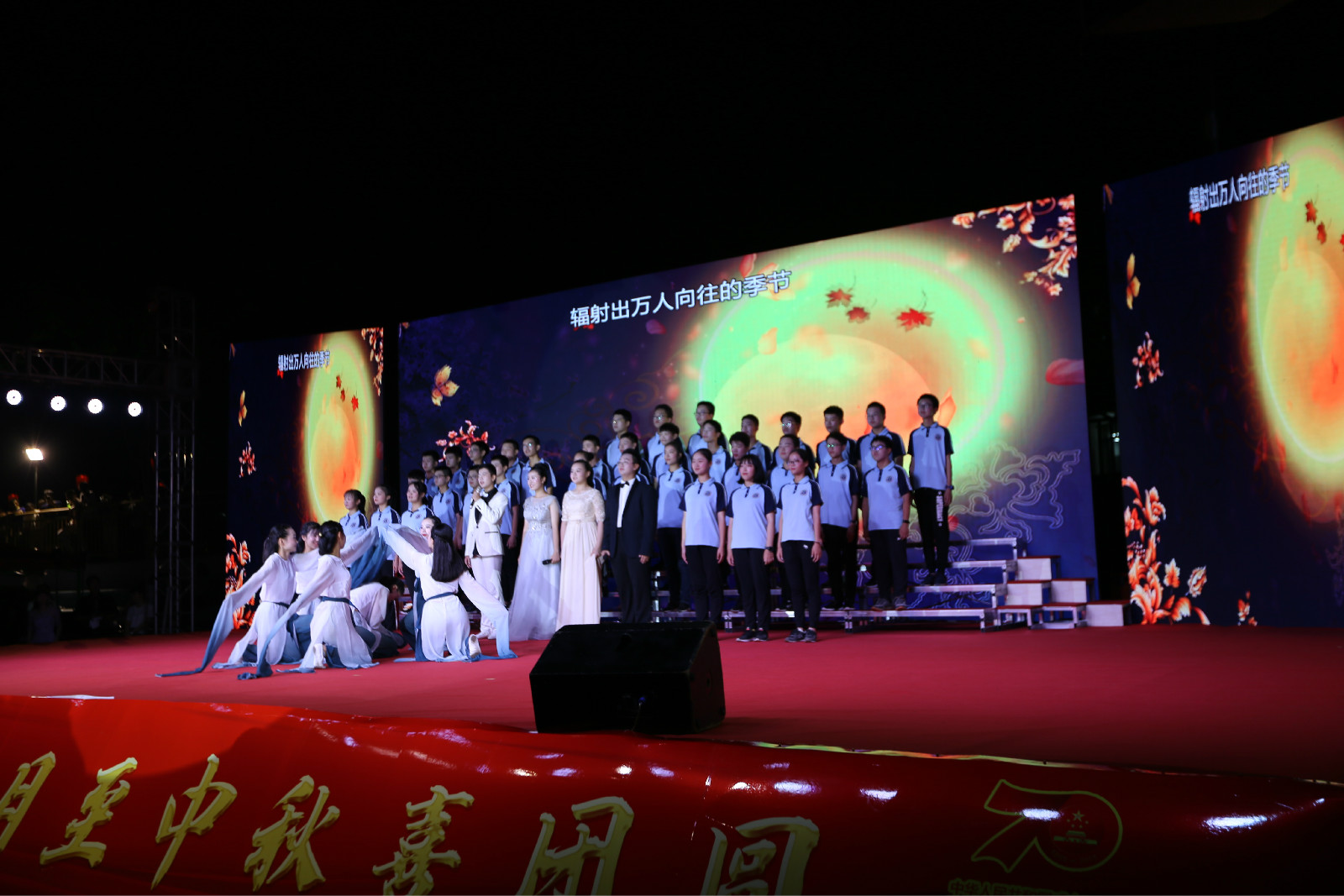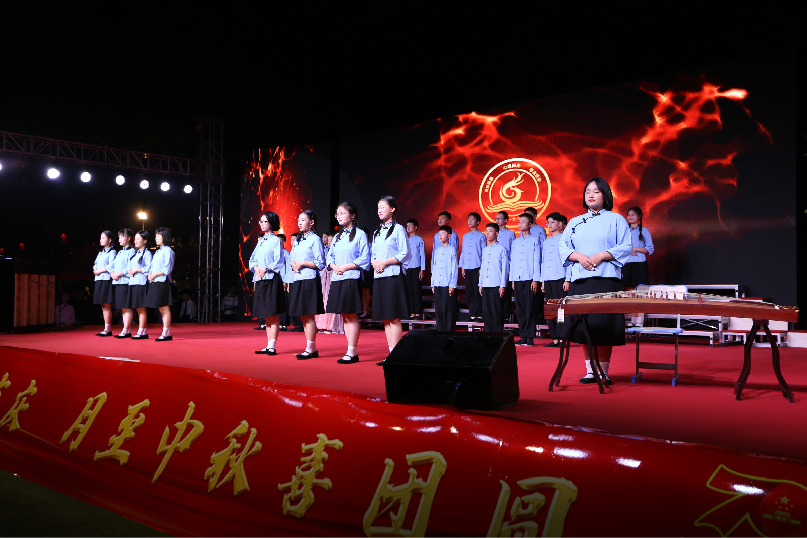 穿越百年,身著漢服溫婉如水的女子,一曲一調恰到好處,共同為大家呈現(xiàn)了一個個花好月圓、詩情畫意的美景中秋,詩會共分寄情明月、追月少年、祝福祖國三個篇章,本次詩會既傳統(tǒng)古典又結合不少現(xiàn)代元素,以“中秋”“詠月”“家國”為主要素材,以團圓、親情、溫暖為感情基調,每一個節(jié)目,都融入人們對團圓的渴望、對家的熱愛,讓節(jié)日的詩意與家的溫馨同啟,讓所有的美好在婉轉吟詠中紛至沓來,《金秋皓月》、《飛揚青春圓夢中國》、《月夜思故卿》等節(jié)目精彩紛呈,令人目不暇接,更讓現(xiàn)場同學感受到了濃濃的中秋氛圍。三個篇章既相互連貫,又相對獨立成篇,節(jié)目的最后,藝術組和語文組演繹的《我和我的祖國》,不僅讓在場觀眾感受到藝術之美,更體會到中國偉大時代的強音!