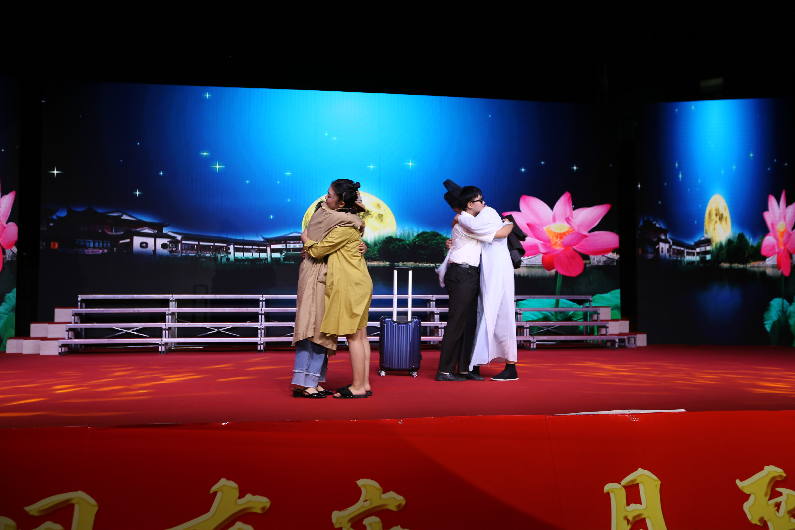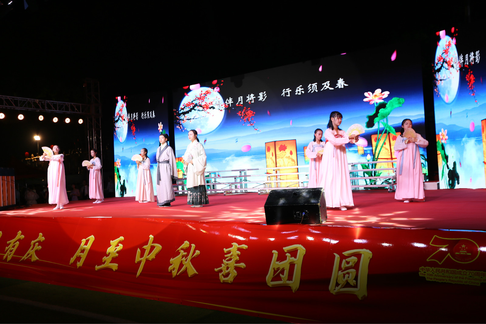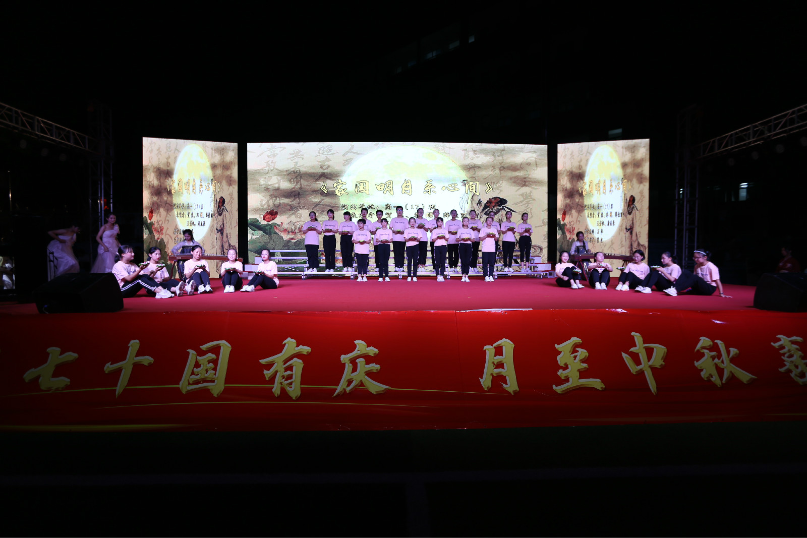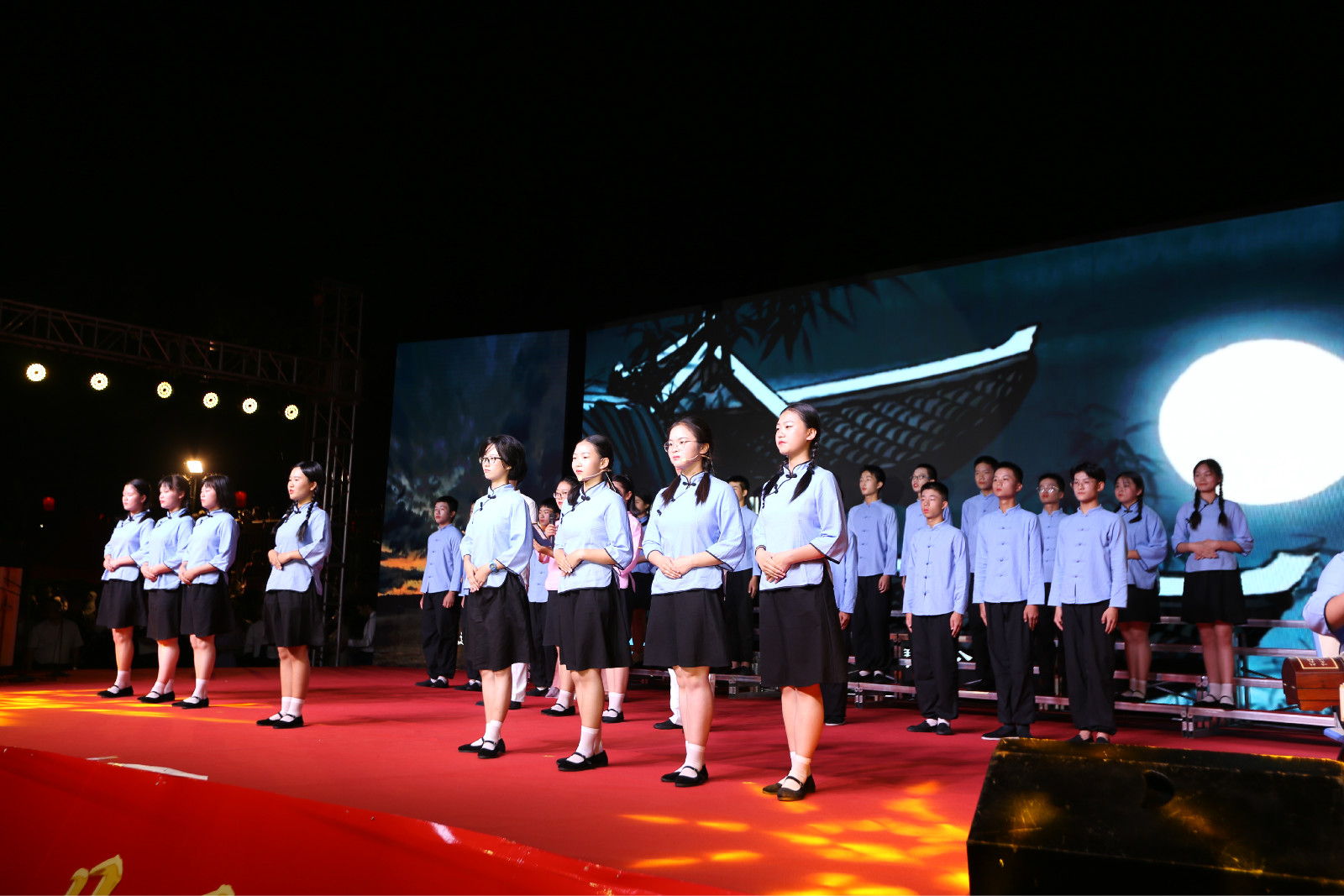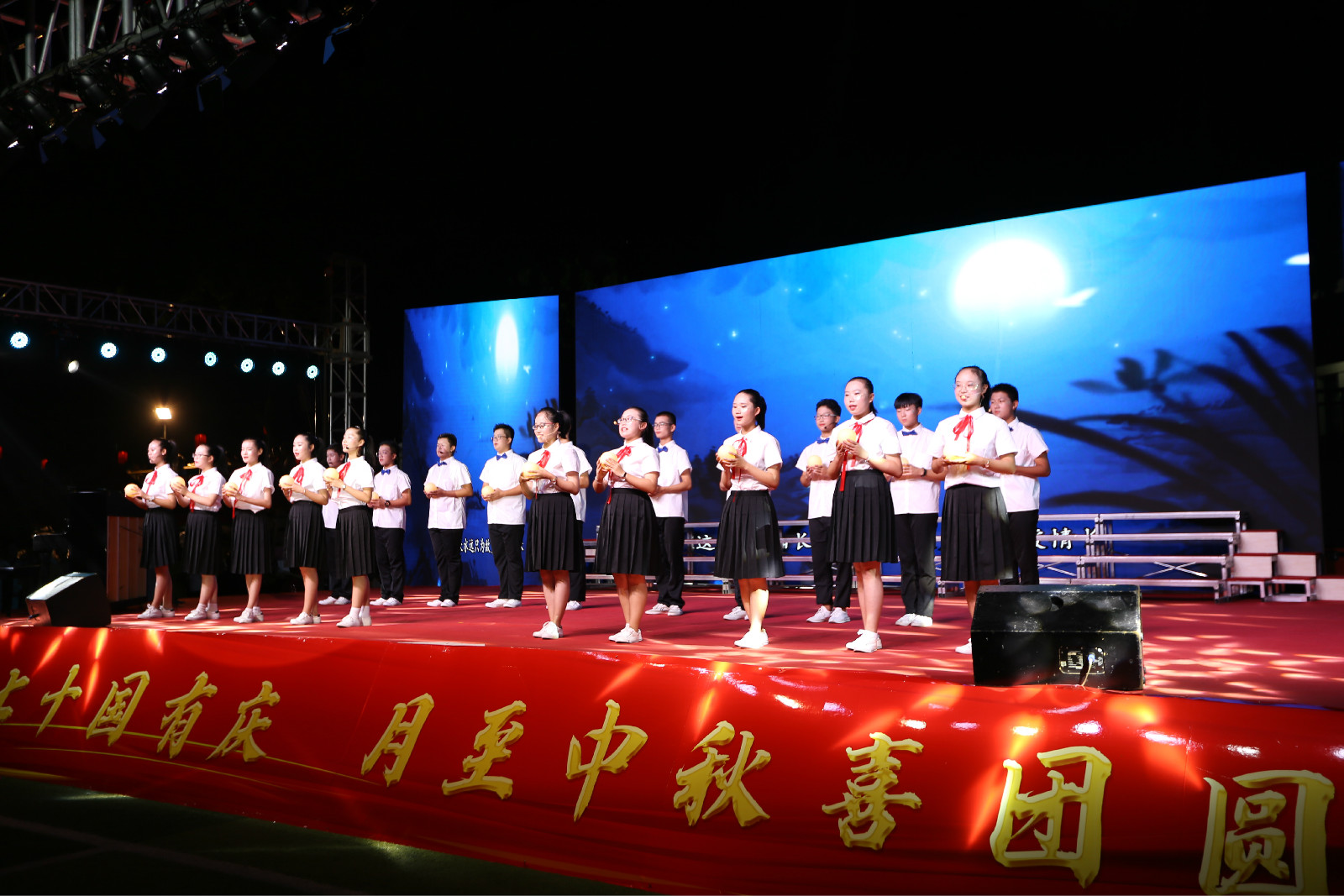 穿越百年,身著漢服溫婉如水的女子,一曲一調恰到好處,共同為大家呈現(xiàn)了一個個花好月圓、詩情畫意的美景中秋,詩會共分寄情明月、追月少年、祝福祖國三個篇章,本次詩會既傳統(tǒng)古典又結合不少現(xiàn)代元素,以“中秋”“詠月”“家國”為主要素材,以團圓、親情、溫暖為感情基調,每一個節(jié)目,都融入人們對團圓的渴望、對家的熱愛,讓節(jié)日的詩意與家的溫馨同啟,讓所有的美好在婉轉吟詠中紛至沓來,《金秋皓月》、《飛揚青春圓夢中國》、《月夜思故卿》等節(jié)目精彩紛呈,令人目不暇接,更讓現(xiàn)場同學感受到了濃濃的中秋氛圍。三個篇章既相互連貫,又相對獨立成篇,節(jié)目的最后,藝術組和語文組演繹的《我和我的祖國》,不僅讓在場觀眾感受到藝術之美,更體會到中國偉大時代的強音!