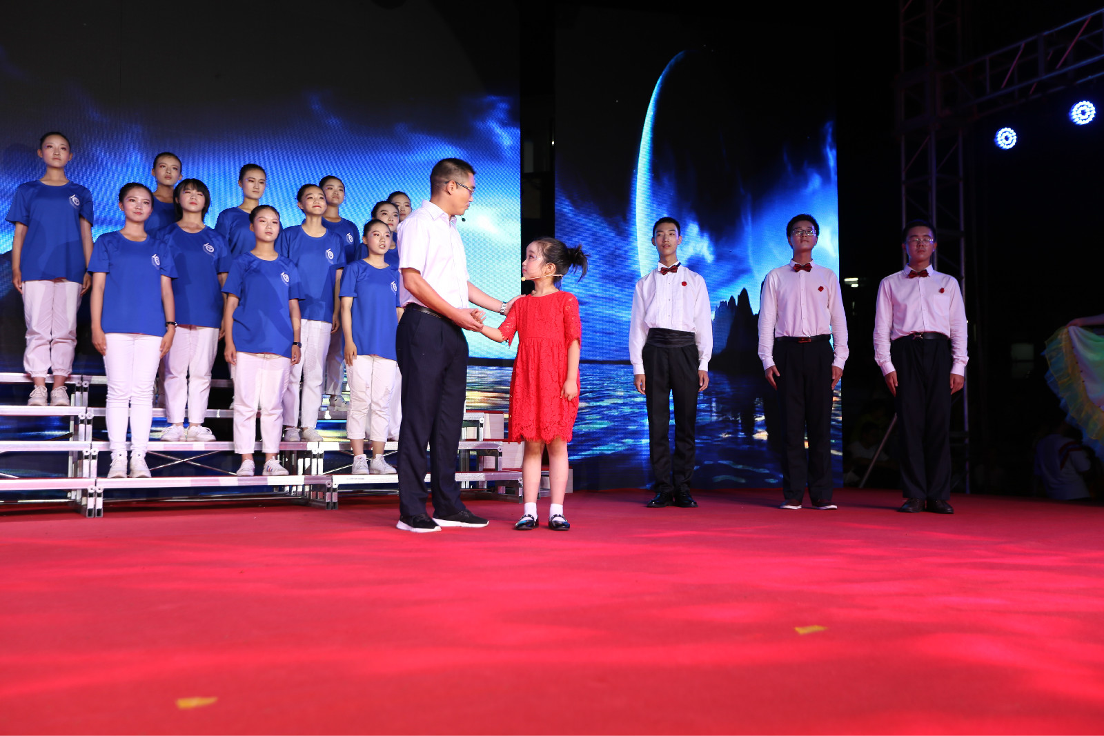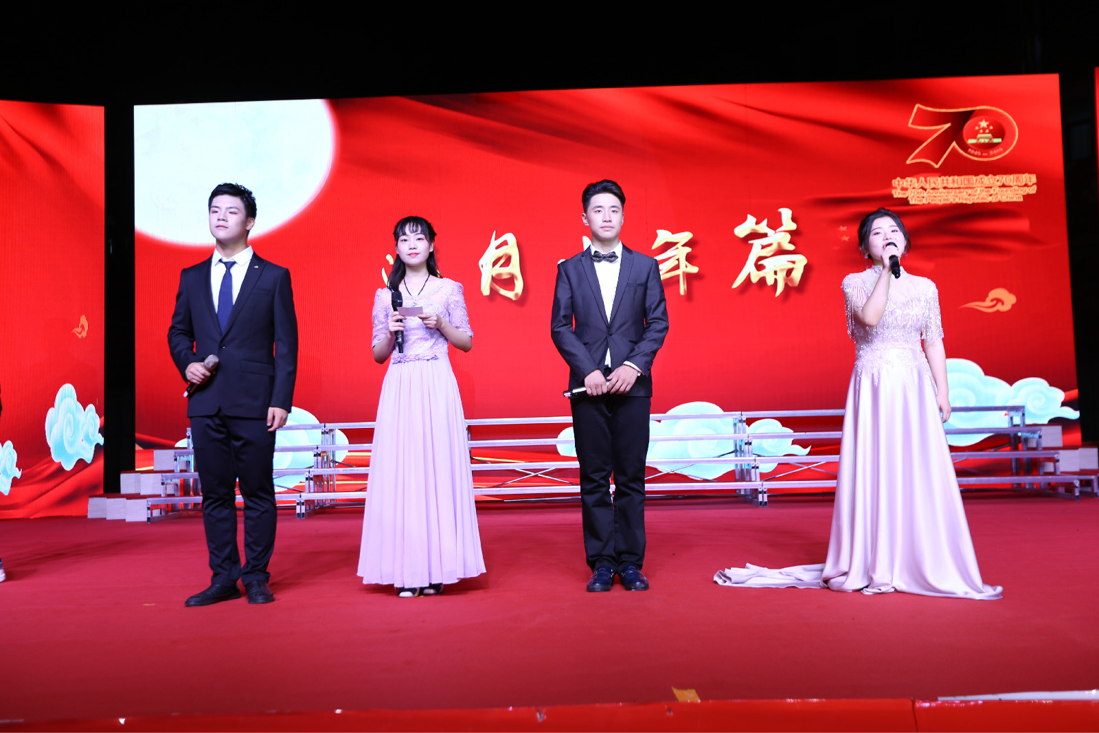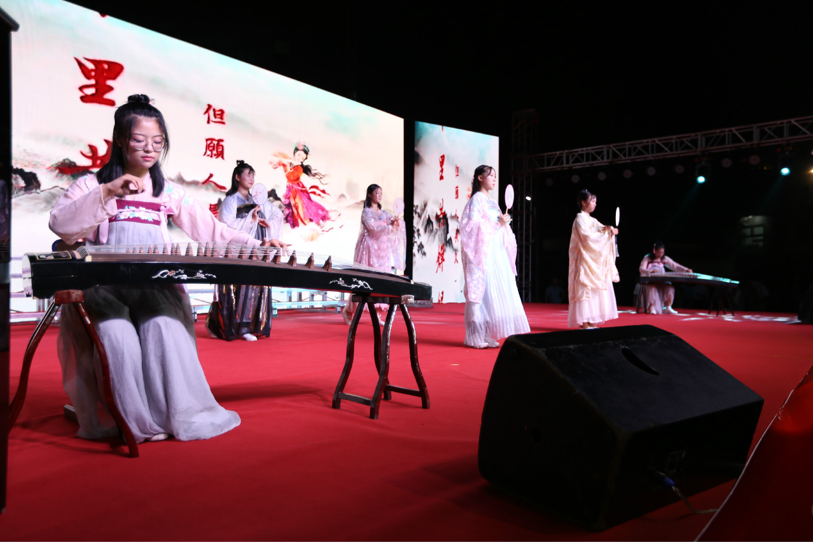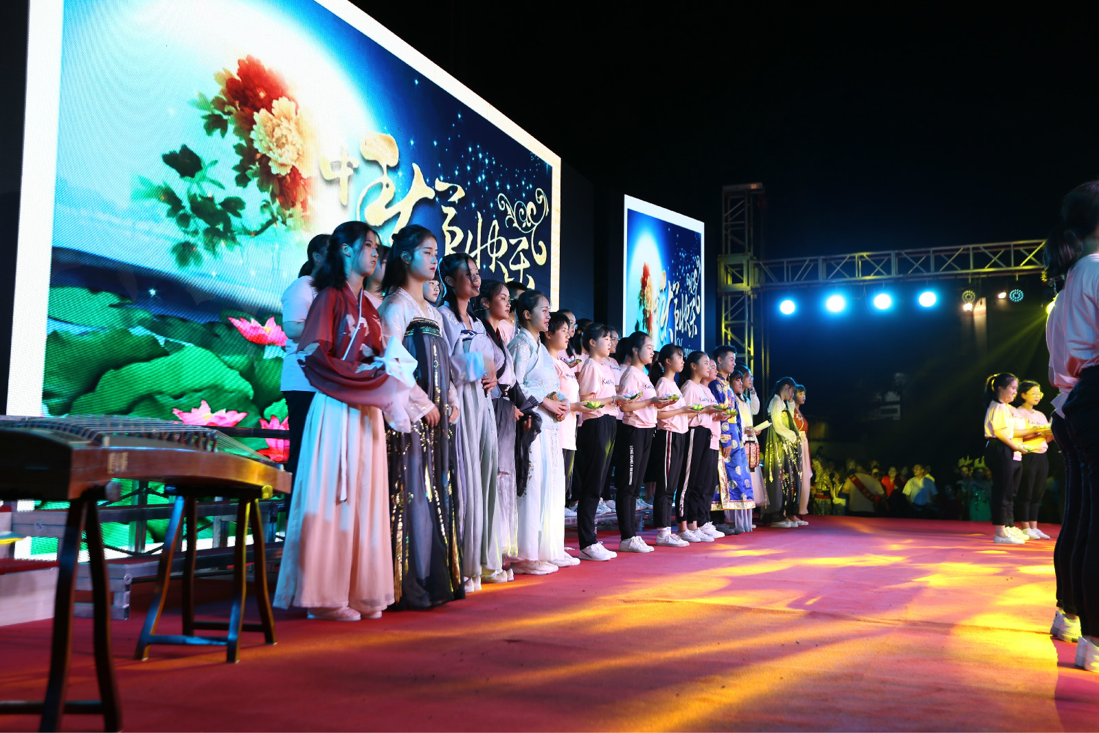 穿越百年,身著漢服溫婉如水的女子,一曲一調恰到好處,共同為大家呈現(xiàn)了一個個花好月圓、詩情畫意的美景中秋,詩會共分寄情明月、追月少年、祝福祖國三個篇章,本次詩會既傳統(tǒng)古典又結合不少現(xiàn)代元素,以“中秋”“詠月”“家國”為主要素材,以團圓、親情、溫暖為感情基調,每一個節(jié)目,都融入人們對團圓的渴望、對家的熱愛,讓節(jié)日的詩意與家的溫馨同啟,讓所有的美好在婉轉吟詠中紛至沓來,《金秋皓月》、《飛揚青春圓夢中國》、《月夜思故卿》等節(jié)目精彩紛呈,令人目不暇接,更讓現(xiàn)場同學感受到了濃濃的中秋氛圍。三個篇章既相互連貫,又相對獨立成篇,節(jié)目的最后,藝術組和語文組演繹的《我和我的祖國》,不僅讓在場觀眾感受到藝術之美,更體會到中國偉大時代的強音!