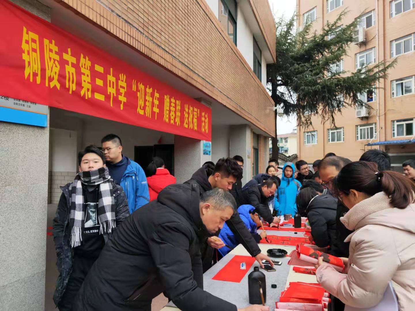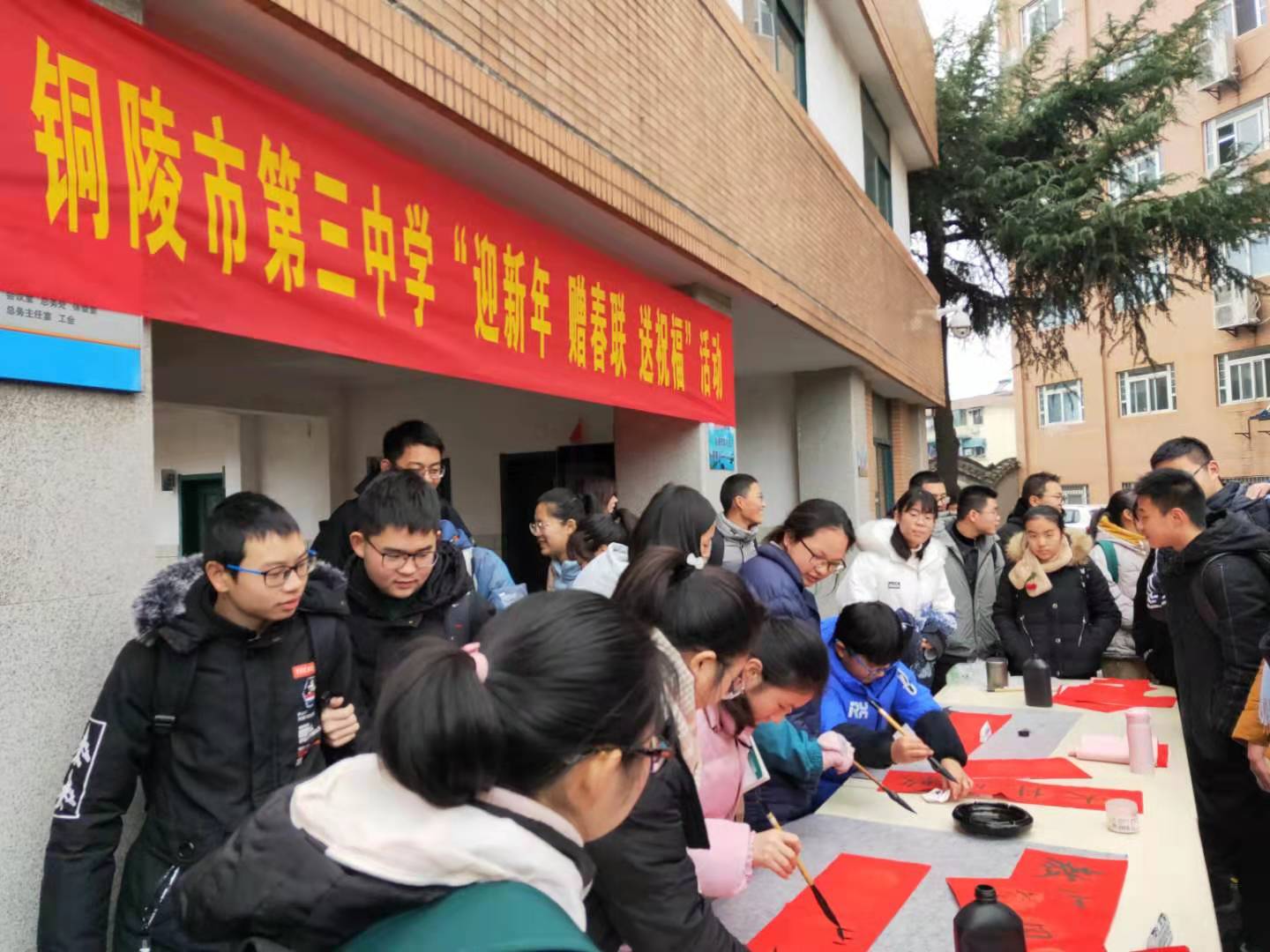 為迎接2020年新春佳節(jié)的到來,弘揚中華民族優(yōu)秀傳統(tǒng)文化,豐富教職工的精神文化生活,2020年元月18日上午,校工會在二號行政樓大廳前舉行了銅陵市第三中學(xué)“迎新年、贈春聯(lián)、送祝福”活動。