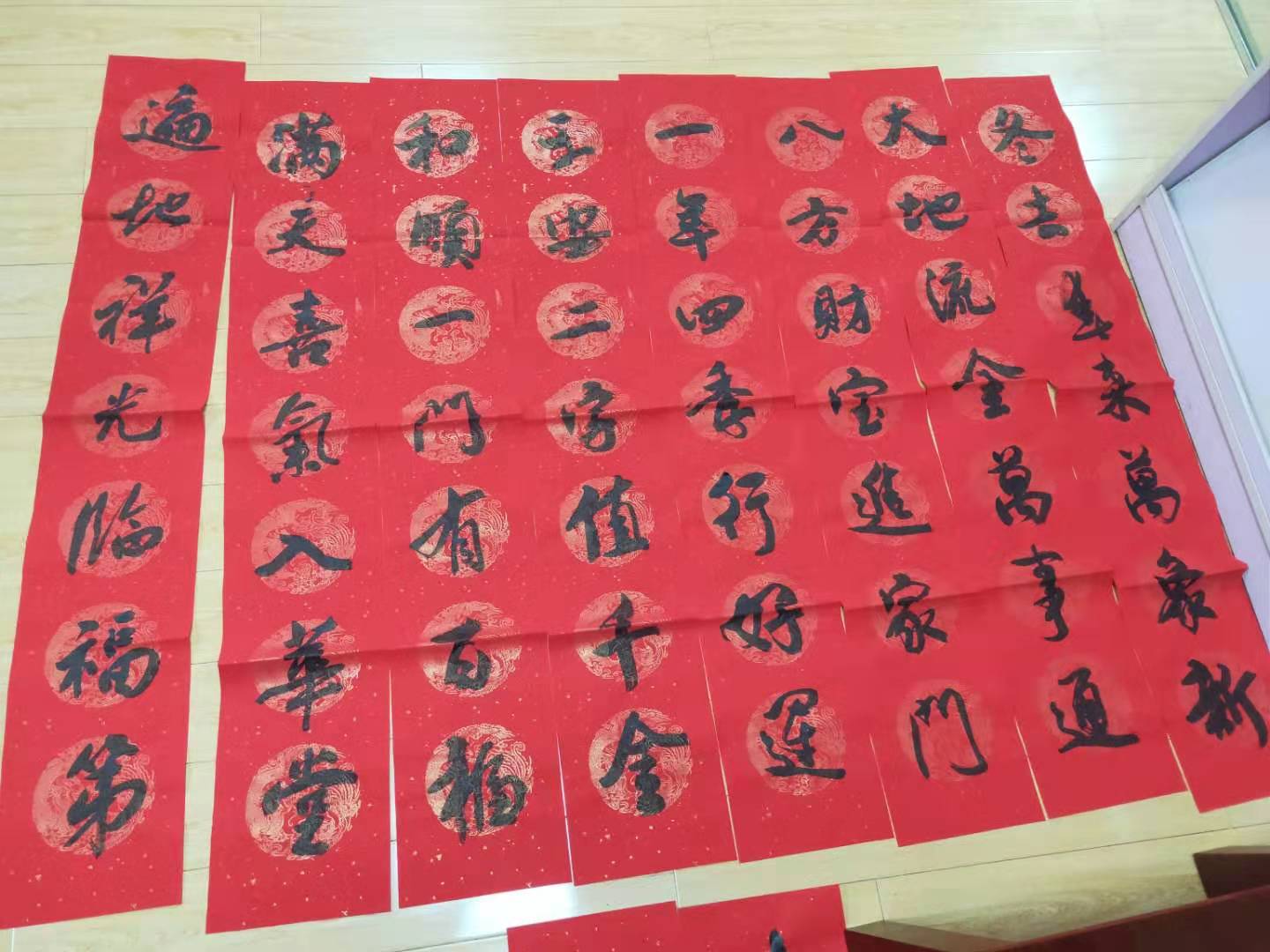 大家用一幅幅蘊含著中國傳統(tǒng)文化書法魅力的春聯(lián),表達(dá)了對美好生活的向往,為教職工送上了真摯的新春祝福。
