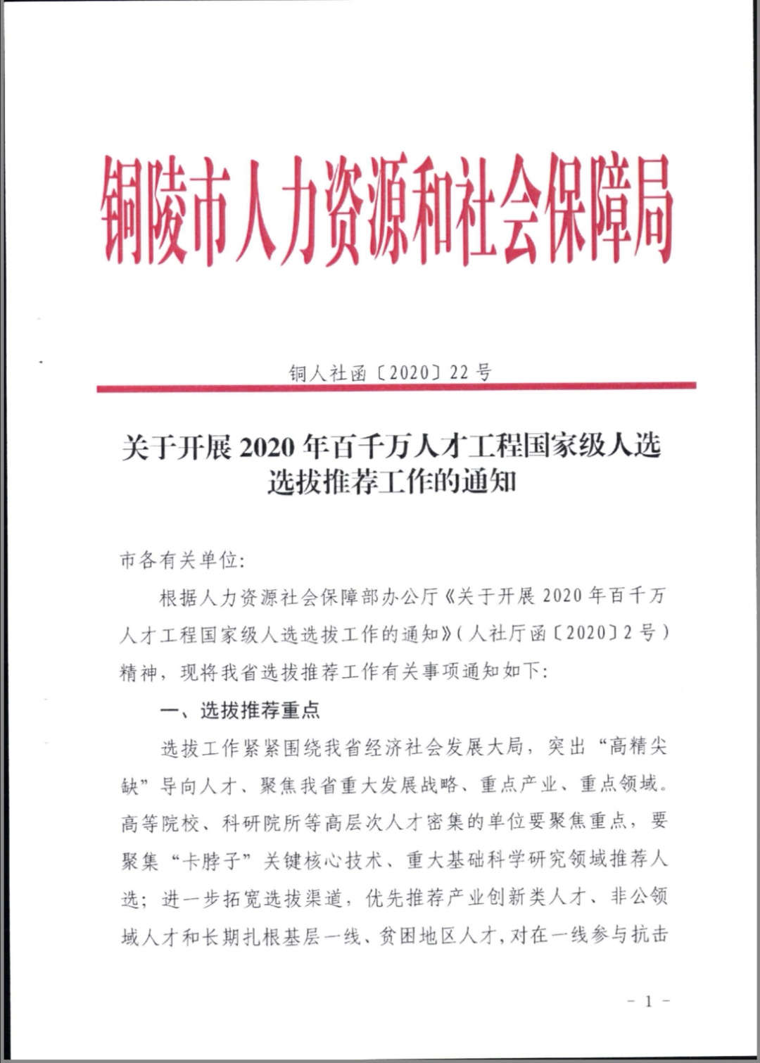 剛剛接到市人社局專技處通知,百千萬人才人社部四月中旬就開始評選,請各單位務(wù)必在3月27日前將申報材料交組織人事科,逾期不予受理。請按文件要求上報材料,并提供相關(guān)證明材料PDF版文件。