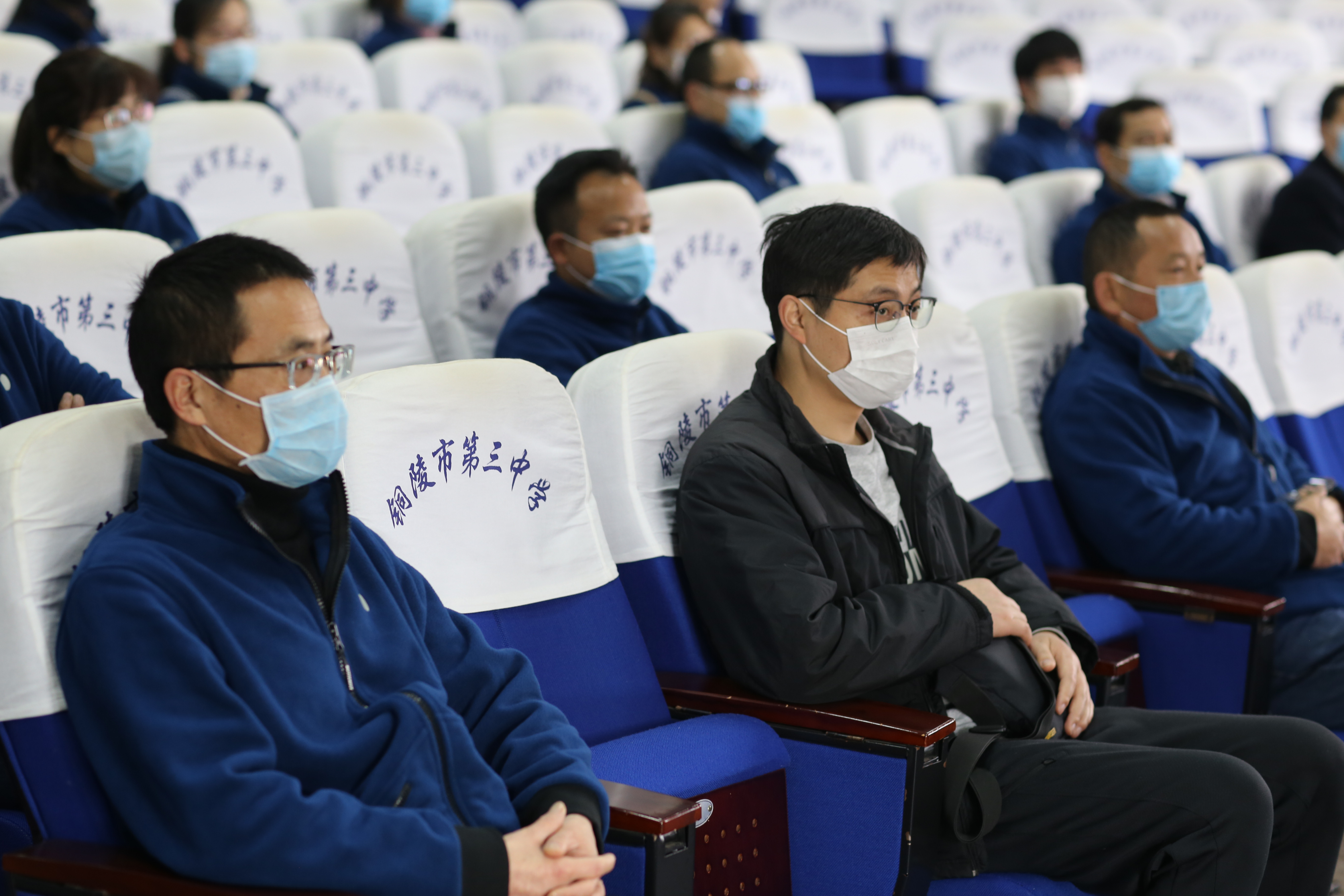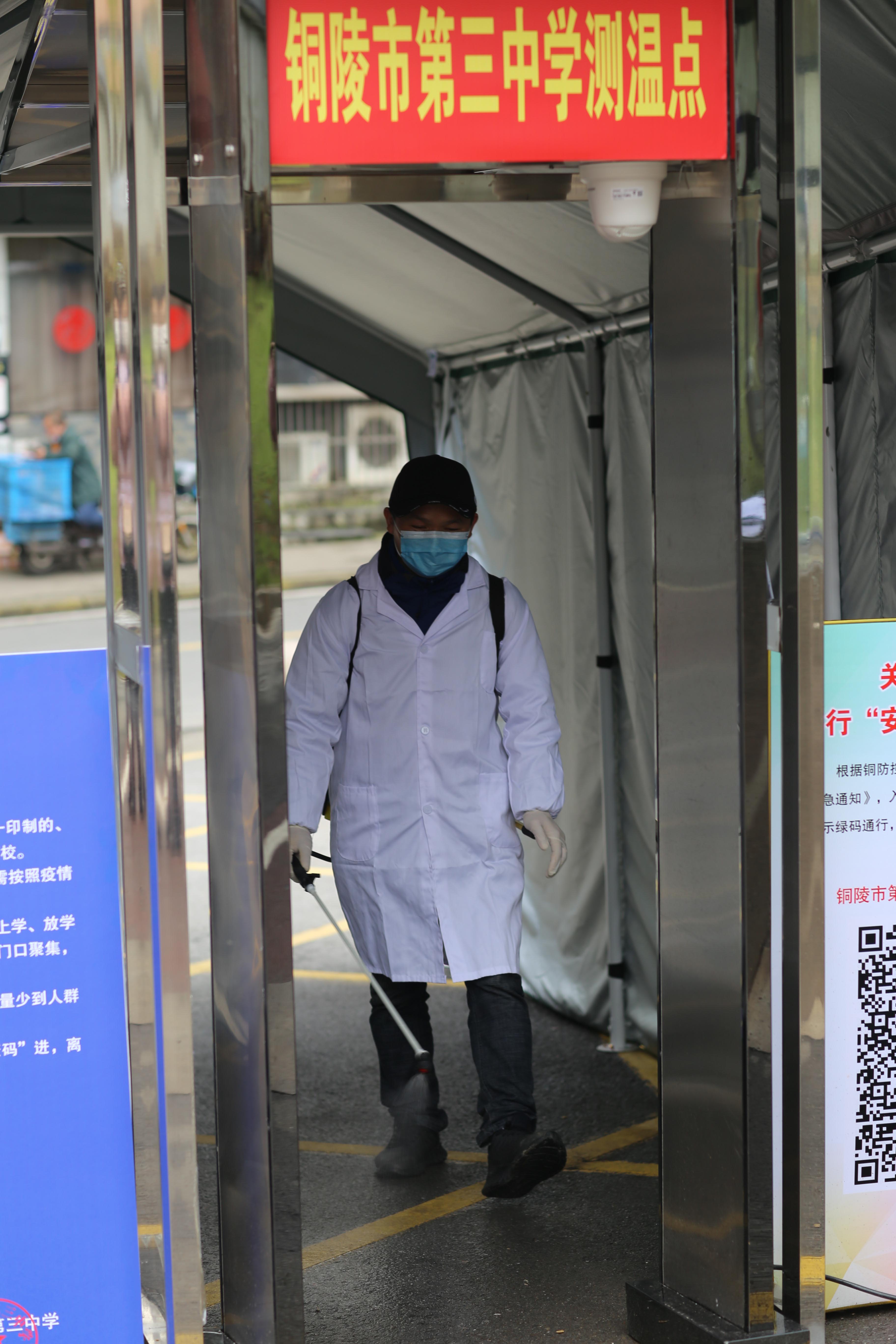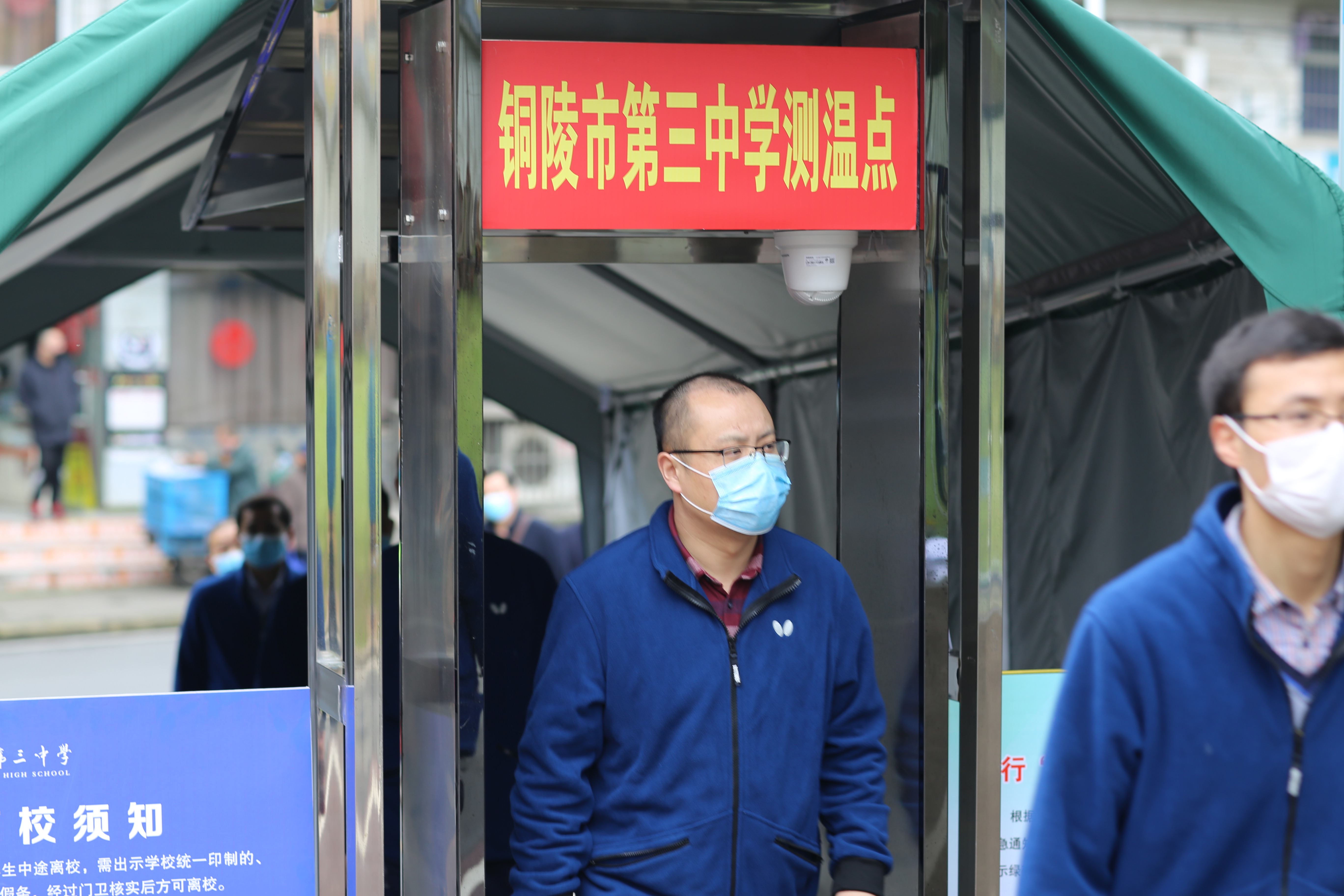 本校訊 距離間隔1米的“學(xué)生們”和“老師們”通過(guò)設(shè)置在校門(mén)口的4條通道,逐一測(cè)量體溫……這是4月1日下午3點(diǎn),銅陵市第三中學(xué)開(kāi)學(xué)應(yīng)急實(shí)戰(zhàn)演練的場(chǎng)景。當(dāng)天下午,銅陵三中黨委書(shū)記、校長(zhǎng)、校疫情應(yīng)急演練指揮部總指揮鐘士標(biāo),副總指揮葉葉、張國(guó)榮、張尤俊,學(xué)校各處室部門(mén),年級(jí)部及全體班主任,媒體記者等100余人參加。省教育廳和市局相關(guān)領(lǐng)導(dǎo)和工作人員現(xiàn)場(chǎng)觀(guān)摩。