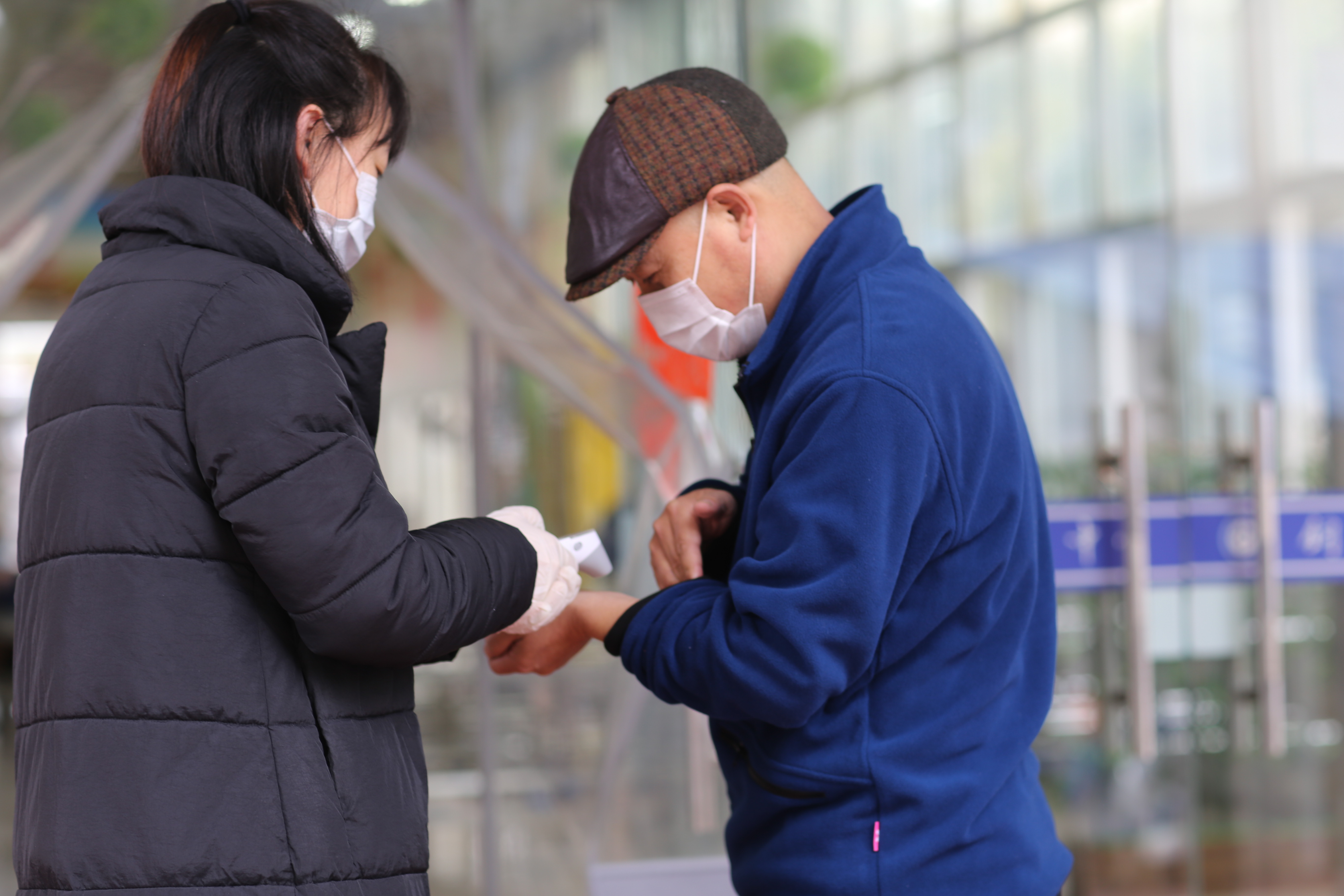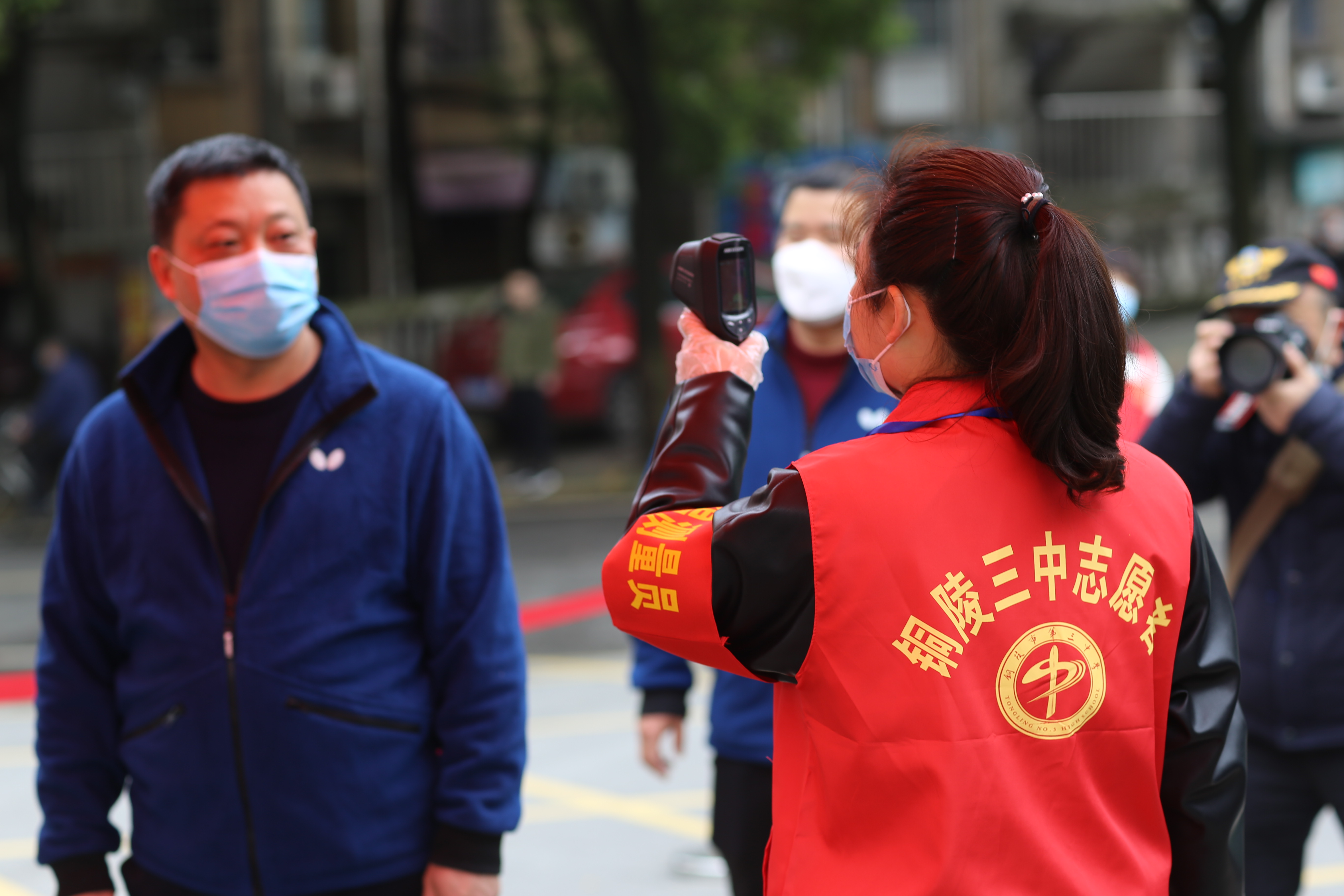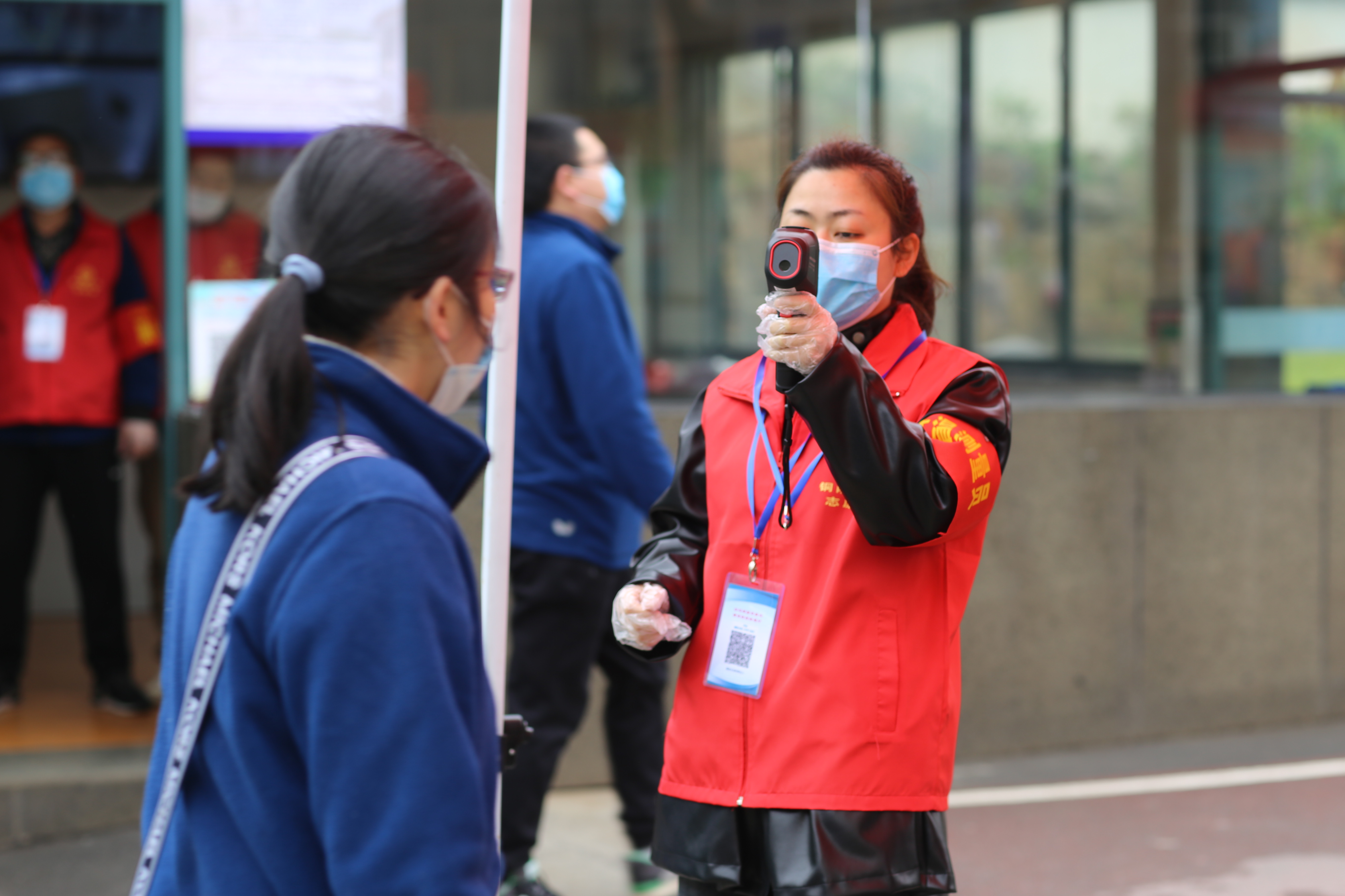 志愿者在現(xiàn)場(chǎng)測(cè)溫