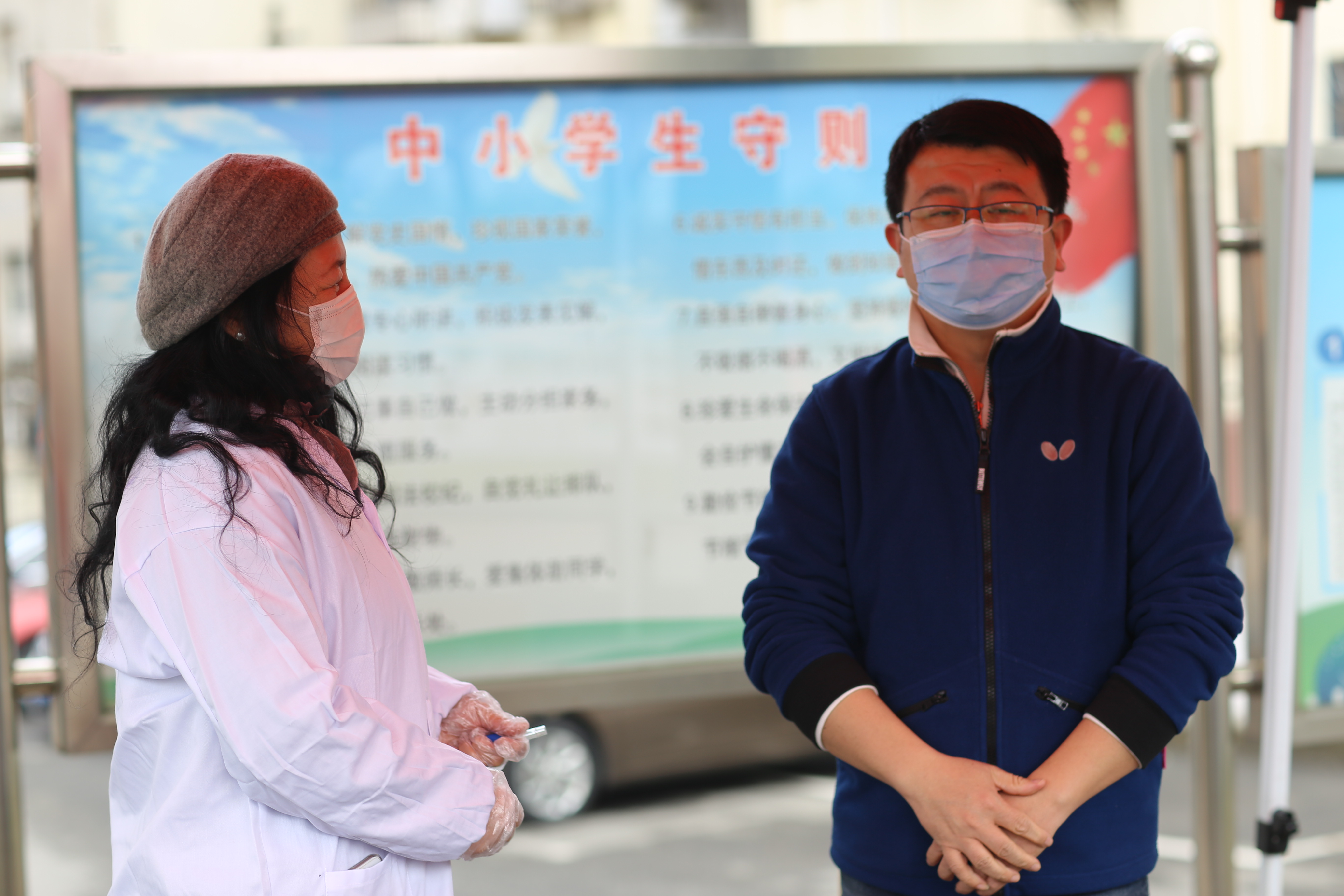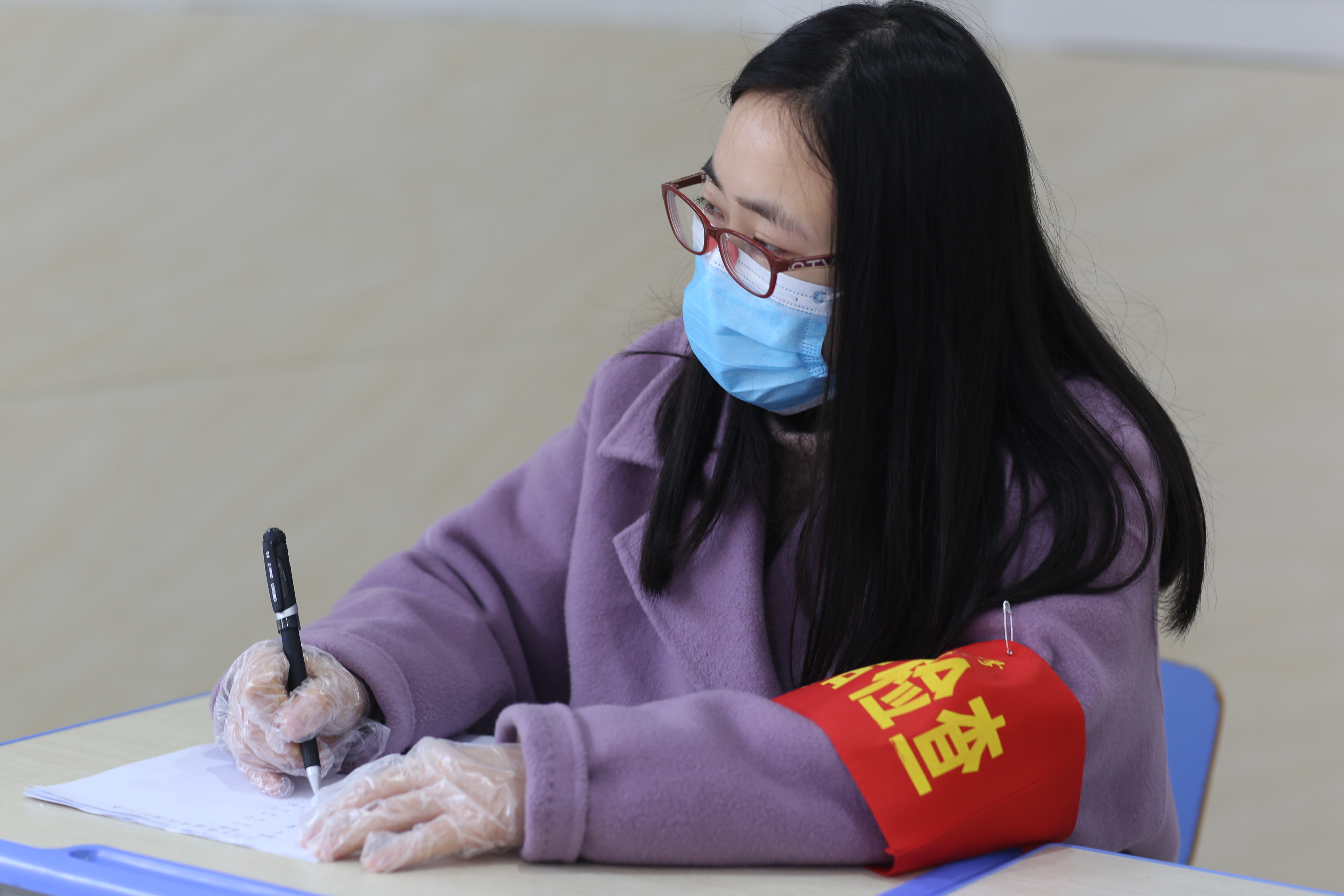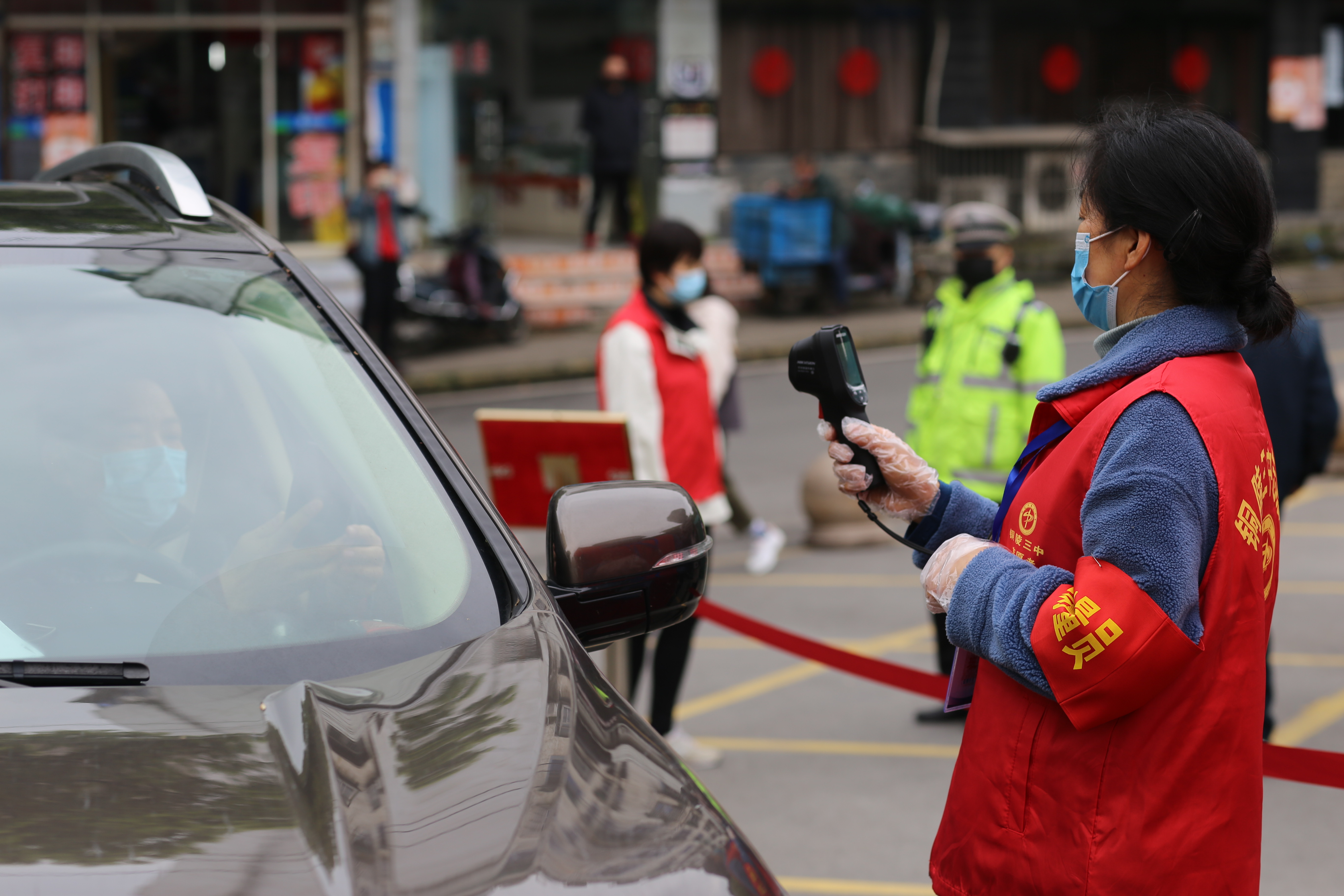 志愿者在現(xiàn)場(chǎng)測(cè)溫