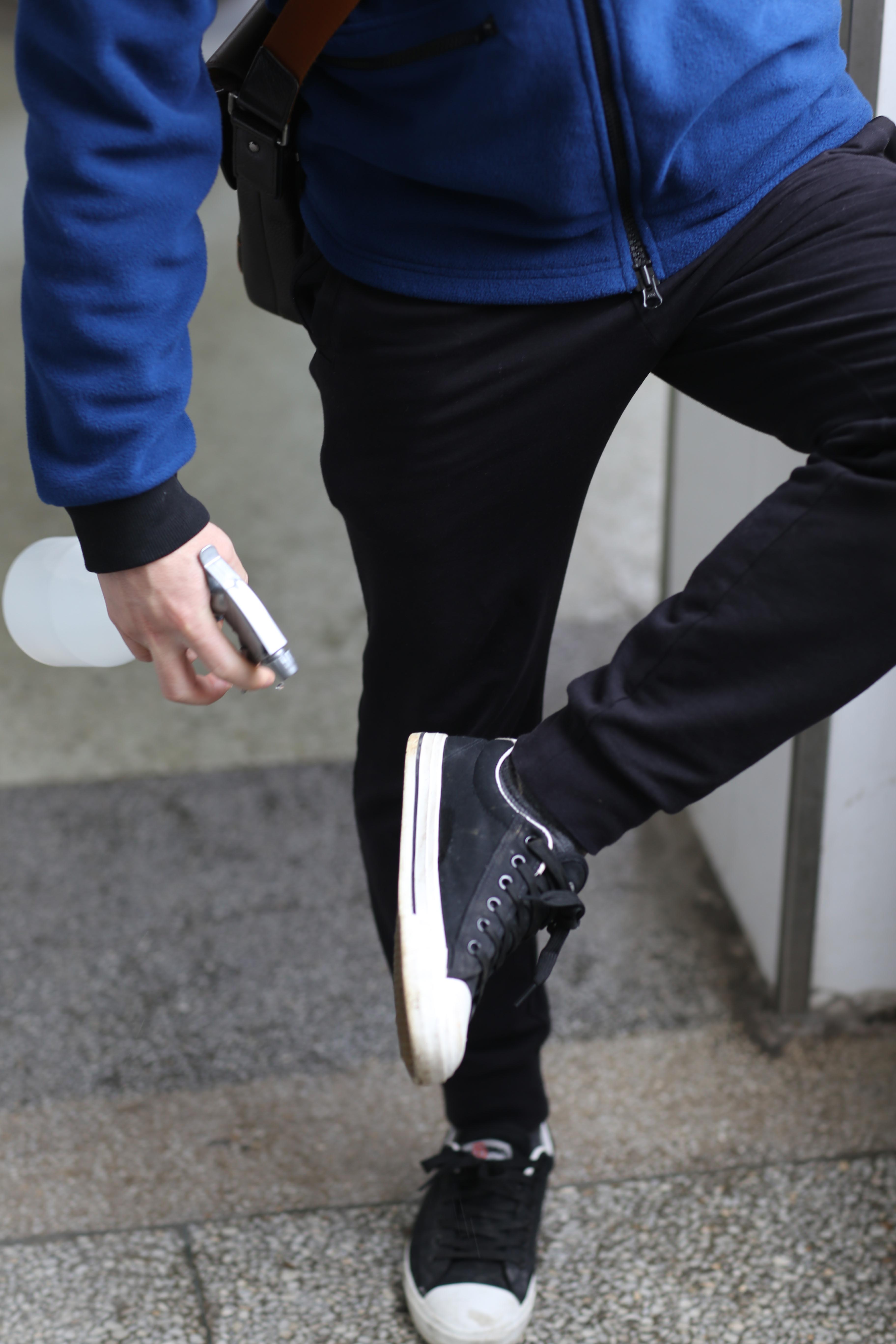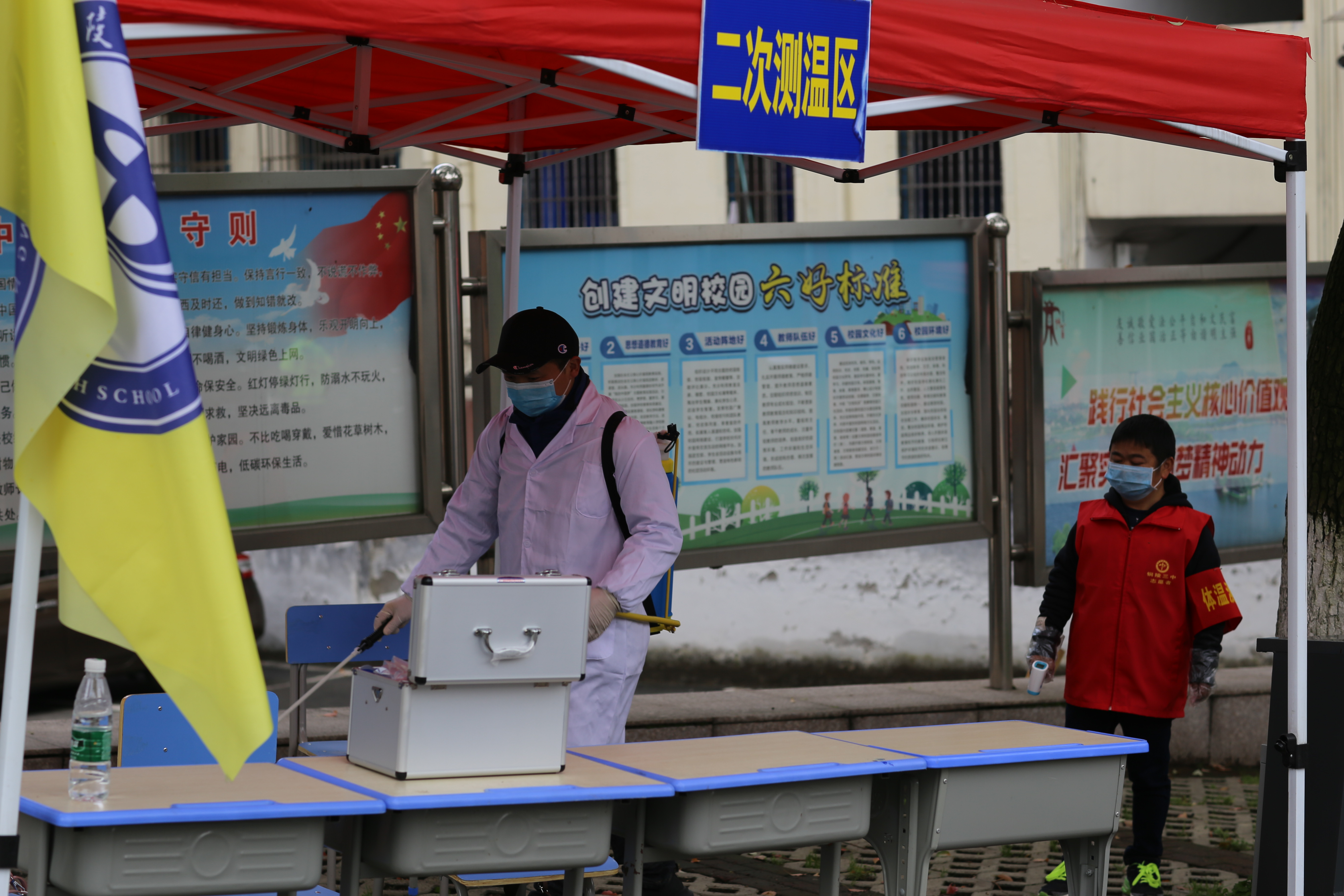 同時(shí),校門(mén)口測(cè)溫區(qū)也進(jìn)行消殺