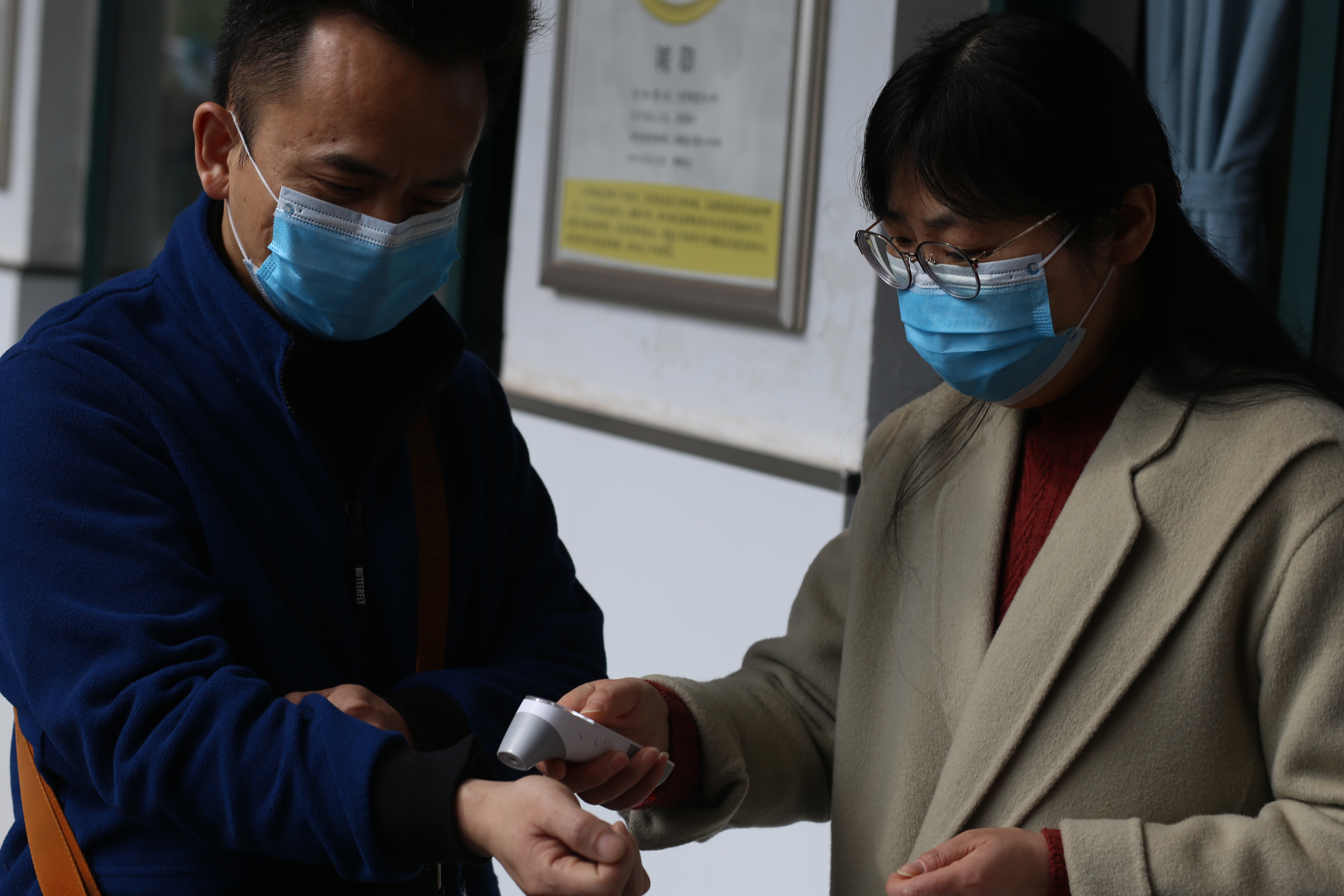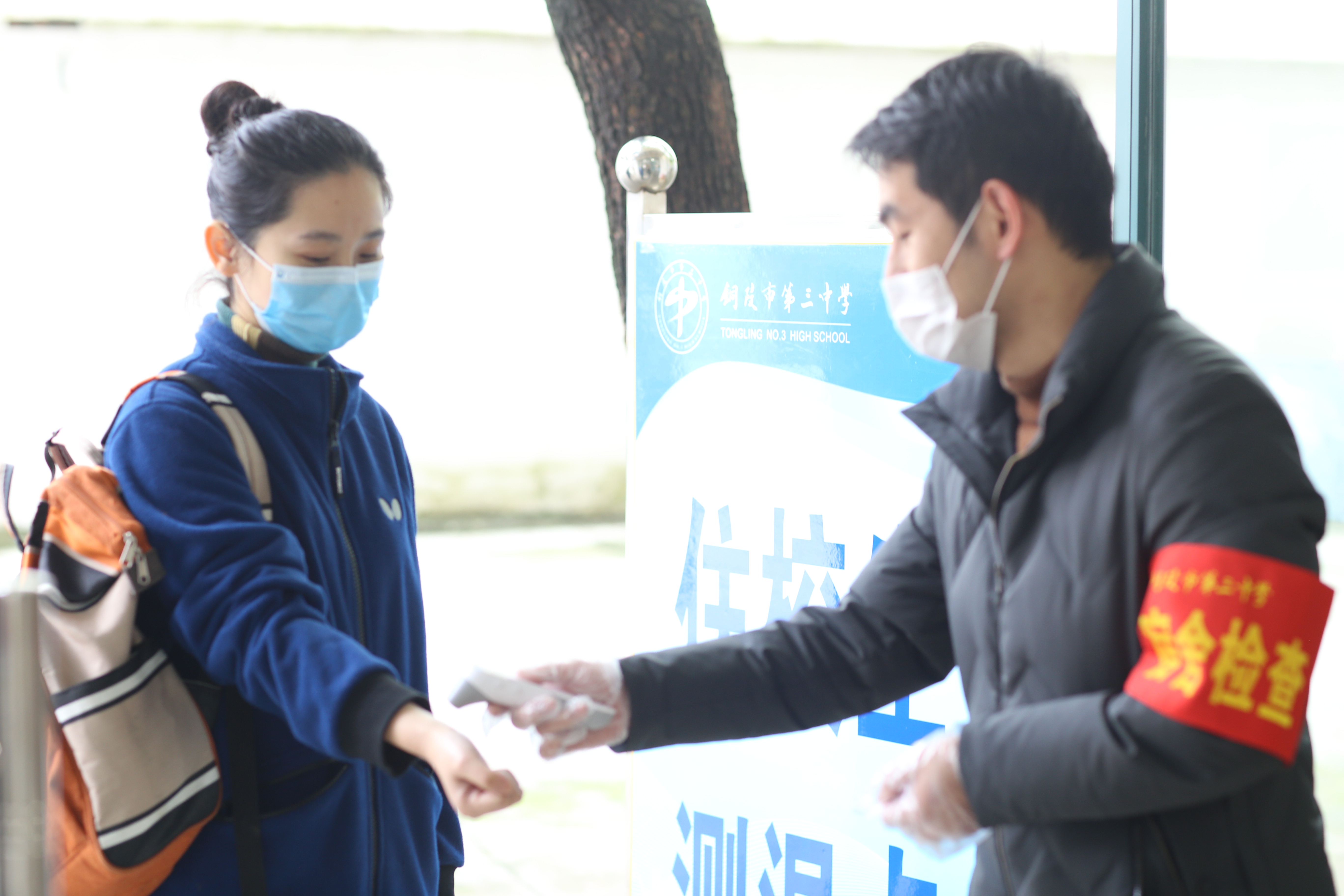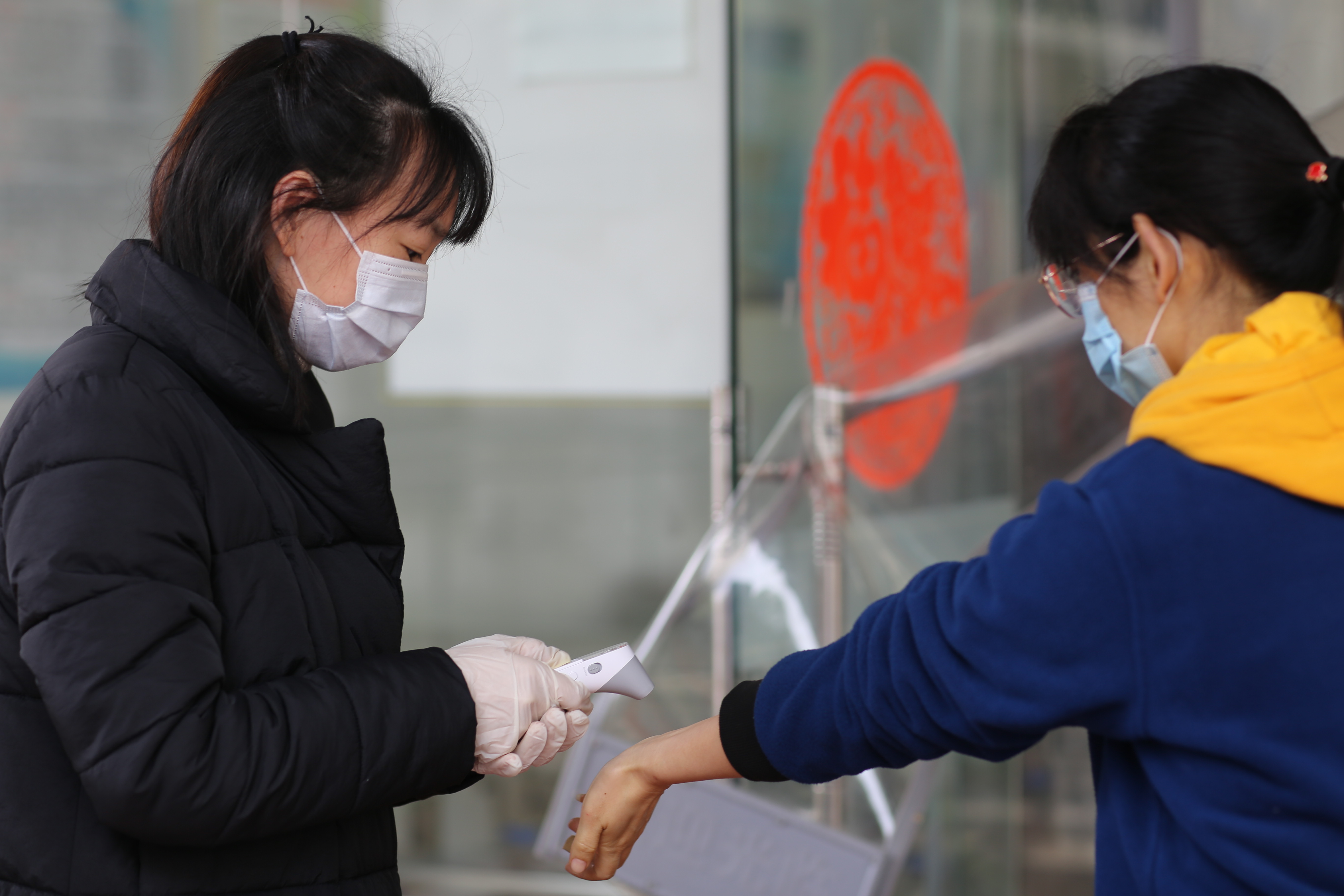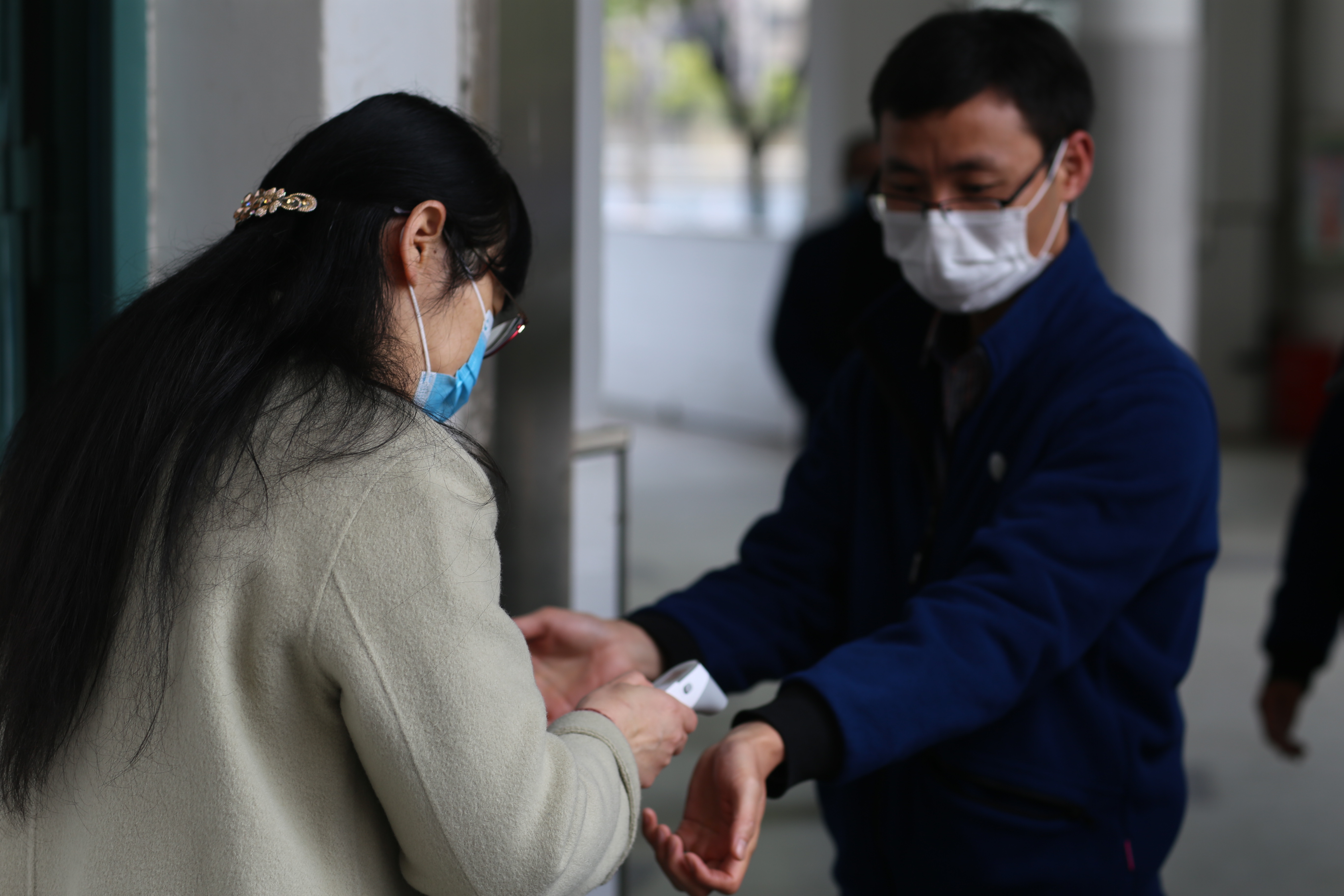 所有進(jìn)入校園人員無(wú)一例外進(jìn)行體溫檢測(cè)