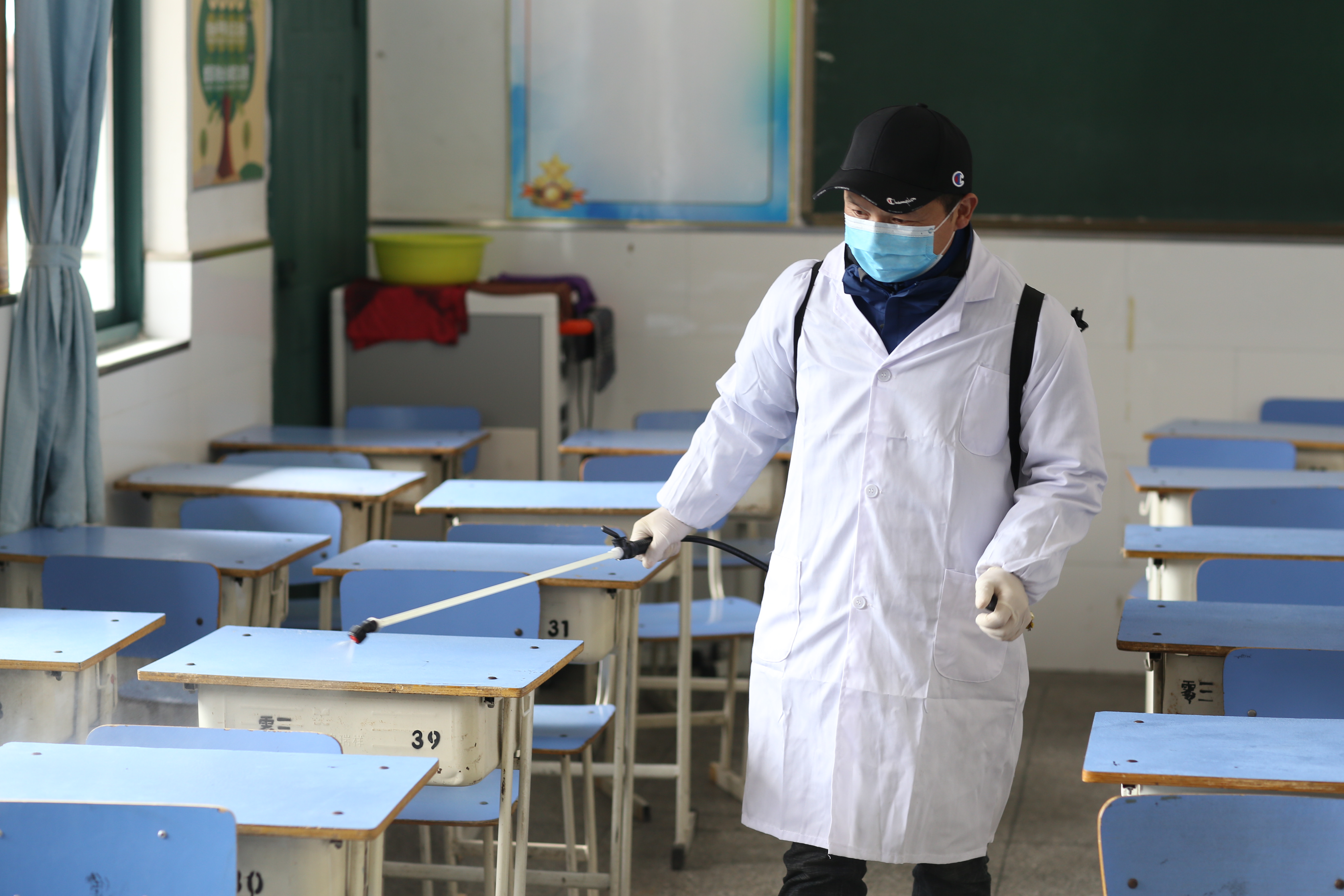 學(xué)生撤離本班級(jí)教室后,進(jìn)行消殺處理