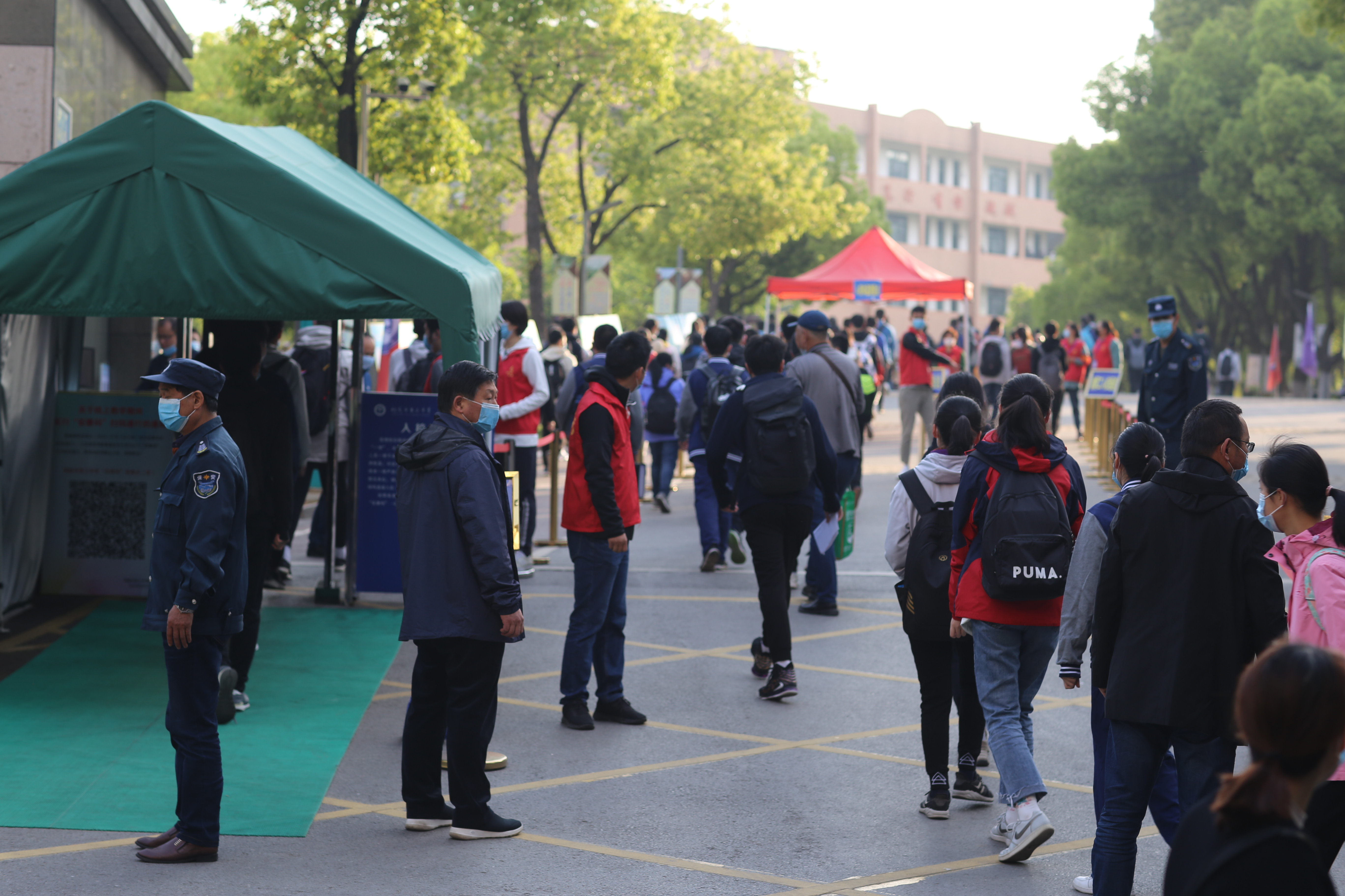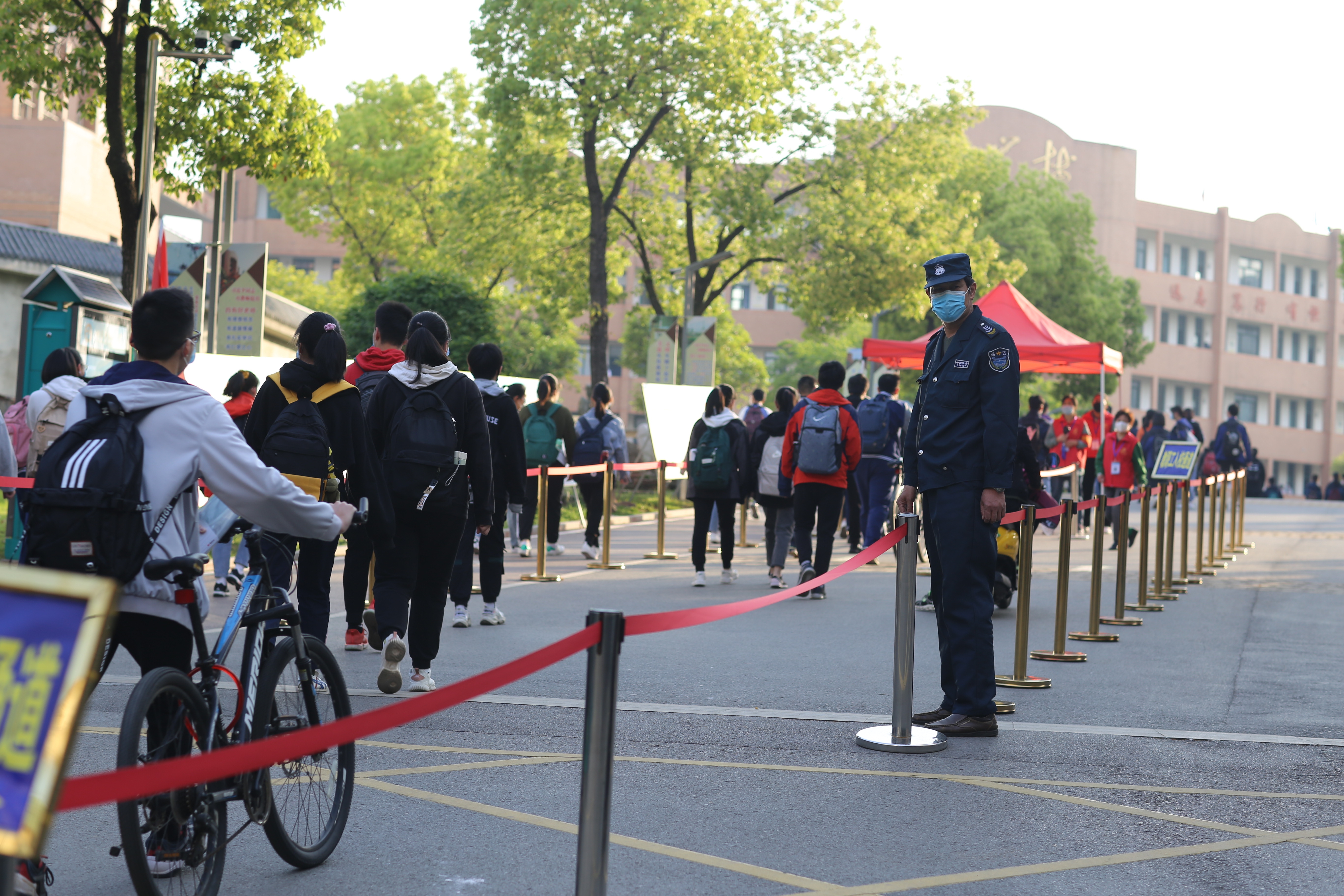 學(xué)校保衛(wèi)人員也在維護(hù)秩序,