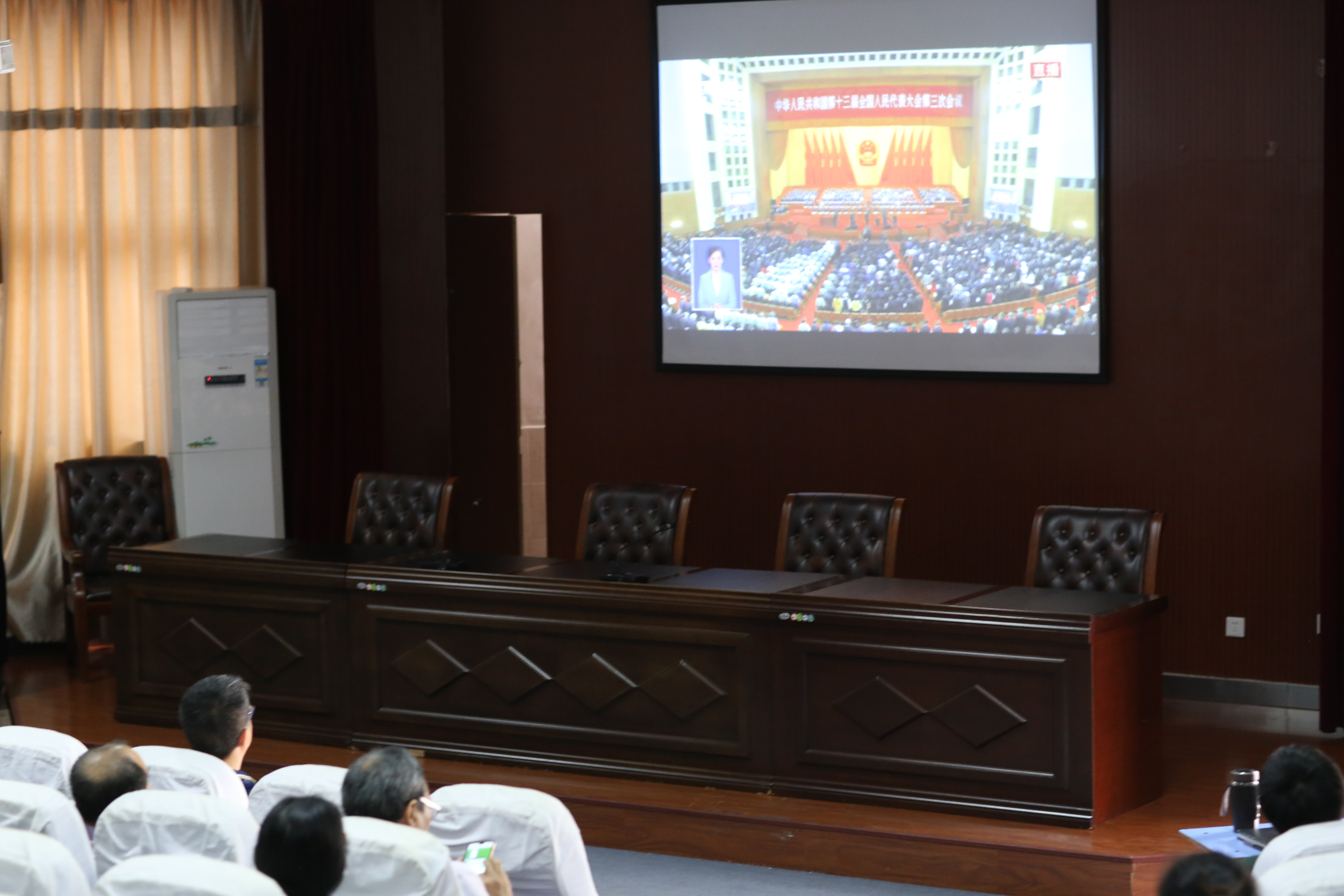 本校訊 5月22日上午9時(shí),第十三屆全國(guó)人民代表大會(huì)第三次會(huì)議在人民大會(huì)堂開(kāi)幕,習(xí)近平等黨和國(guó)家領(lǐng)導(dǎo)人出席,會(huì)議聽(tīng)取國(guó)務(wù)院總理李克強(qiáng)關(guān)于政府工作的報(bào)告,我校組織教職工在多功能廳現(xiàn)場(chǎng)收看。