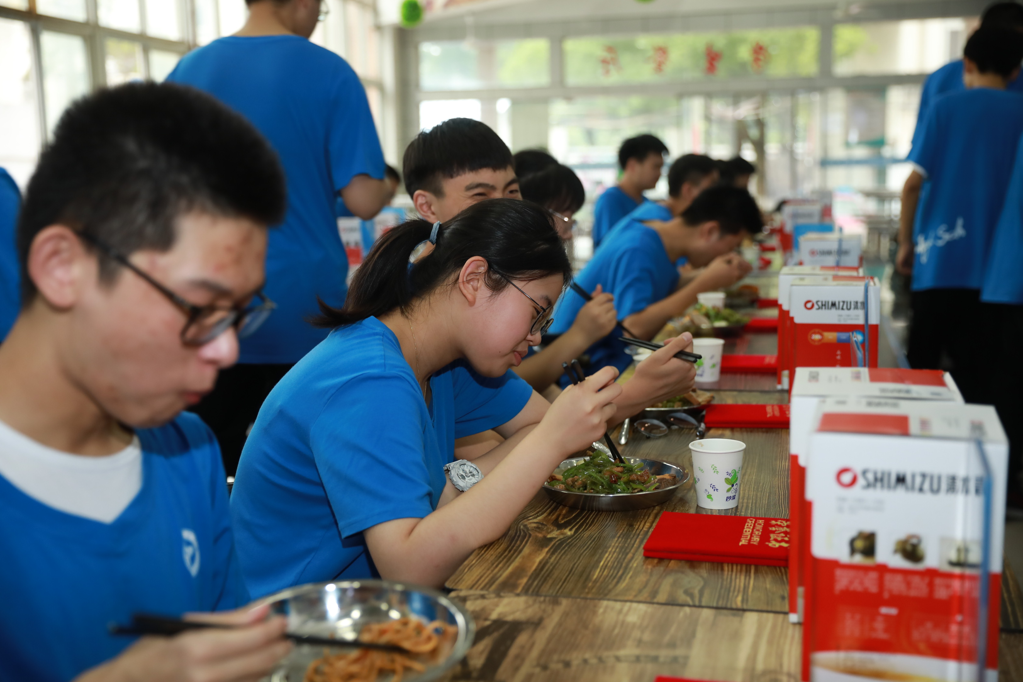 在優(yōu)美輕松的樂曲聲中,全體師生有序排隊挑選自己最喜歡吃的美食,并相互交流。據(jù)了解,這次自助式早餐琳瑯滿目,品種豐富,十分誘人,有主食、有湯類、有炒菜、有水果、有飲品、有各種蛋類、肉類,有各種面包糕點,可供選擇的很多。此前,教務(wù)處和文化辦精心策劃和準備,力求細節(jié)完美,食堂師傅早晨四點開始制作餐食,自助早餐各盡所需,堪比星級酒店自助早餐,讓人大飽口福,贏得在場師生們頻頻點贊。