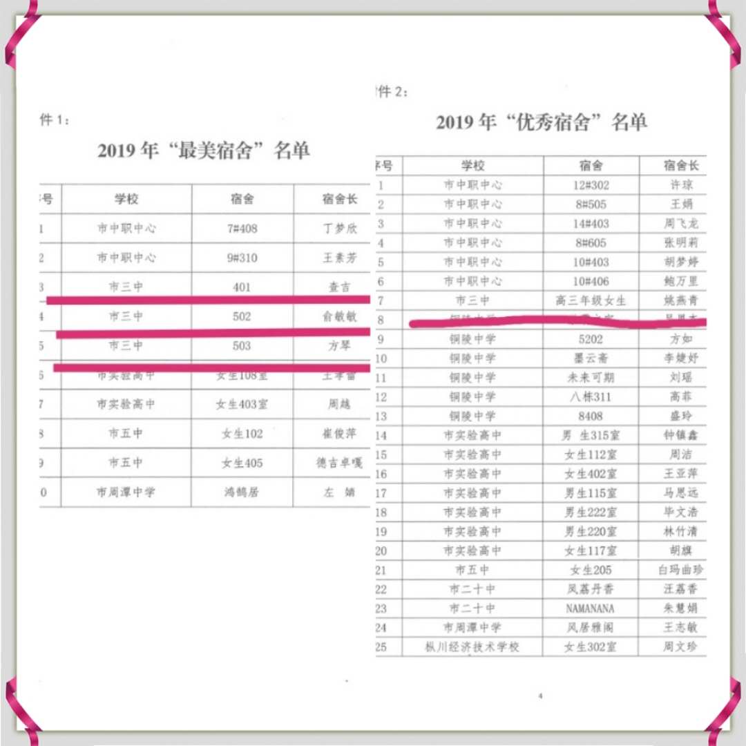 近期,評選結(jié)果揭曉:我校401、502、503三個宿舍榮獲2019年度“最美宿舍”榮譽稱號,高三年級女生團體榮獲2019年度“優(yōu)秀宿舍”榮譽稱號。