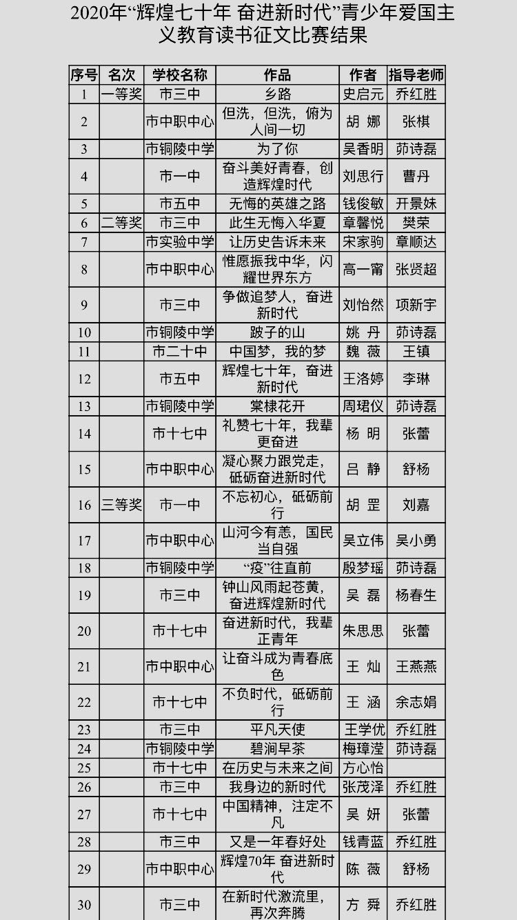 “輝煌七十年 奮進(jìn)新時(shí)代” 青少年愛國(guó)主義讀書教育活動(dòng) 征文比賽結(jié)果