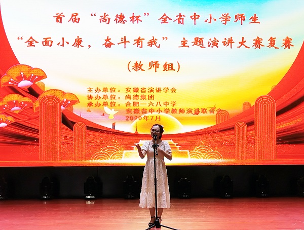 2020年7月29日,市三中受邀參加安徽省青少年演講與口才實(shí)訓(xùn)基地授牌儀式暨首屆“尚德杯”“全面小康,奮斗有我”主題演講大賽。參加此次活動的有省委宣傳部副部長李兵,省婦聯(lián)副主席張若平,省總工會黨組成員、省總工會經(jīng)費(fèi)審查委員會主任曾傳發(fā)等領(lǐng)導(dǎo)以及來自全省各中小學(xué)的104名師生選手、指導(dǎo)老師、邀請嘉賓和觀眾等約400人。市三中校辦公室秘書孫娟代表學(xué)校參加了實(shí)訓(xùn)基地授牌儀式,團(tuán)委丁睿老師參加教師組“全面小康 奮斗有我”主題演講大賽。丁睿老師情緒飽滿、儀態(tài)端莊、形神俱佳,思路清晰,內(nèi)涵豐富,結(jié)合生活實(shí)際,深刻闡述主題,表達(dá)切身感受,具有強(qiáng)烈的感染力和說服力,最終在36名教師選手中取得排名12的好成績,榮獲教師組三等獎(jiǎng)。