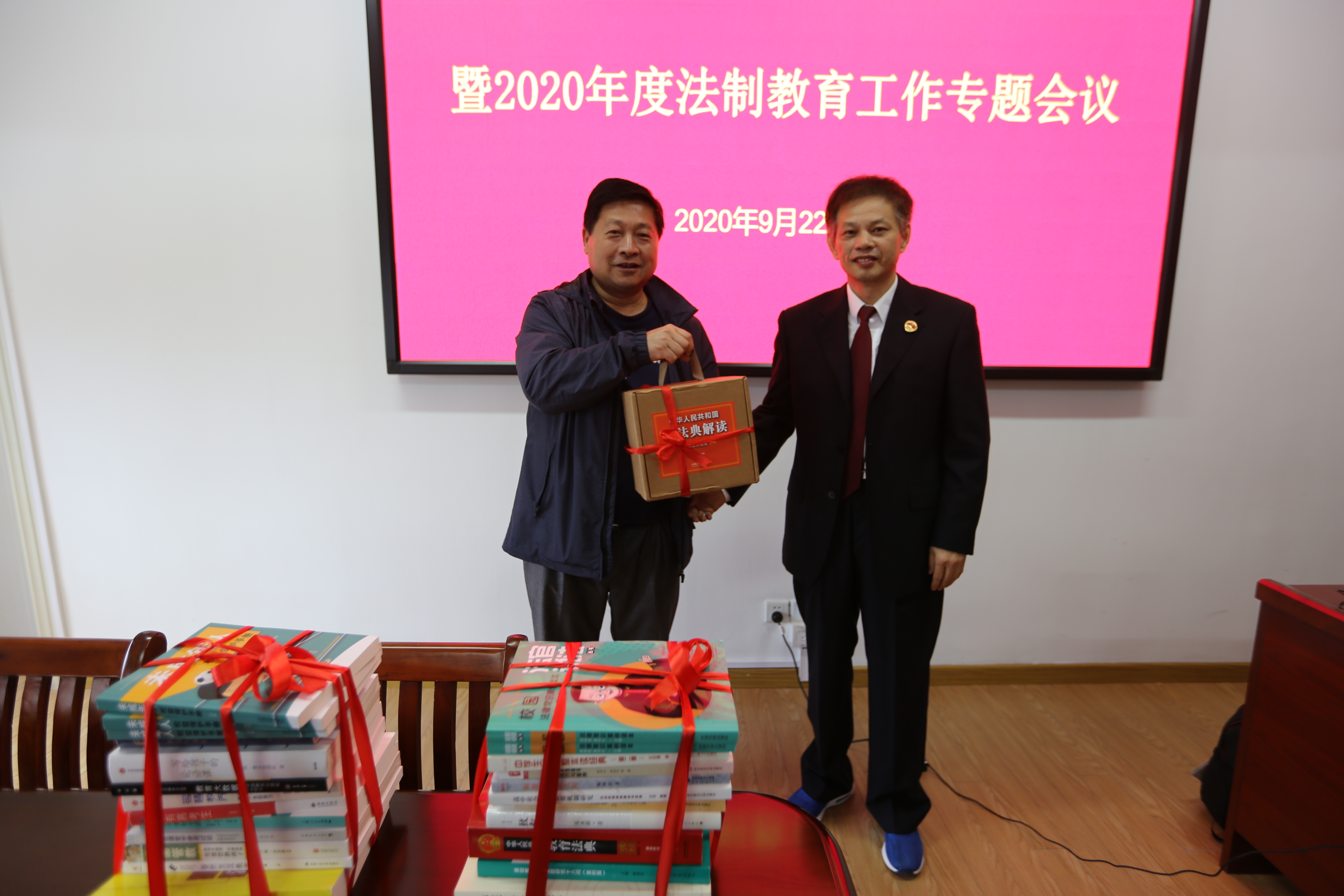 市檢察院黨組副書記、常務(wù)副檢察長吳世軍向三中贈送法制宣傳書籍