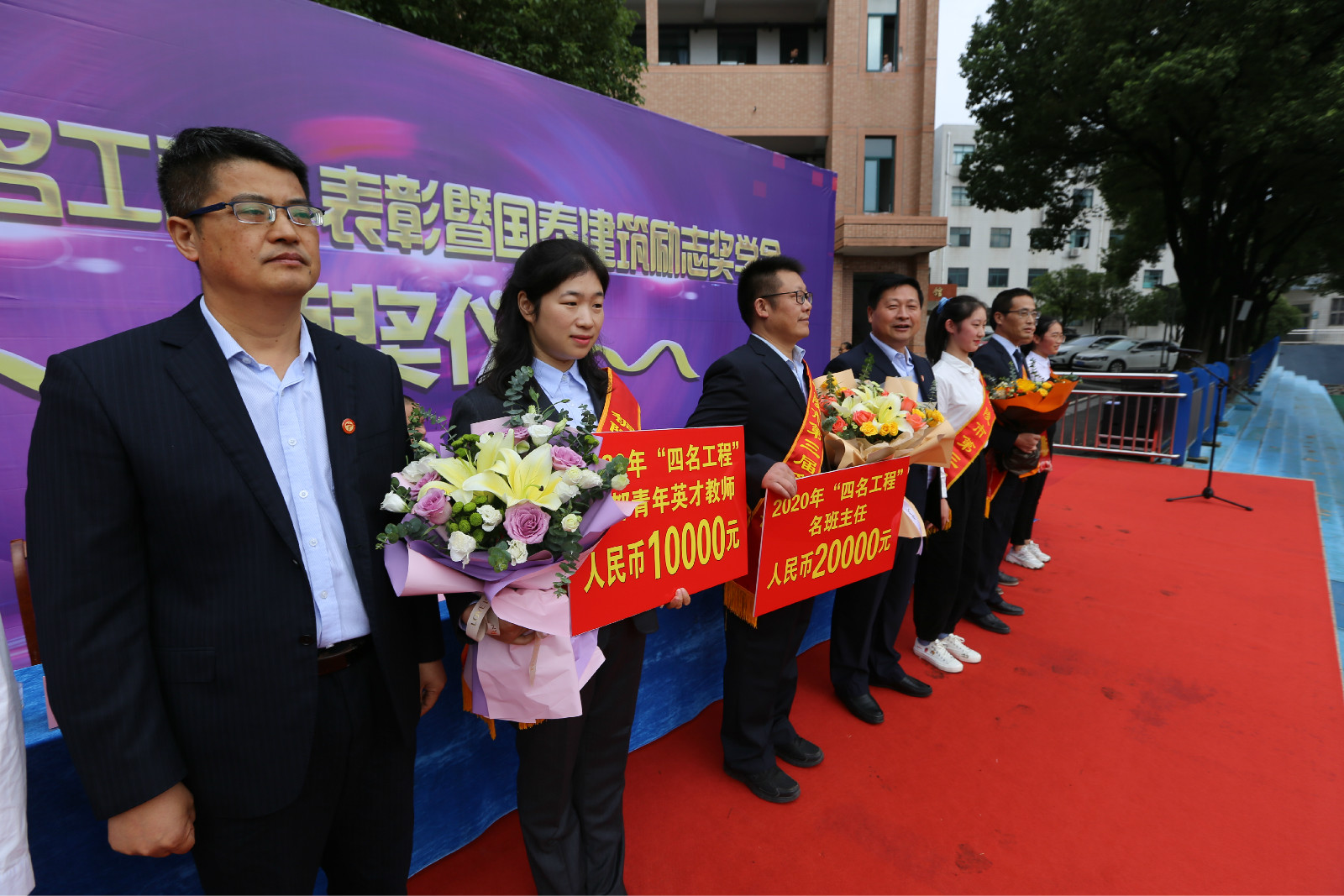 本校訊 9月23日上午,銅陵三中2020年“四名工程”表彰暨國(guó)泰建筑集團(tuán)勵(lì)志獎(jiǎng)學(xué)金頒獎(jiǎng)儀式在學(xué)校操場(chǎng)舉行,校黨委書(shū)記、校長(zhǎng)鐘士標(biāo),安徽國(guó)泰建筑集團(tuán)董事長(zhǎng)張自州先生,校黨委副書(shū)記葉葉,校黨委委員、副校長(zhǎng)張國(guó)榮,校黨委委員、副校長(zhǎng)張尤俊,校黨委委員、政教處主任章學(xué)標(biāo)和全體師生及部分學(xué)生家長(zhǎng)出席頒獎(jiǎng)儀式,活動(dòng)由梁波主任主持。