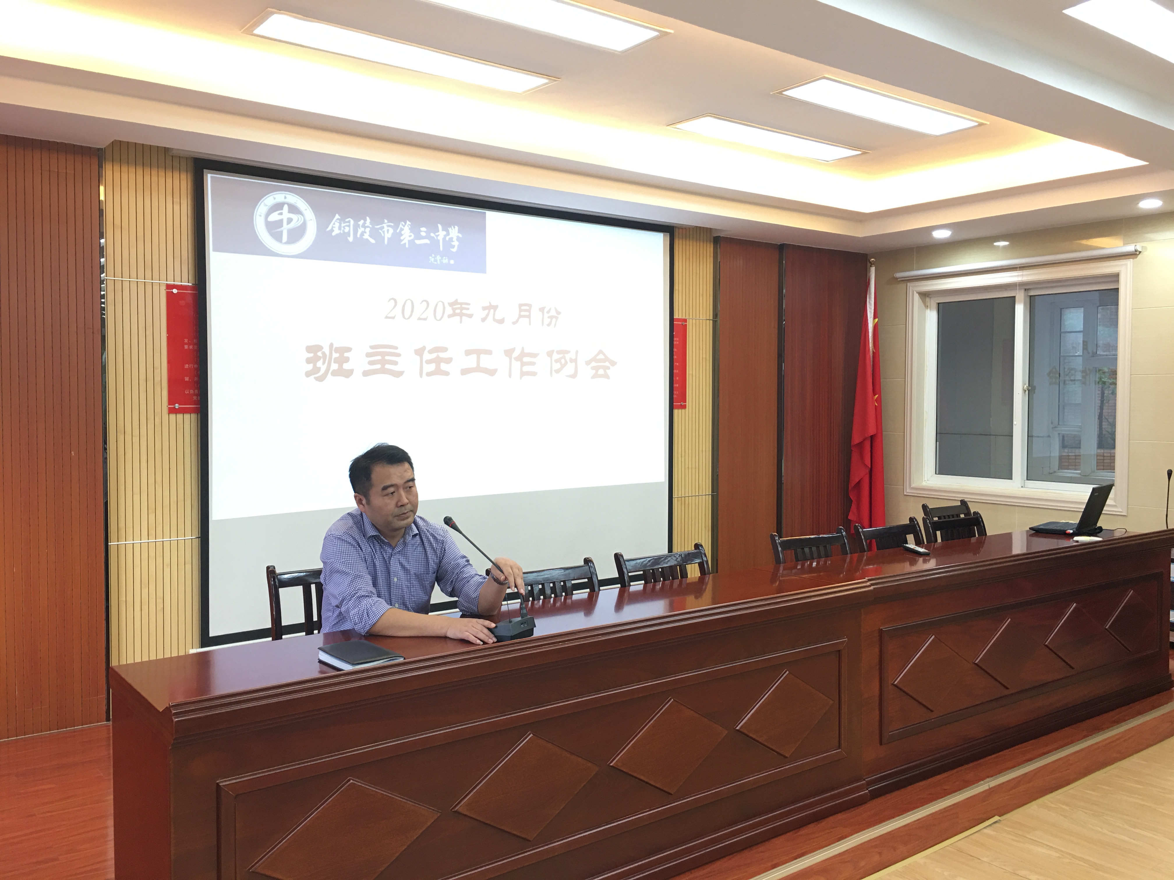 9月27日下午,市三中九月份班主任例會(huì)暨2020年秋季國家助學(xué)工作專題布置會(huì)在綜合樓五樓多媒體會(huì)議室召開,全體班主任老師參加會(huì)議。校黨委委員、政教處主任章學(xué)標(biāo)主持會(huì)議。