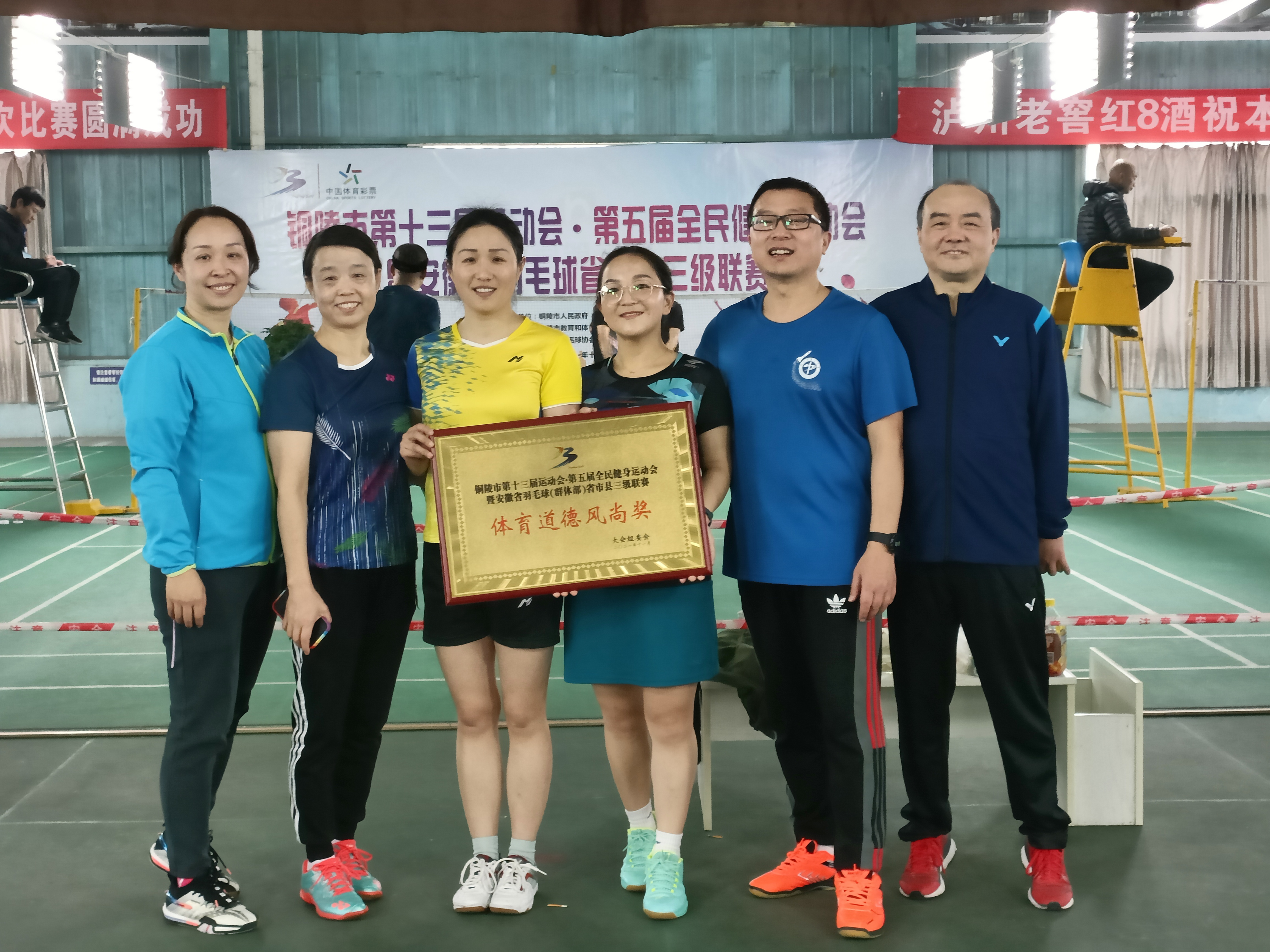 在剛剛結(jié)束的銅陵市第十三屆運(yùn)動會羽毛球比賽中,我校男女代表隊均獲得佳績。羽毛球男團(tuán)榮獲體育道德風(fēng)尚獎;羽毛球女雙凌潔、華芳老師榮獲第七名,女雙汪紅英、肖青老師榮獲第八名。