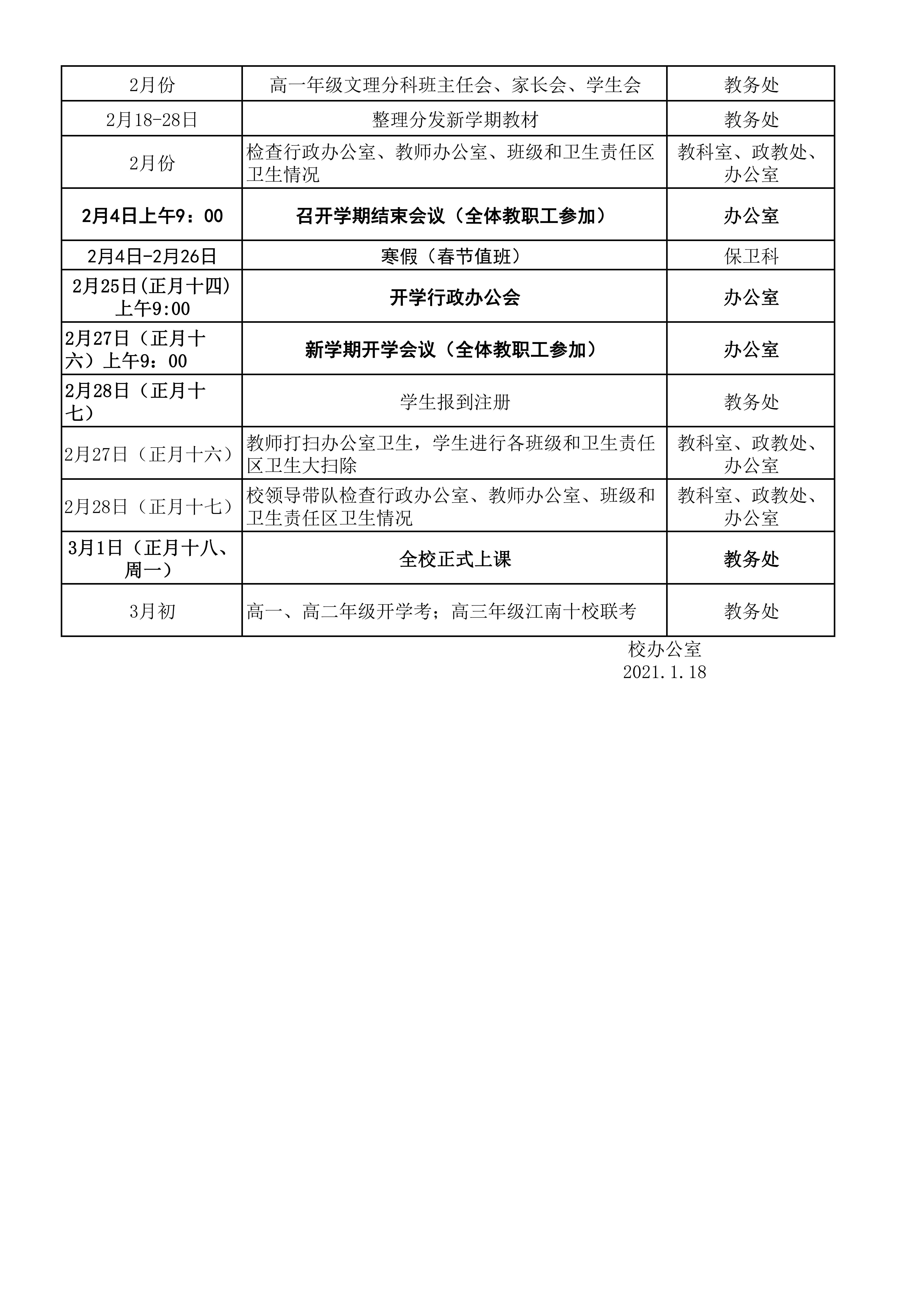 銅陵市第三中學2020-2021學年度第一學期期末工作安排